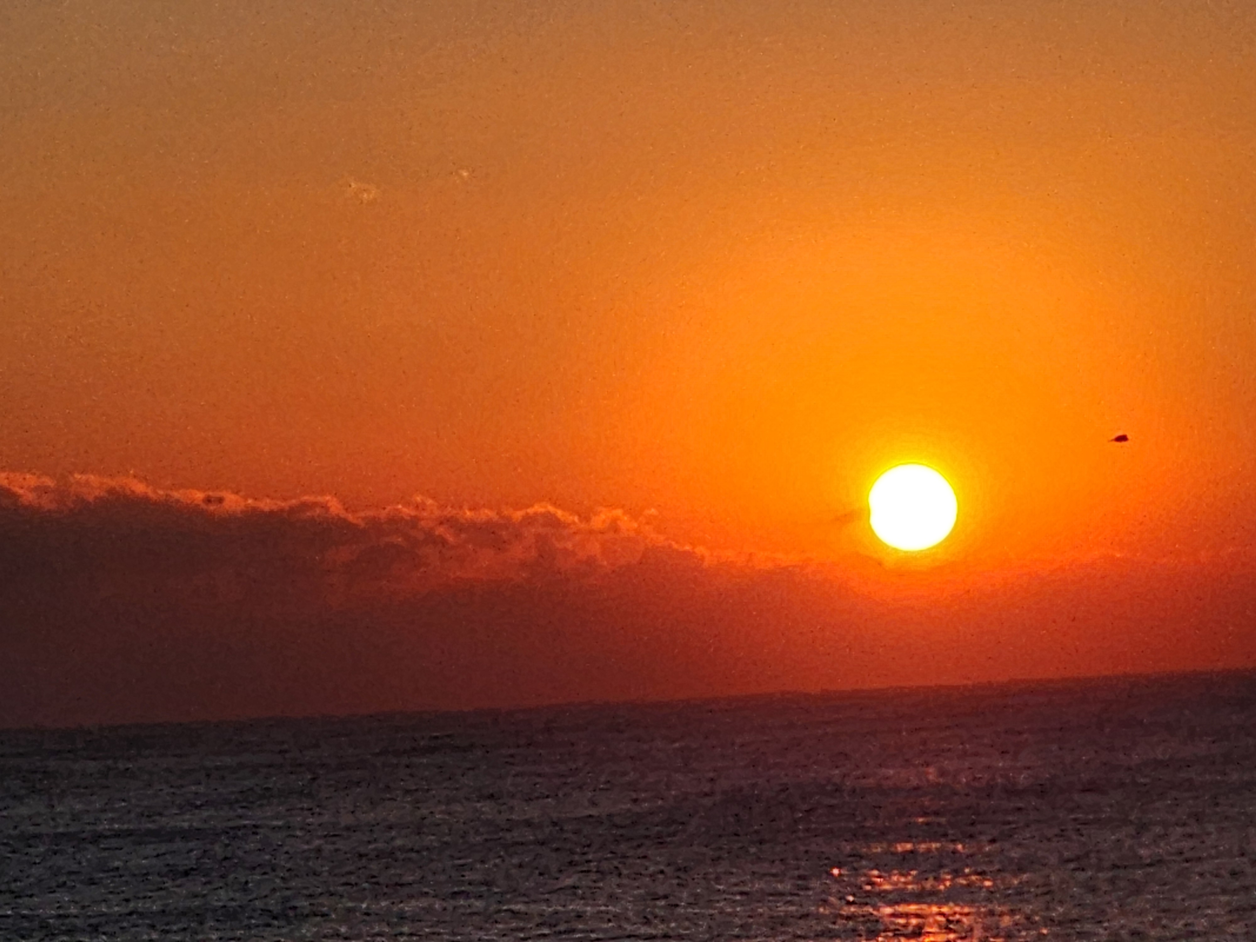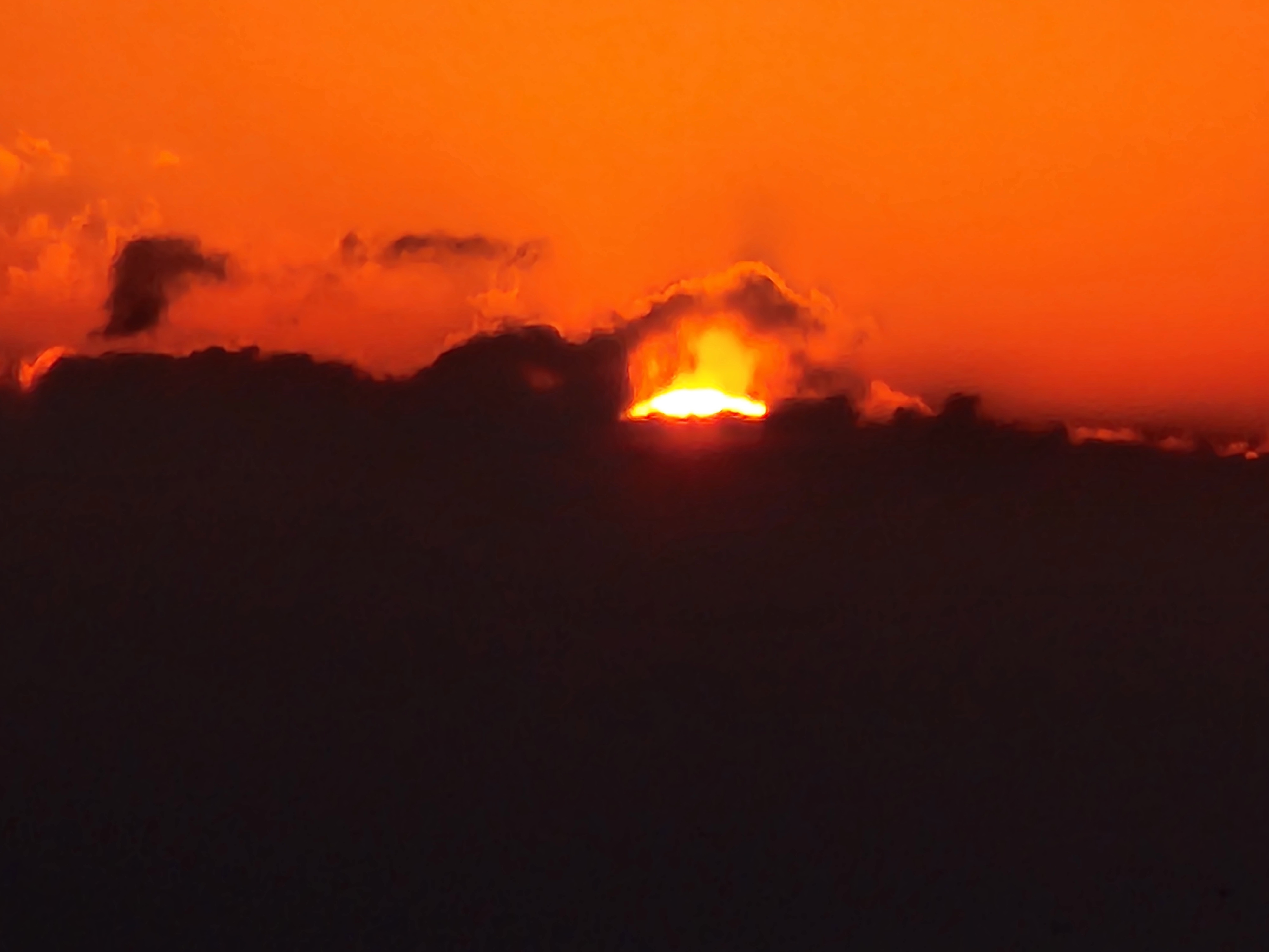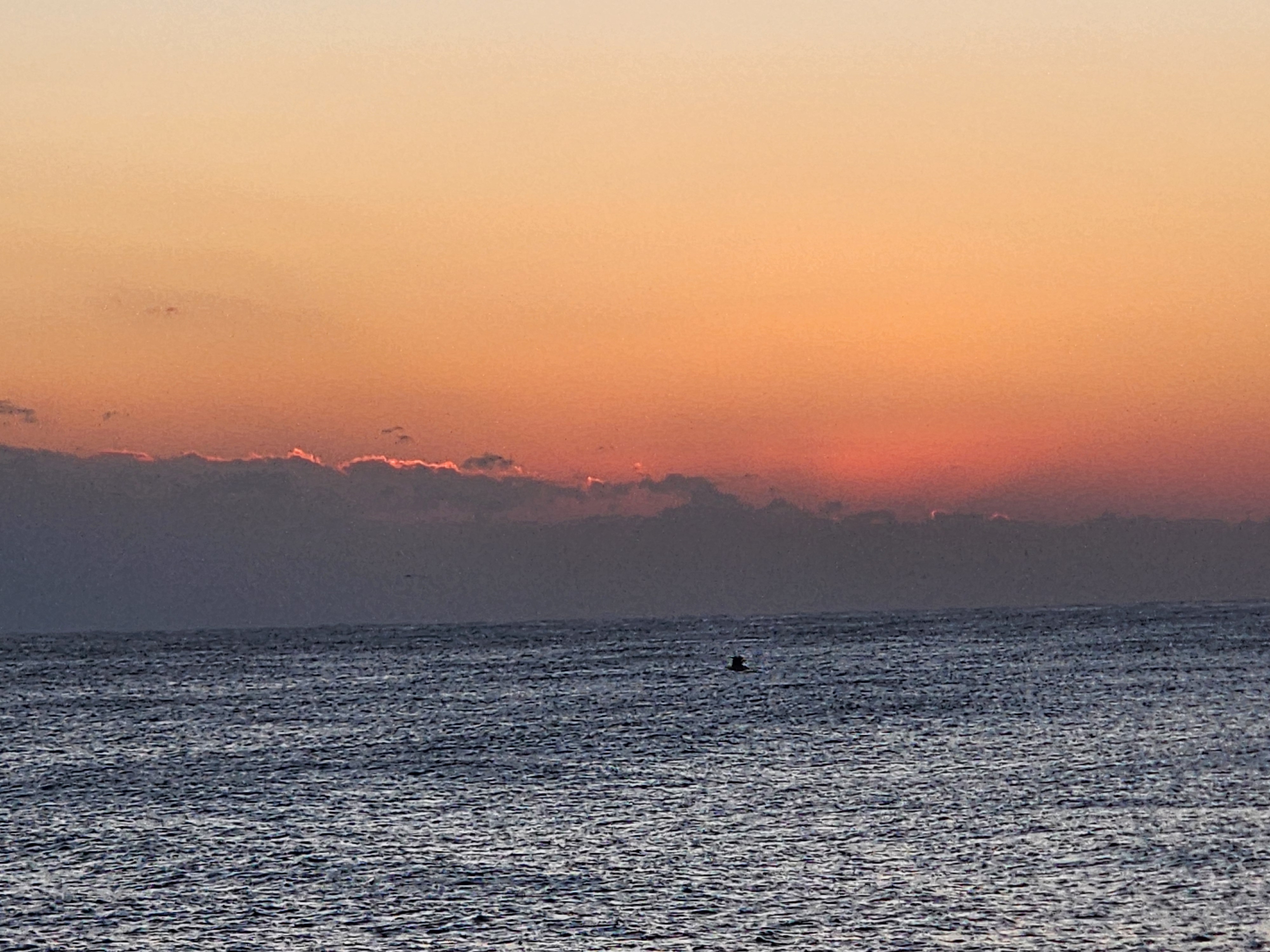 항구출입로를 통해 보는 수평선에 짙은 구름이 가로로 버티고 있다., 다른곳에는 없는 짙은구름이 왜 수평선에만 끼어 있으며, 수평선일출을 방해하는 심술을 부릴까?