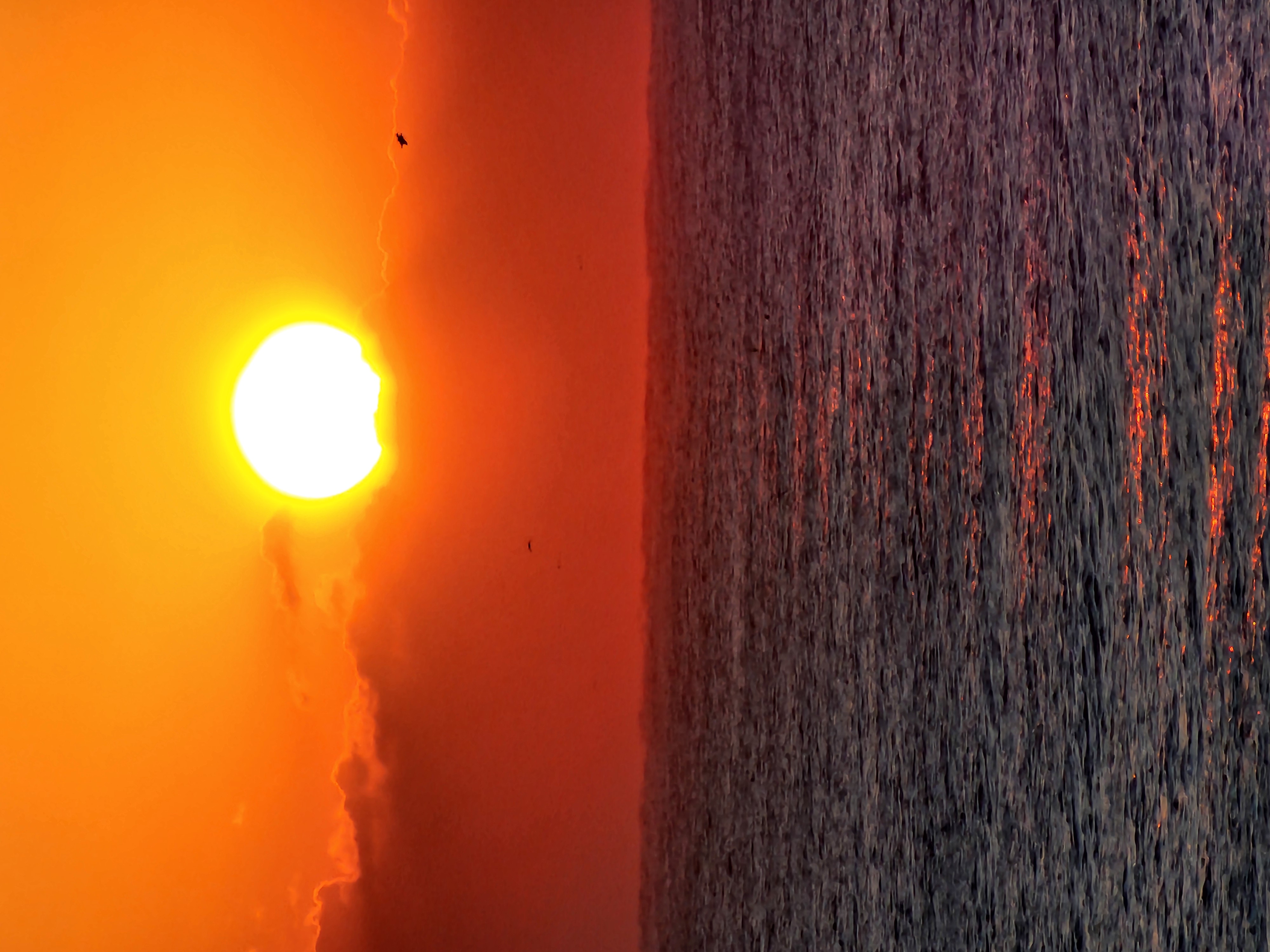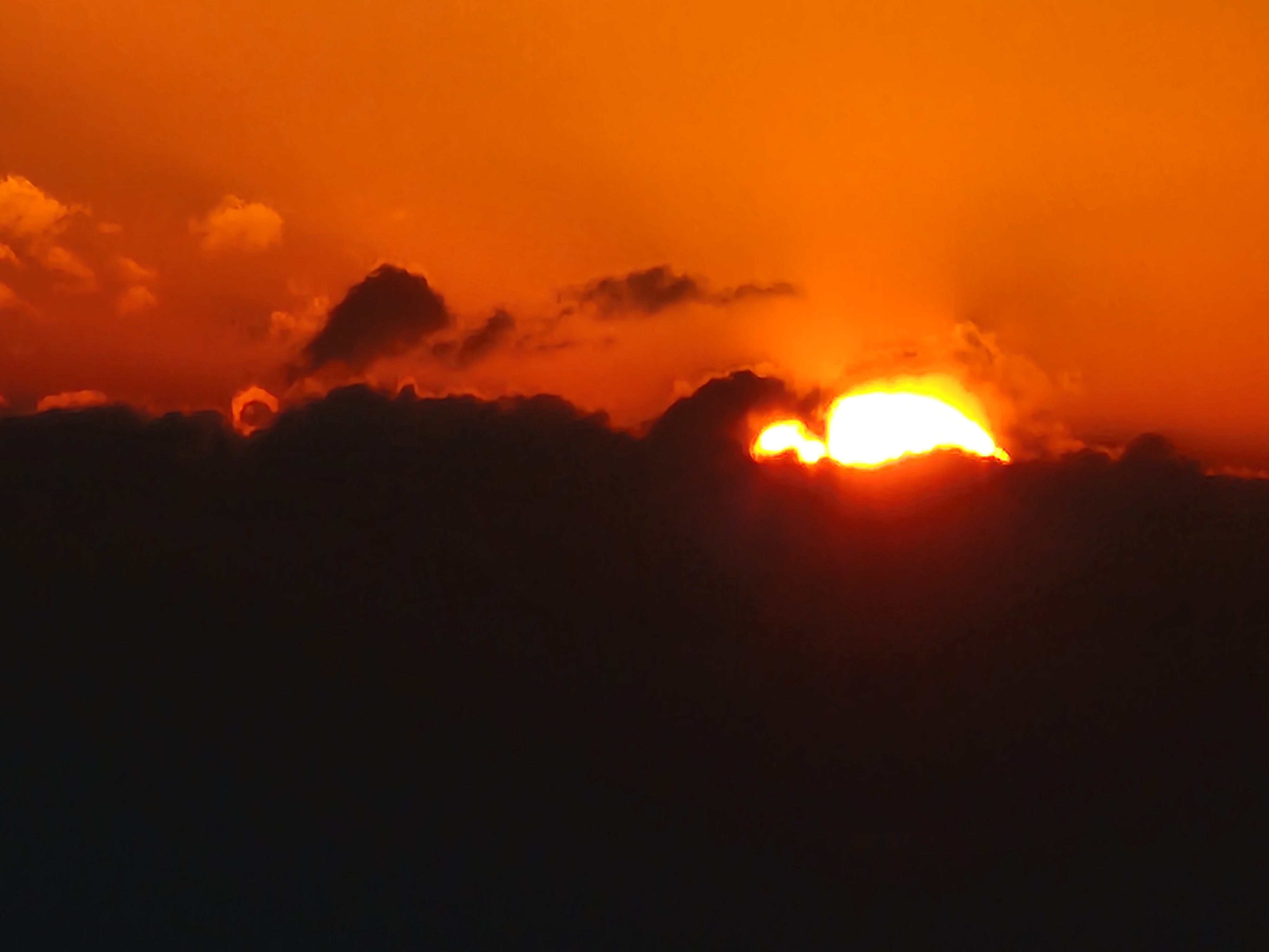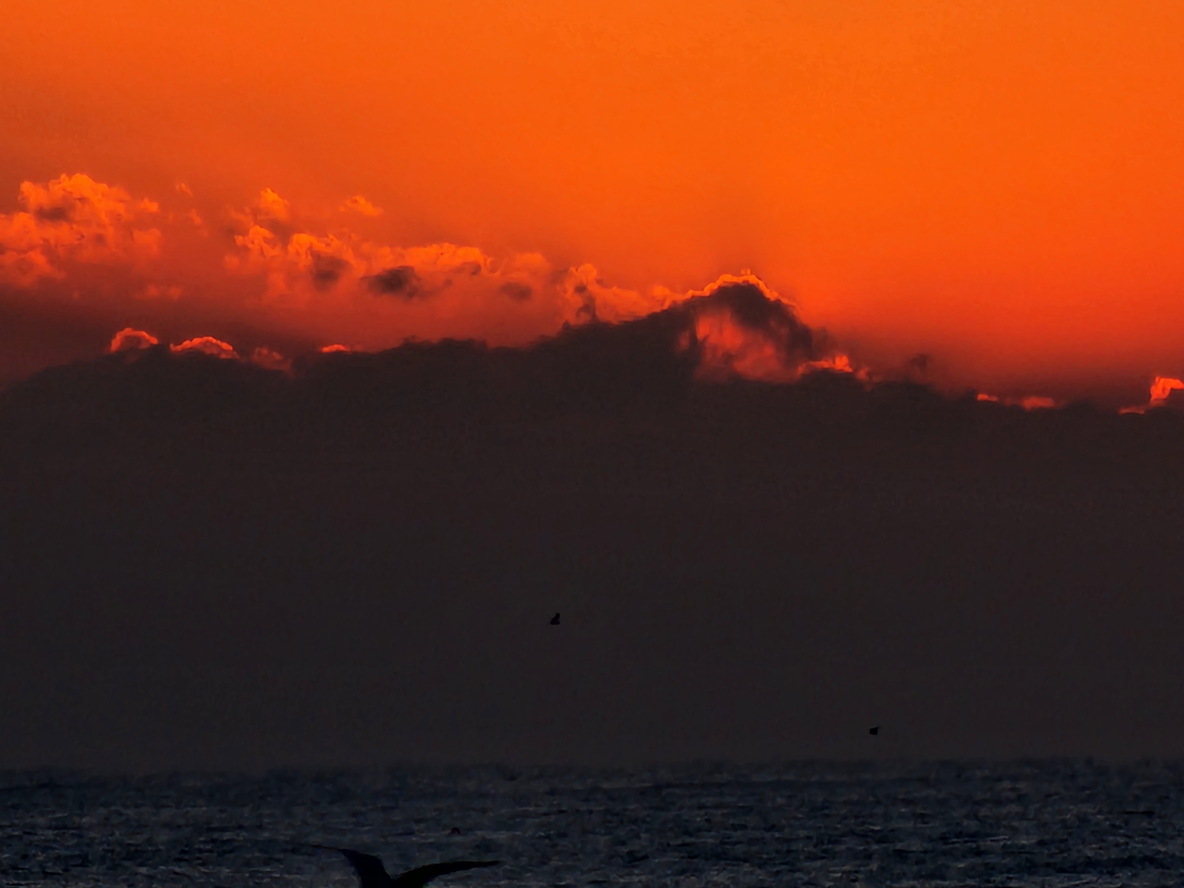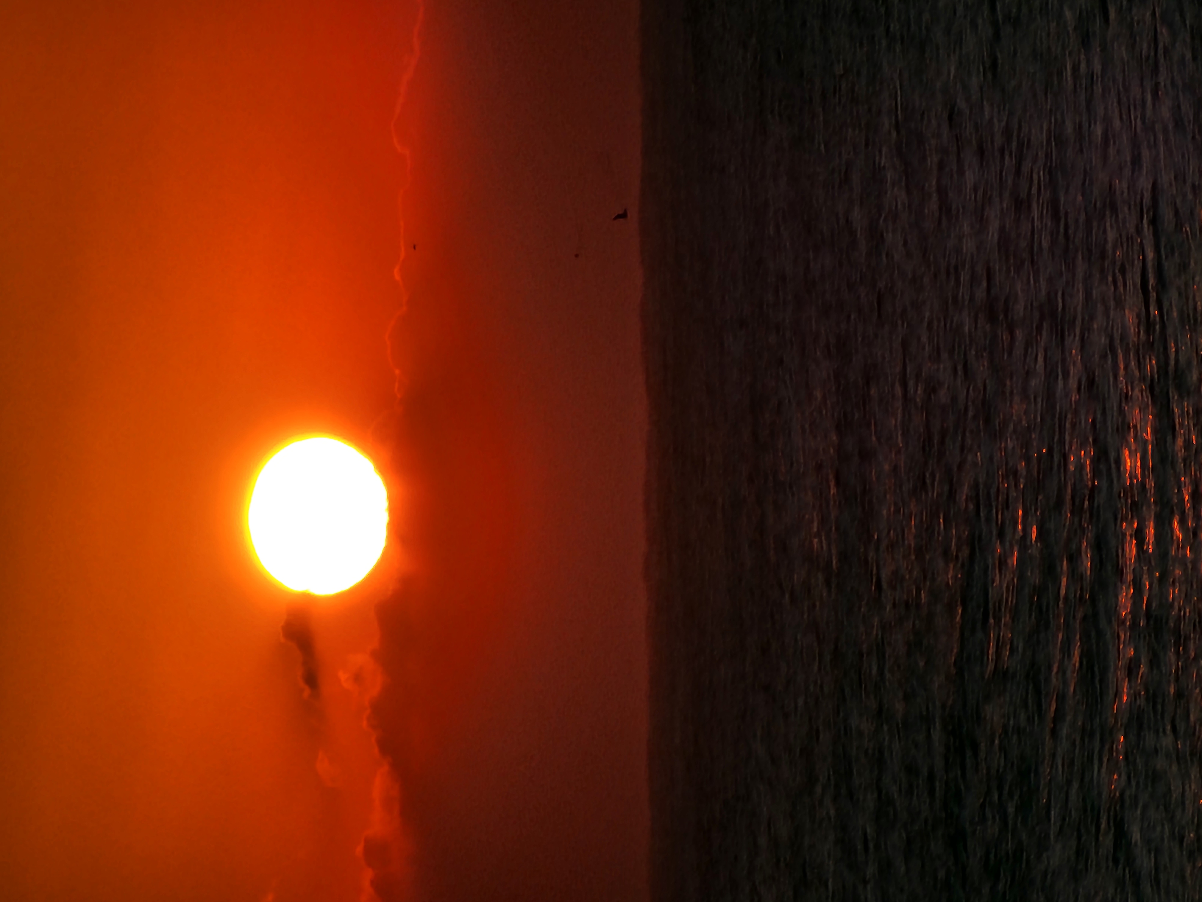 항구출입로를 통해 보는 수평선에 짙은 구름이 가로로 버티고 있다., 다른곳에는 없는 짙은구름이 왜 수평선에만 끼어 있으며, 수평선일출을 방해하는 심술을 부릴까?