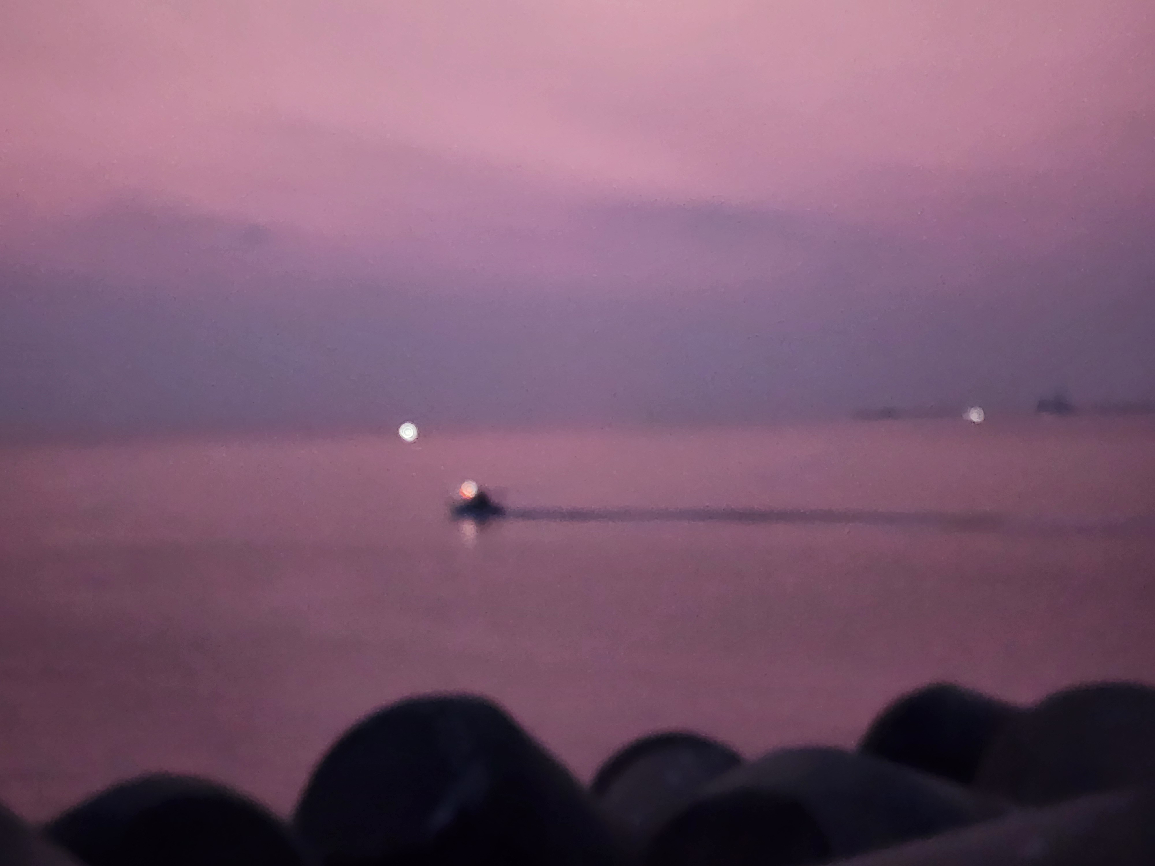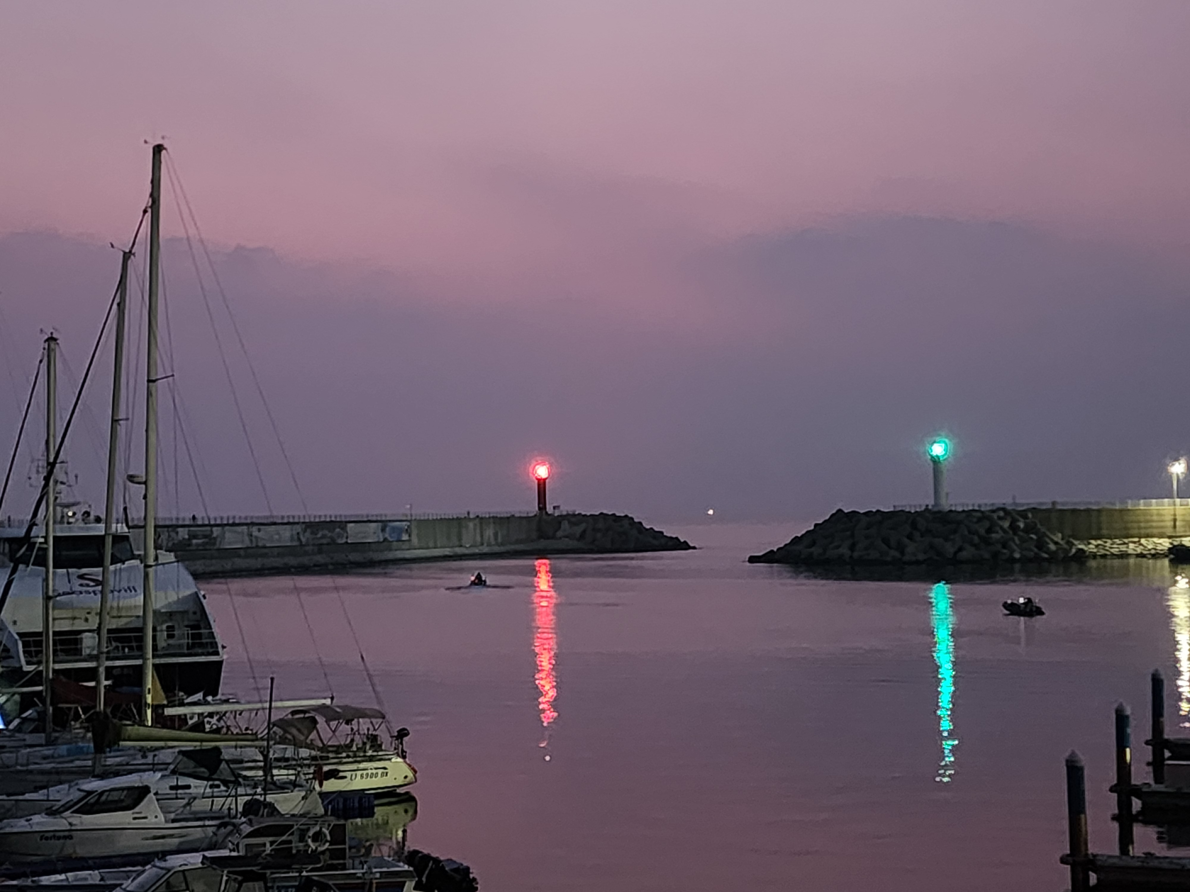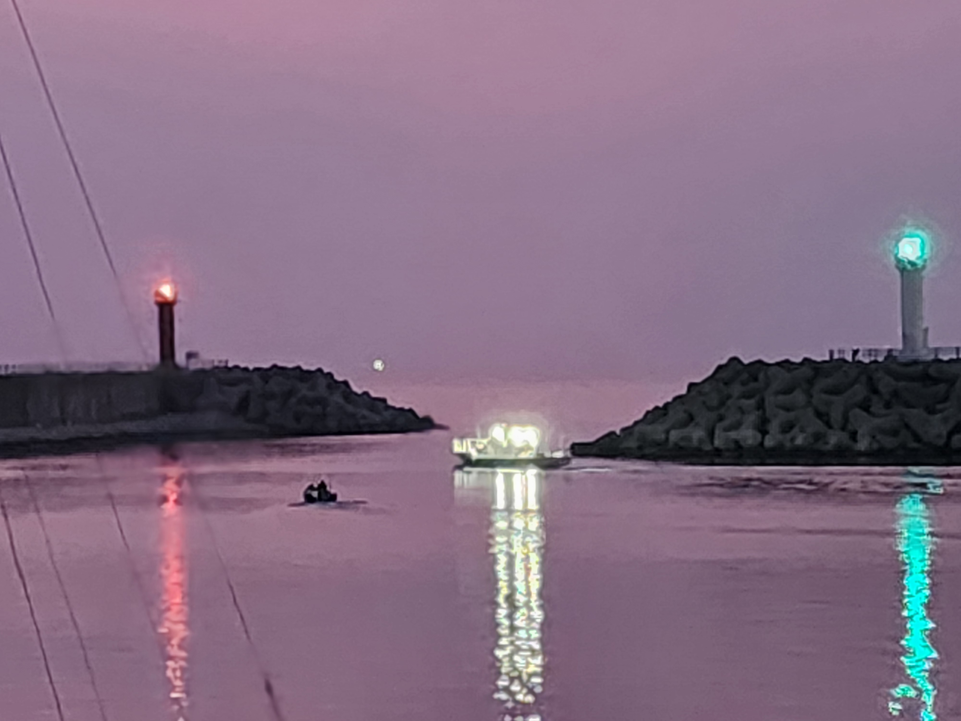 07:04 항구의 선박출입구를 통해본 희미한 수평선