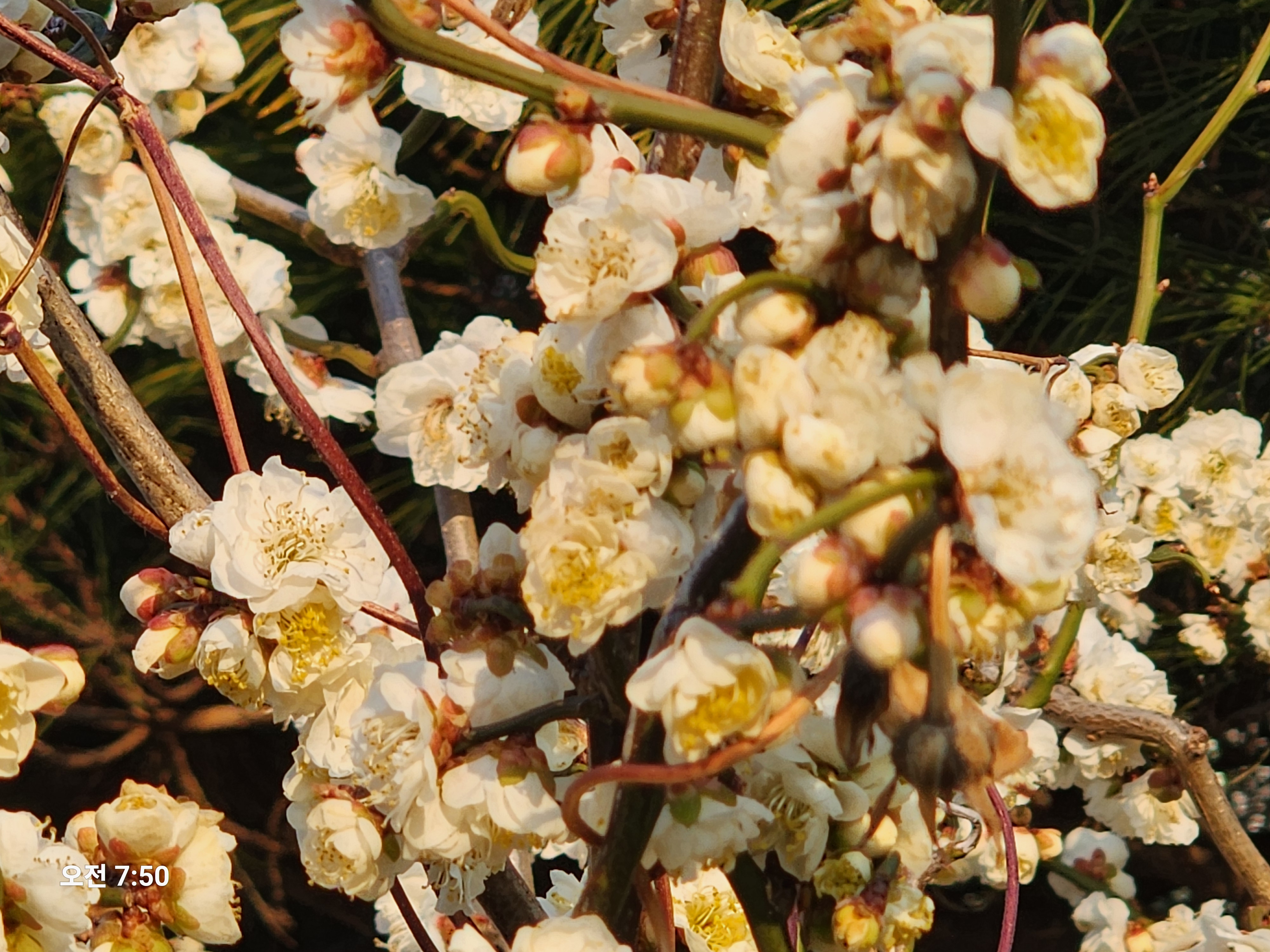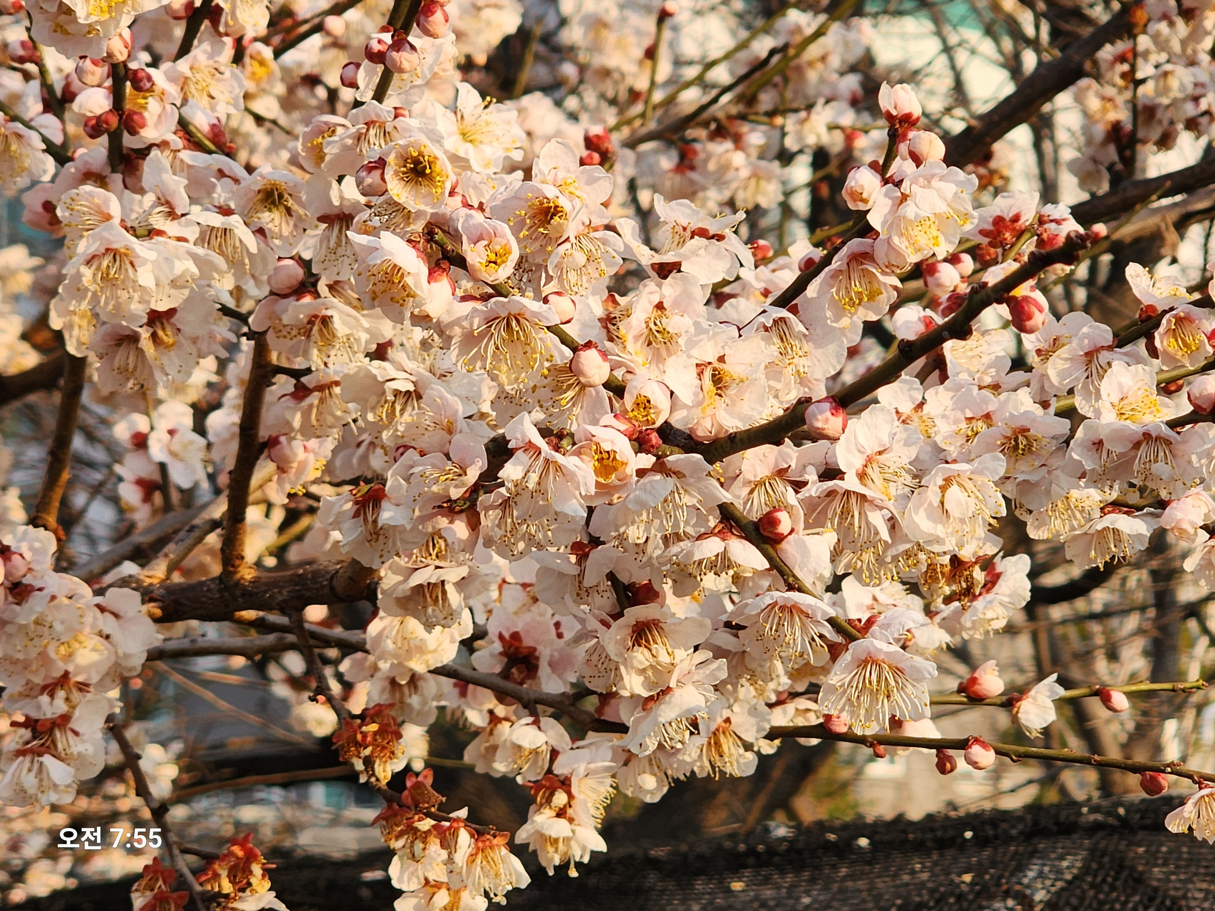 오가는 산책길가에 핀 봄꽃이 차가운 눈과 낮은 기온으로 된서리를 맞아 애처롭게 보인다.