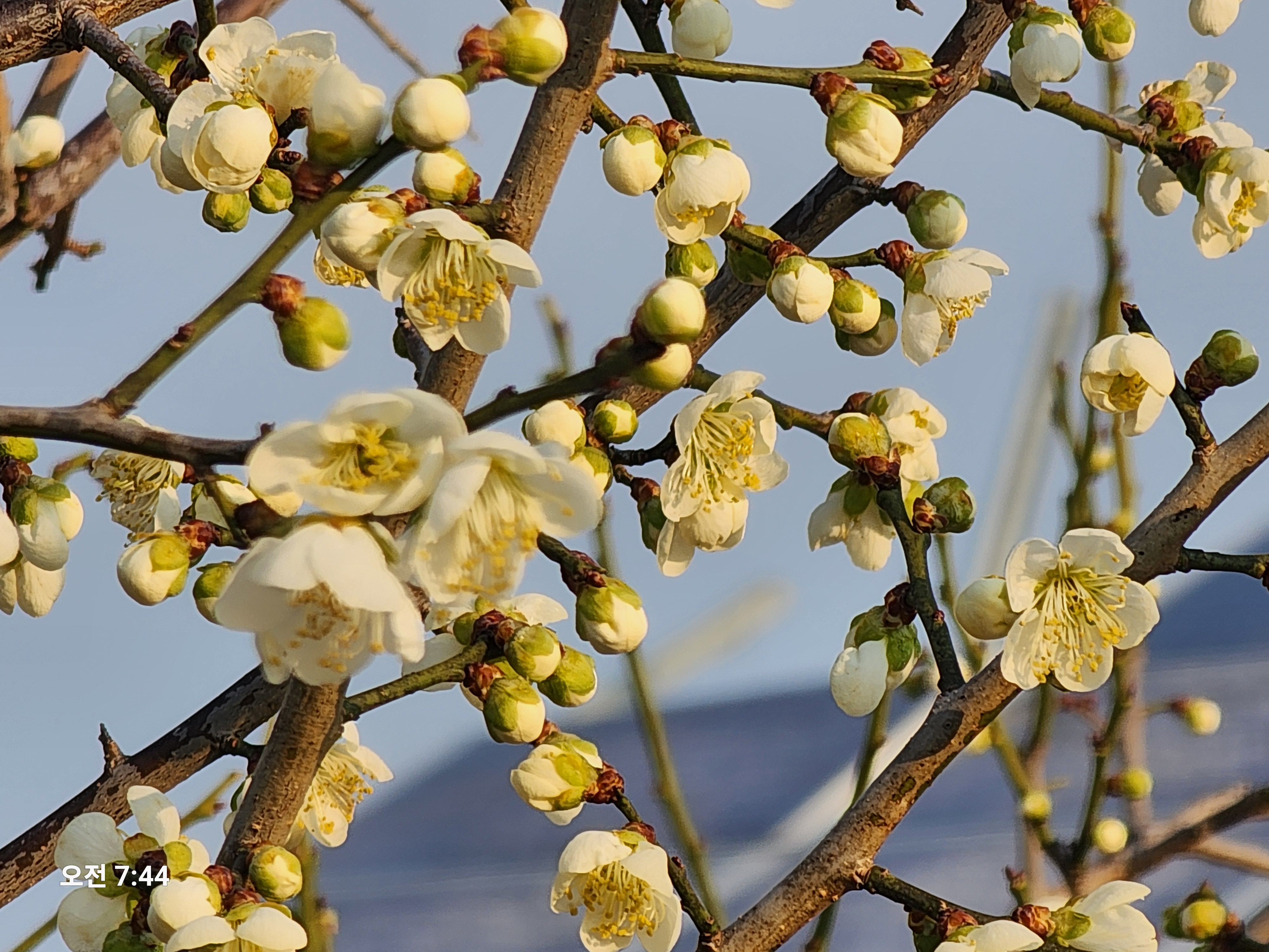 매화나무 멀리 선자령 방향, 눈이 허옇다. '강릉일출 이야기' 카테고리의 다른 글