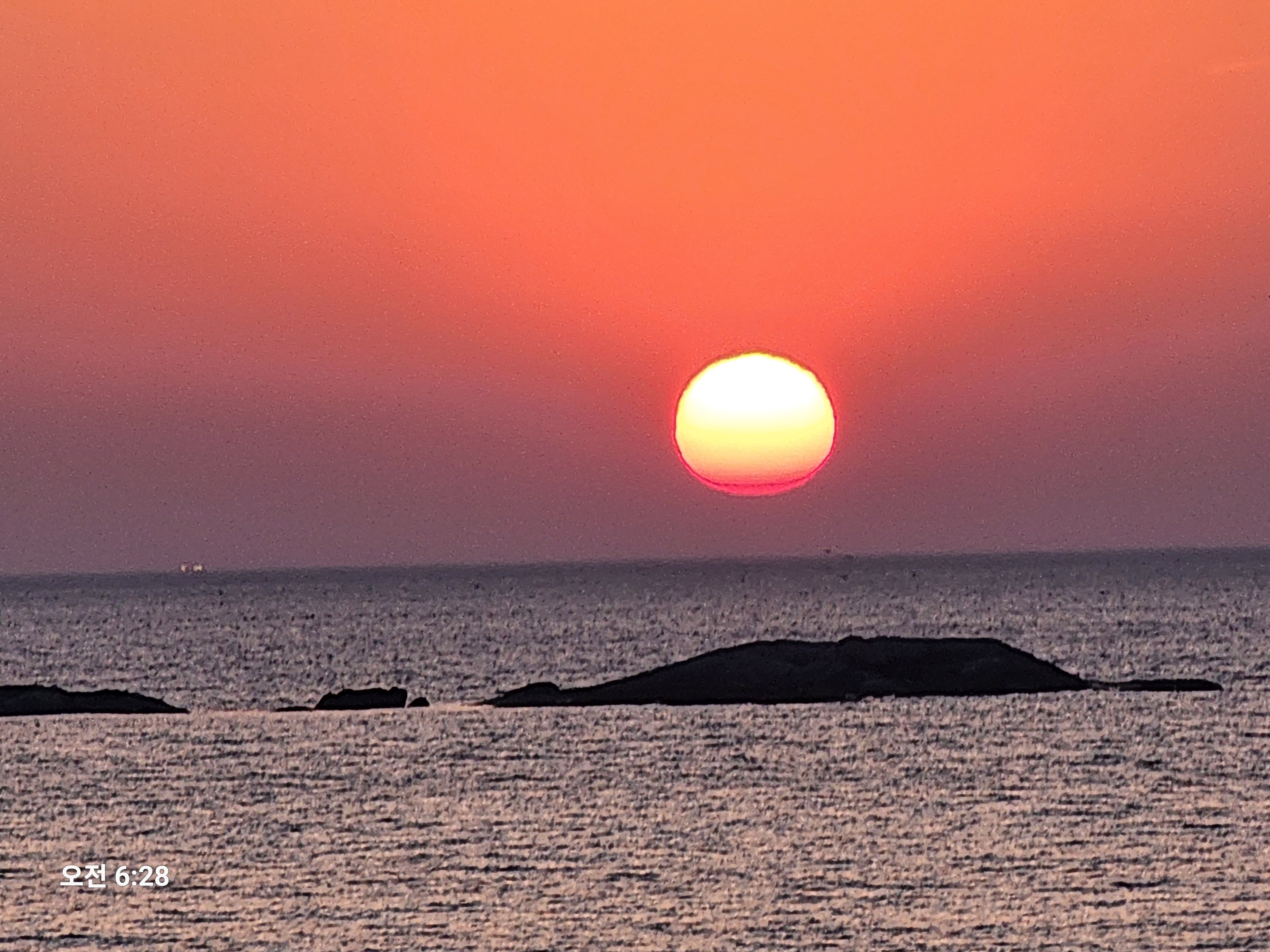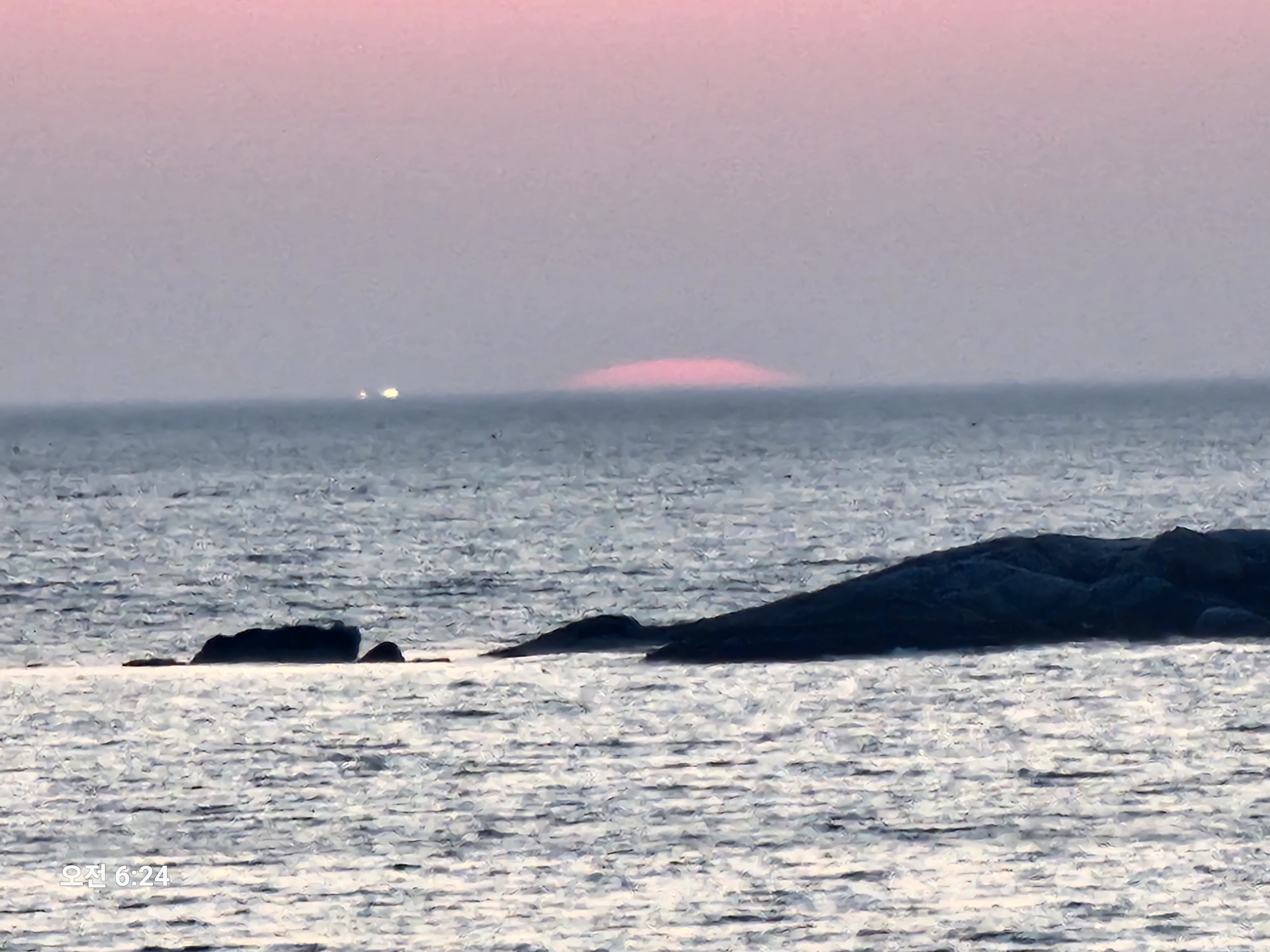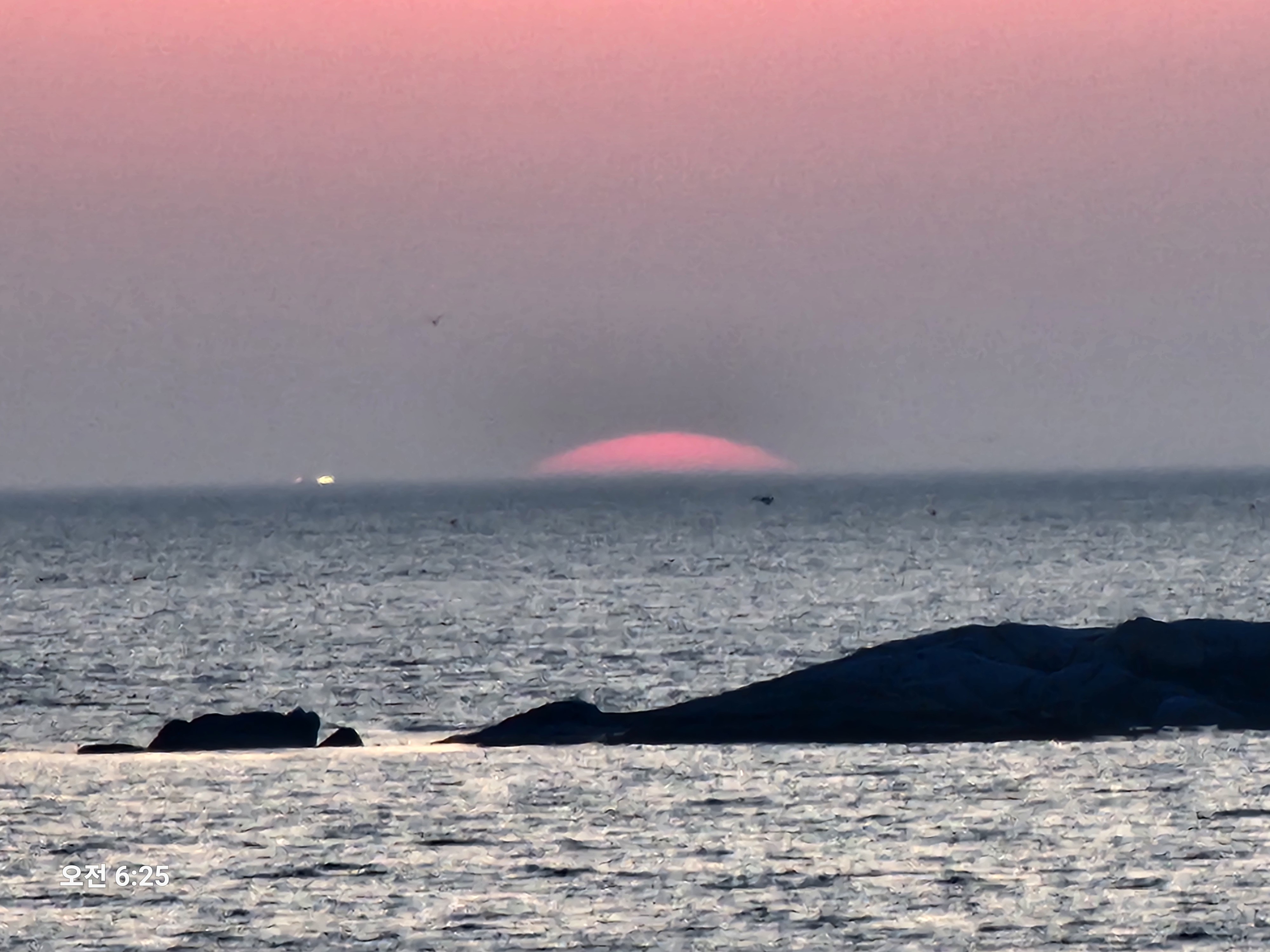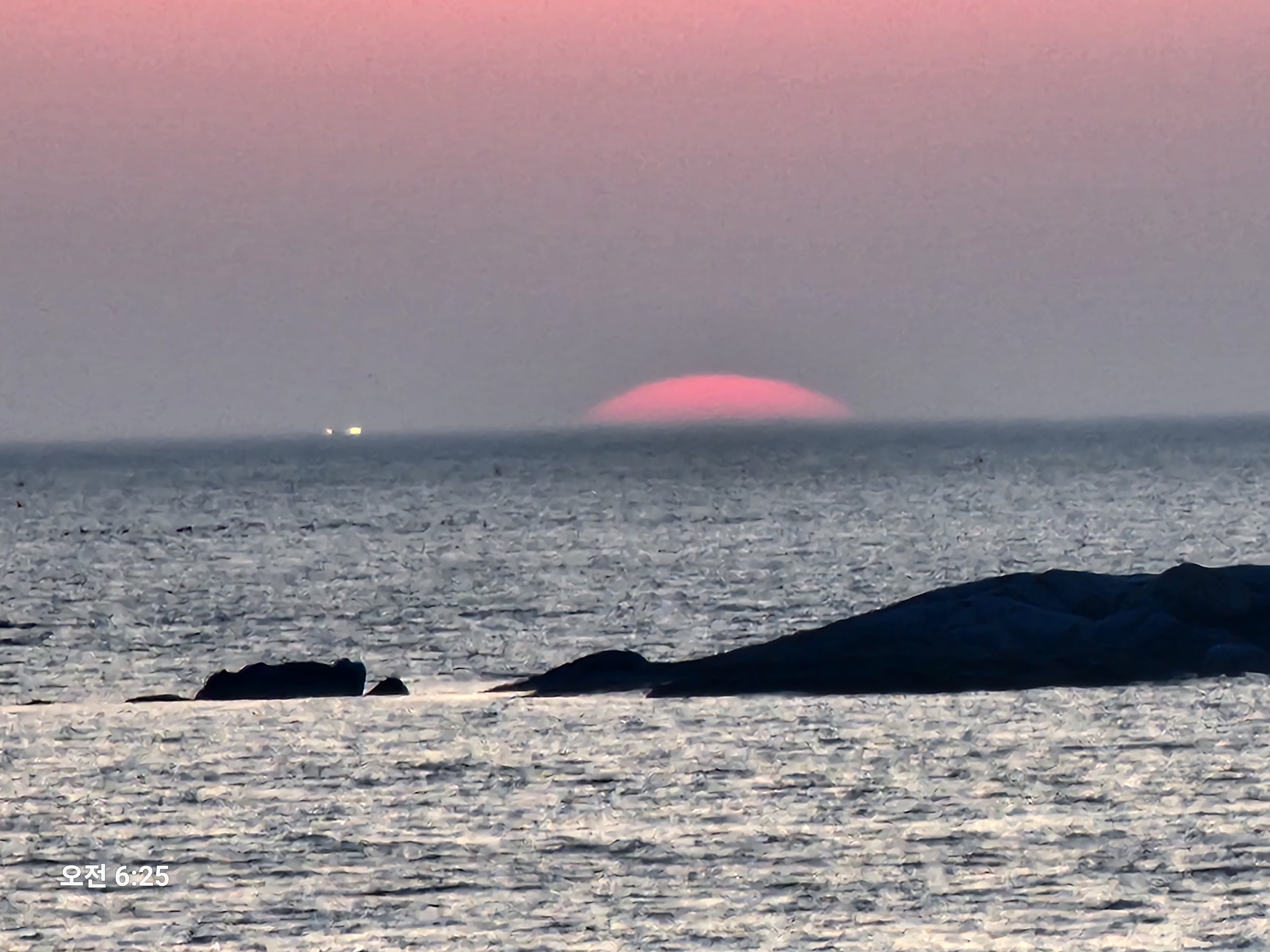 오늘은 모처럼 경포 십리바위일출을 본다. 오늘도 미세먼지 같은 것으로 수평선 주변이 흐릿하나 심하지는