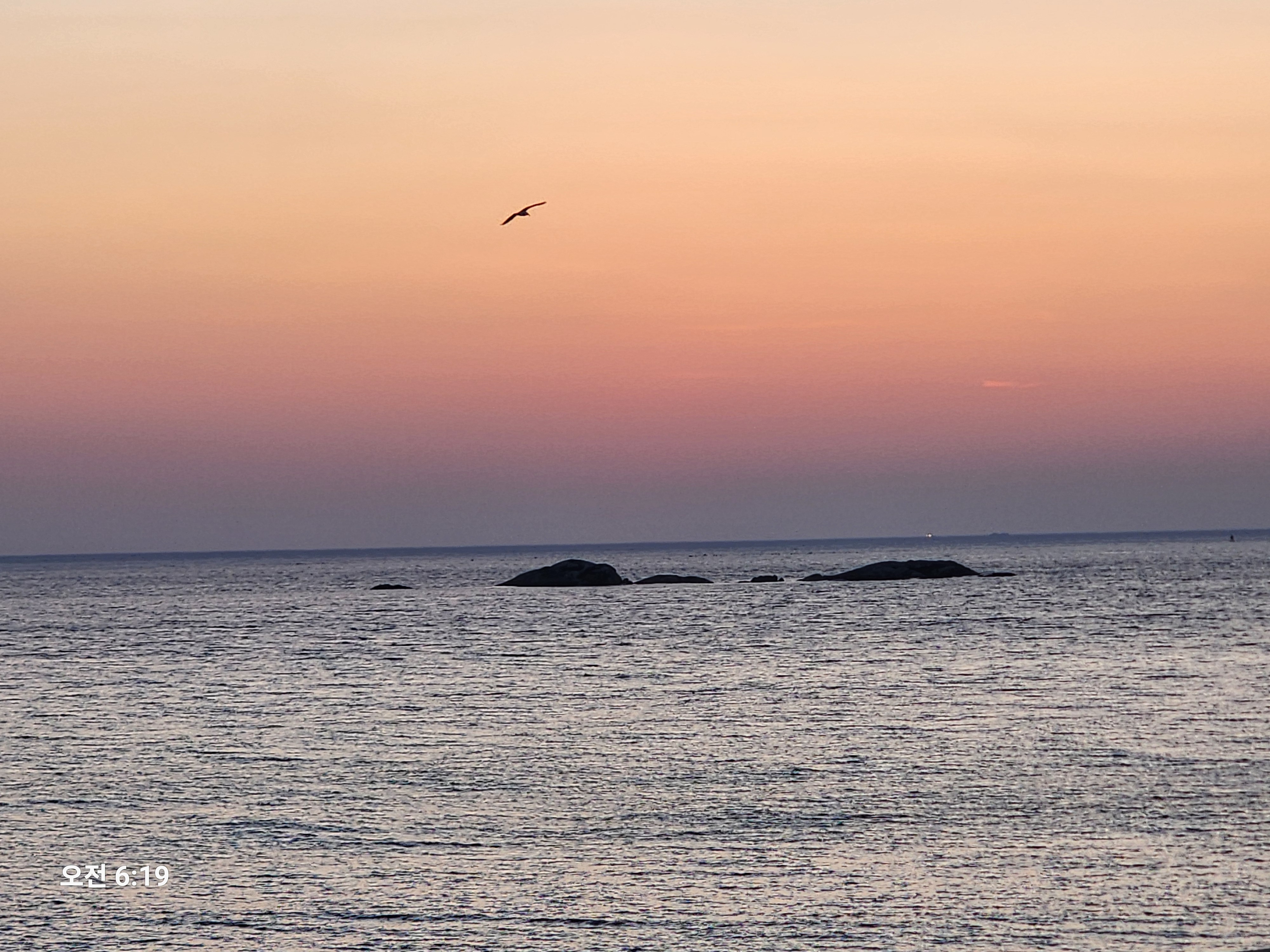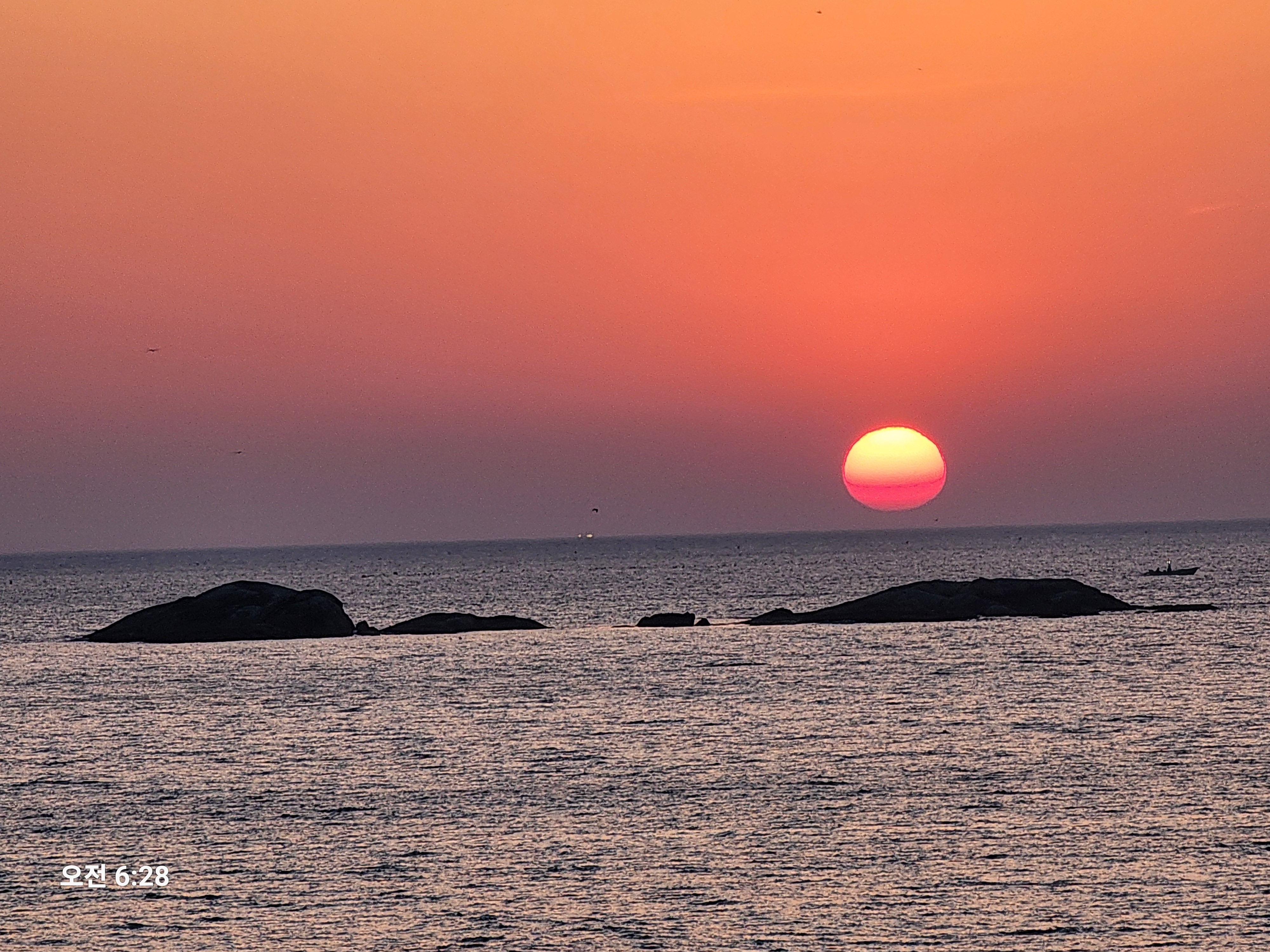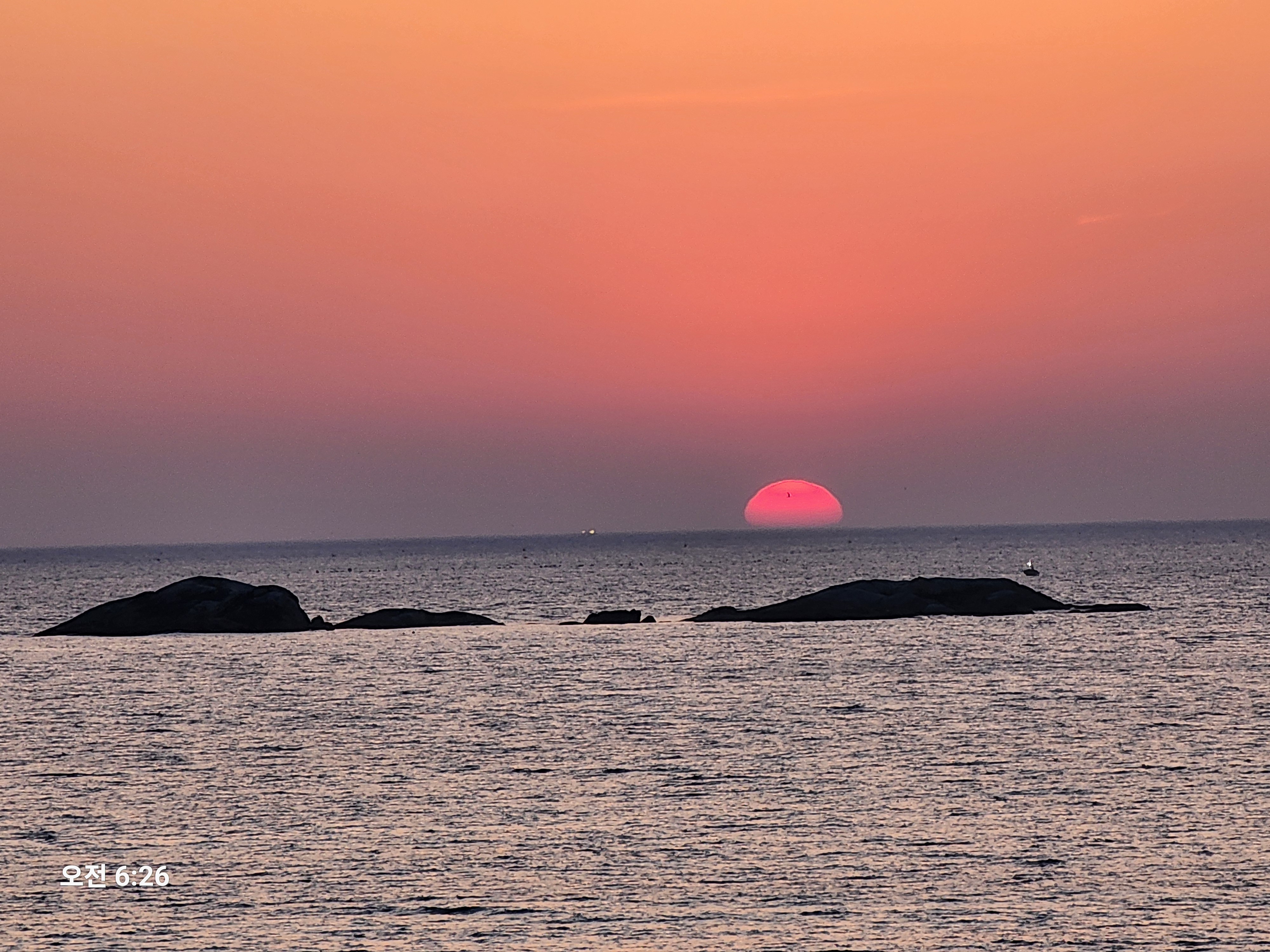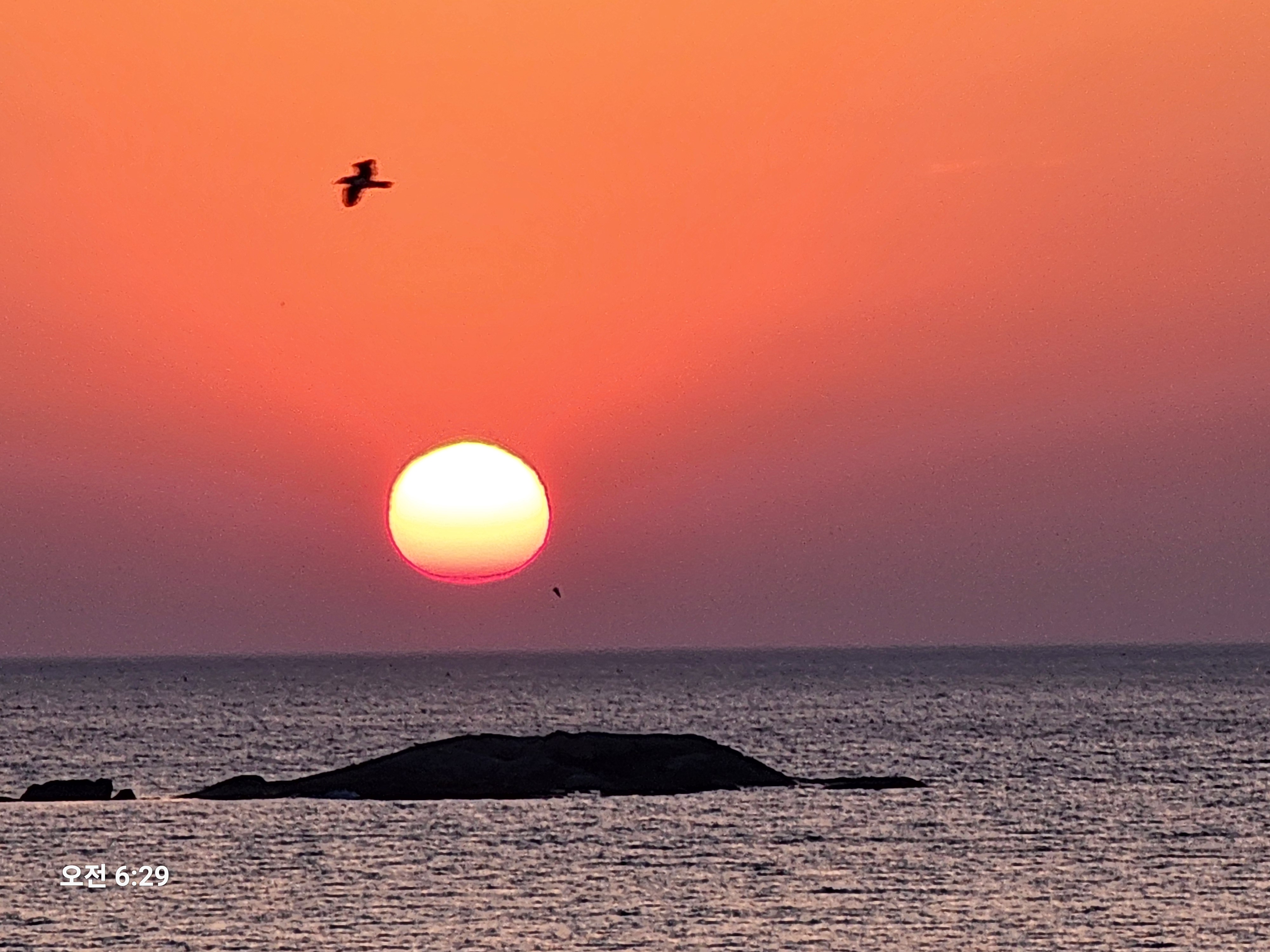 오늘은 모처럼 경포 십리바위일출을 본다. 오늘도 미세먼지 같은 것으로 수평선 주변이 흐릿하나 심하지는