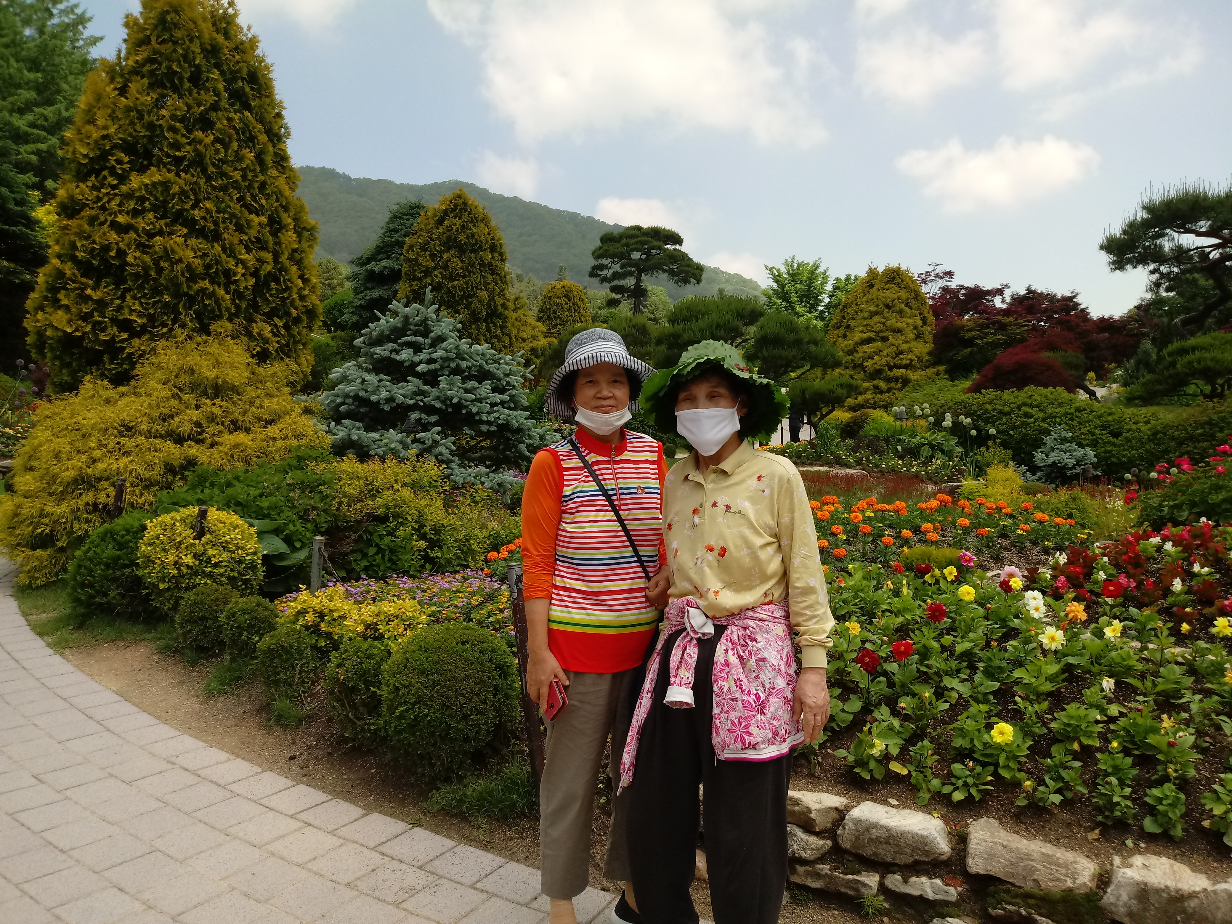 두타산 하산길에, 아내와 친구