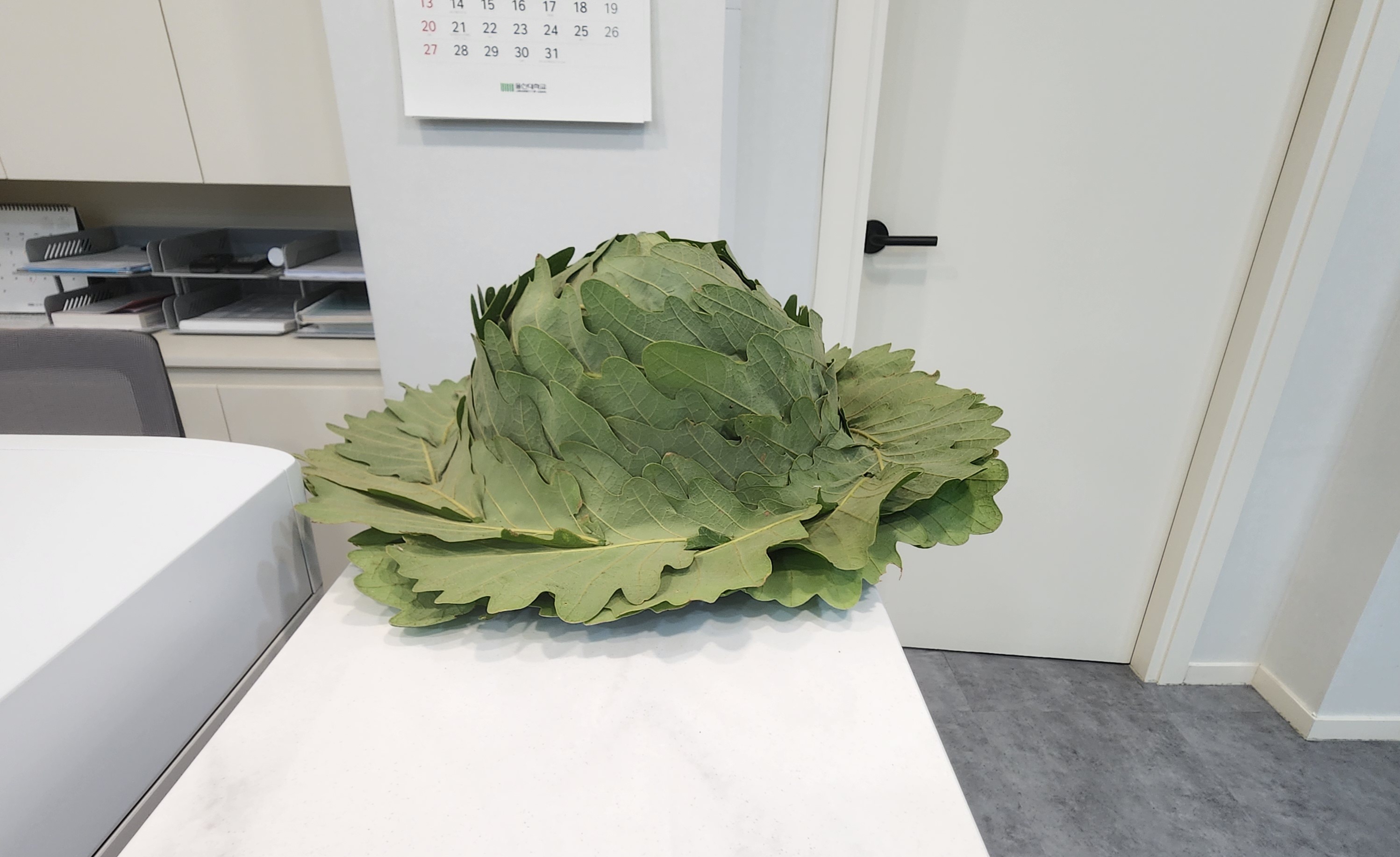 모자로서 기능적인 면에서는 빵점이지만, 잎으로 만들었다는 희귀성이 경쟁력!
