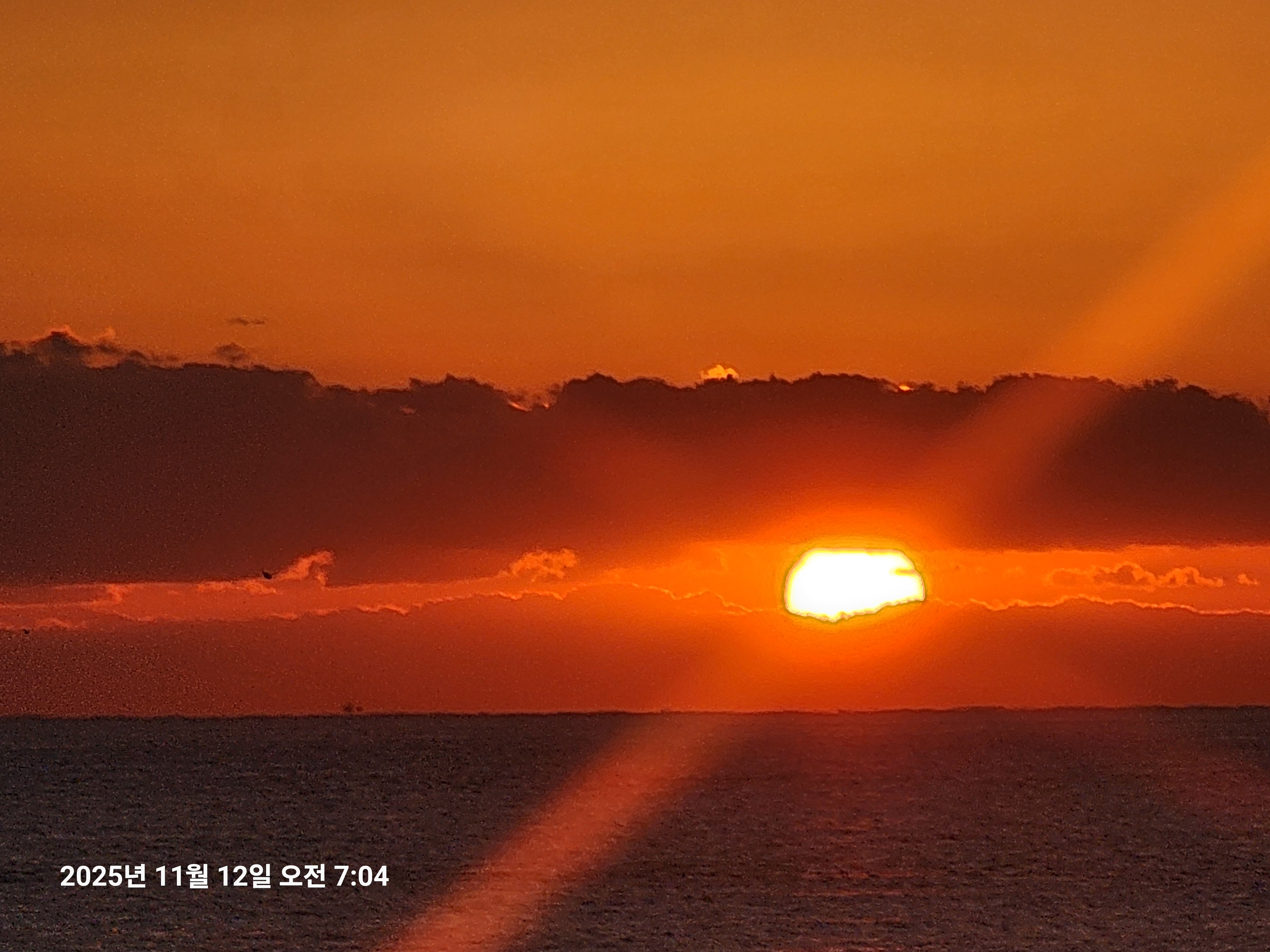 틈이 생겨 해가 구름위에서 뜬 다음