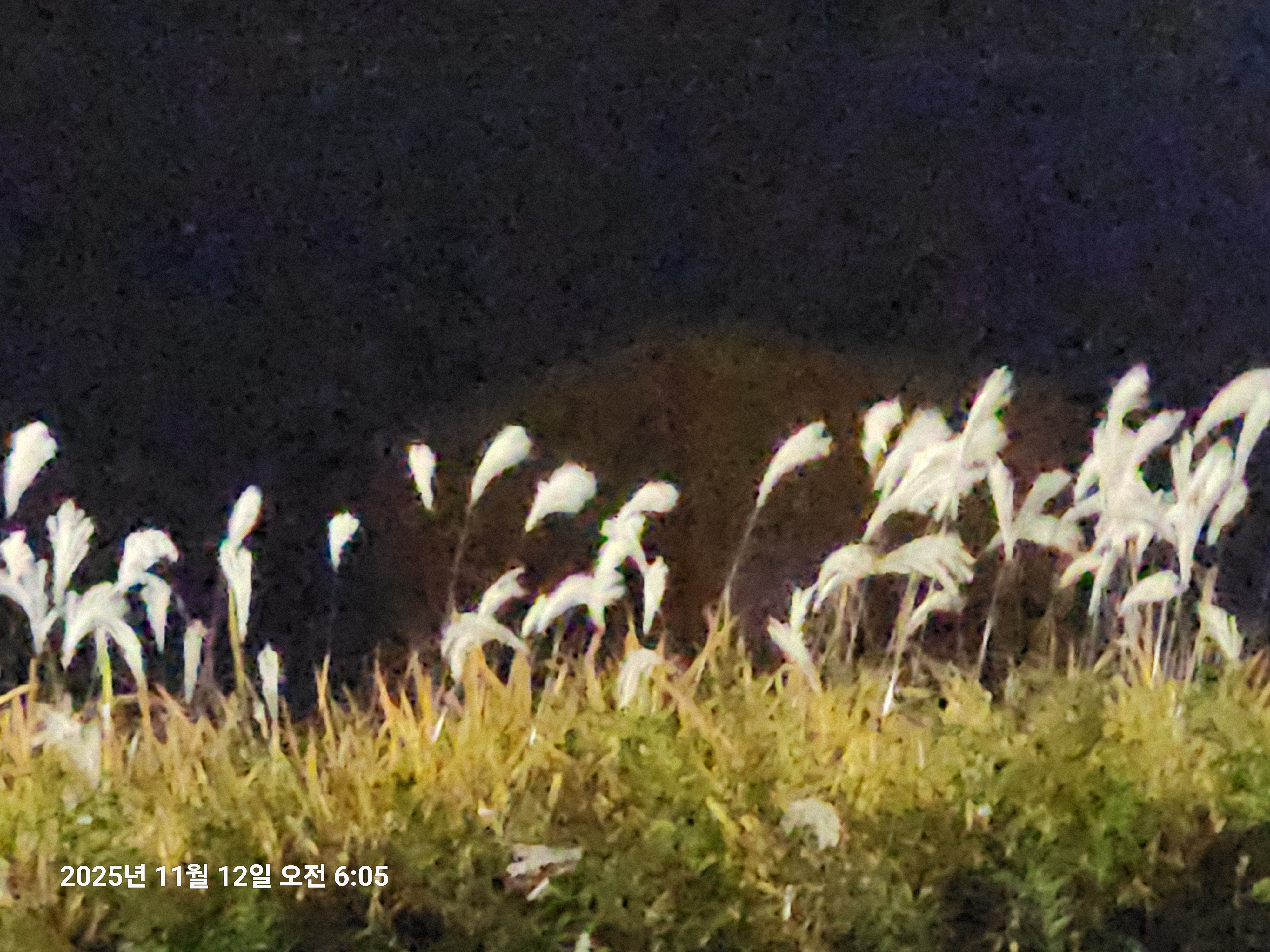 가로등 조명받은 제방위의 억새