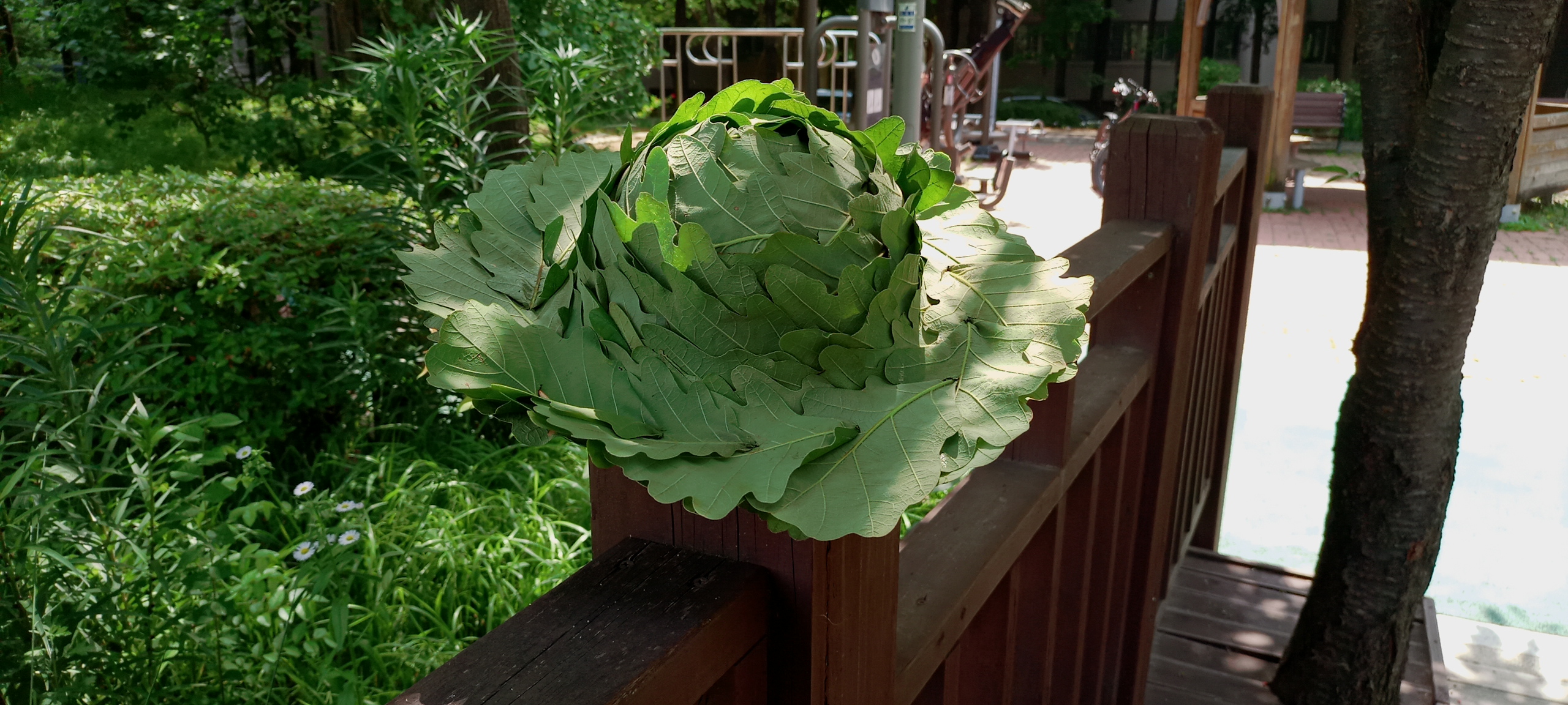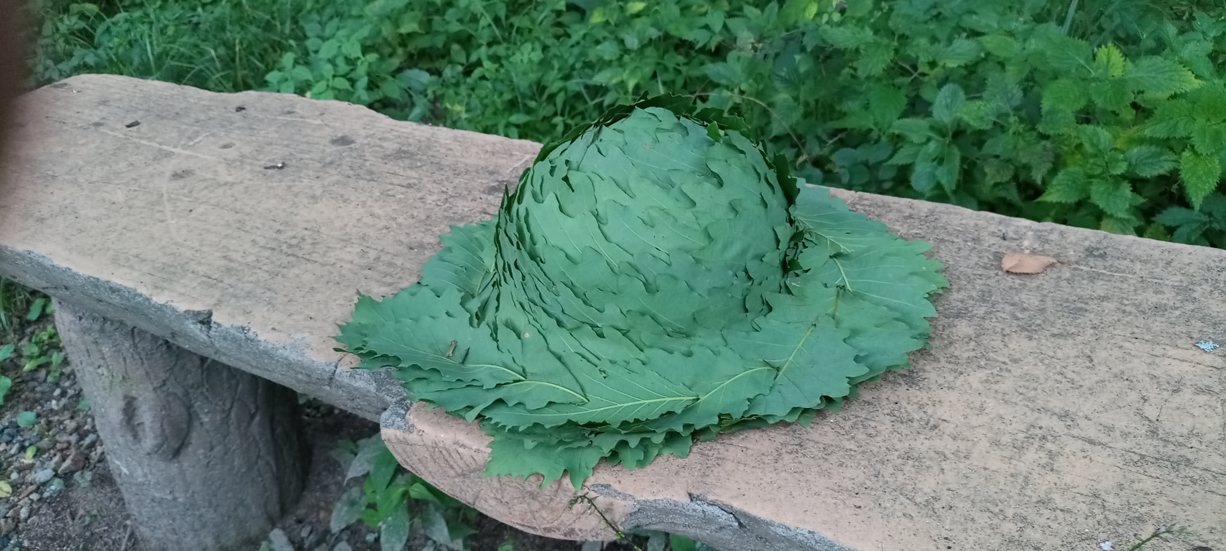내가 만든 갈잎모자, 보잘것 없는 나뭇잎이 나름, 낭만있는 모자로 변신되는데