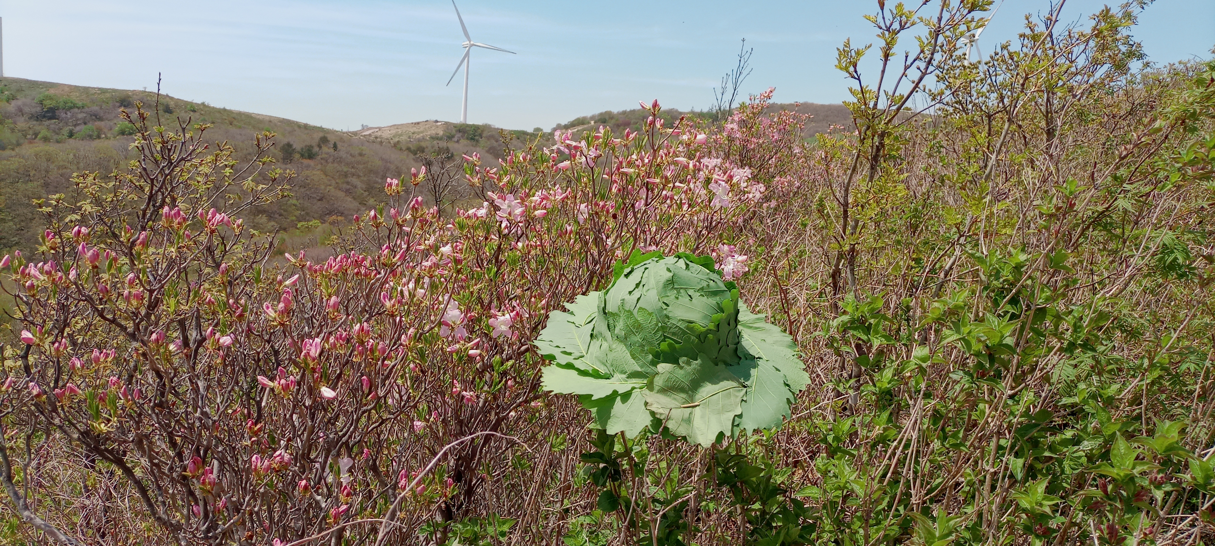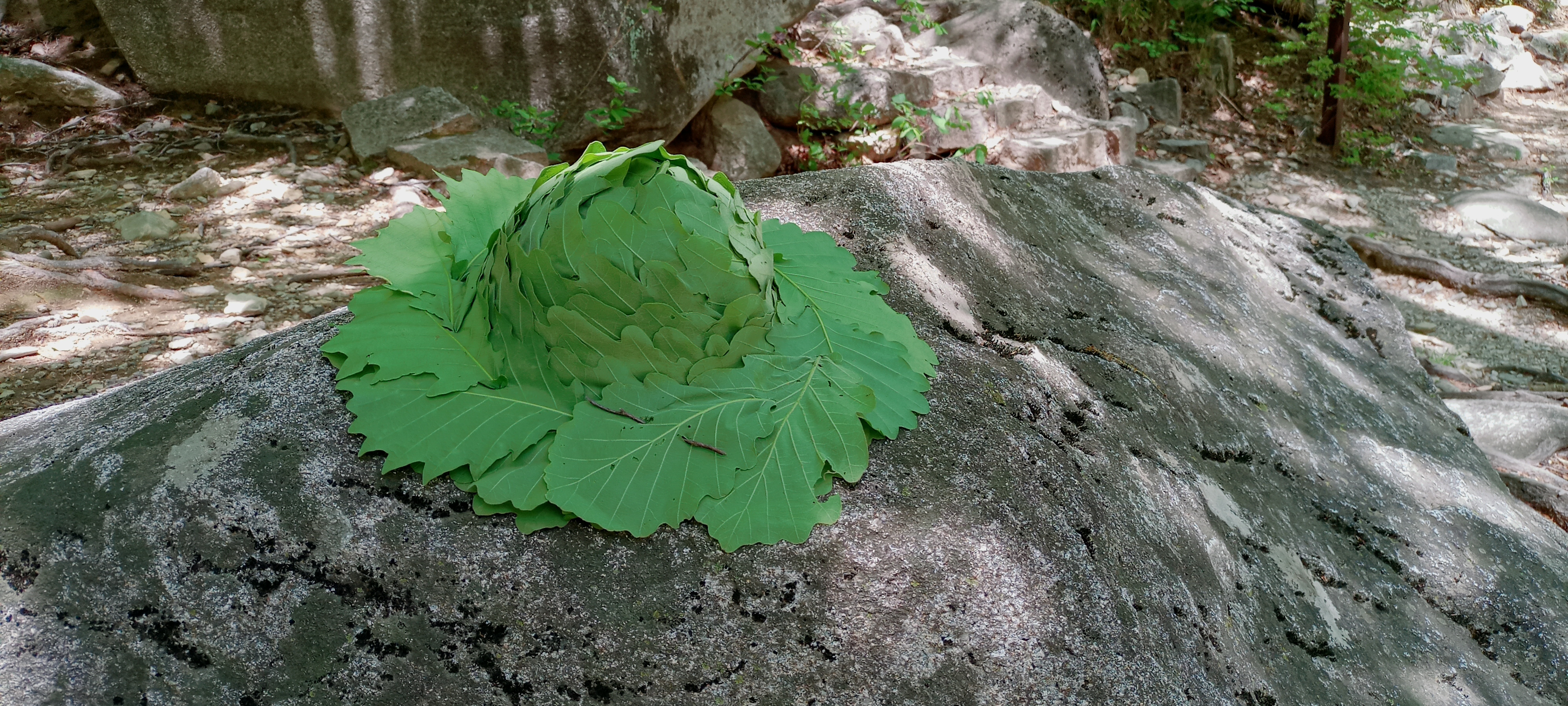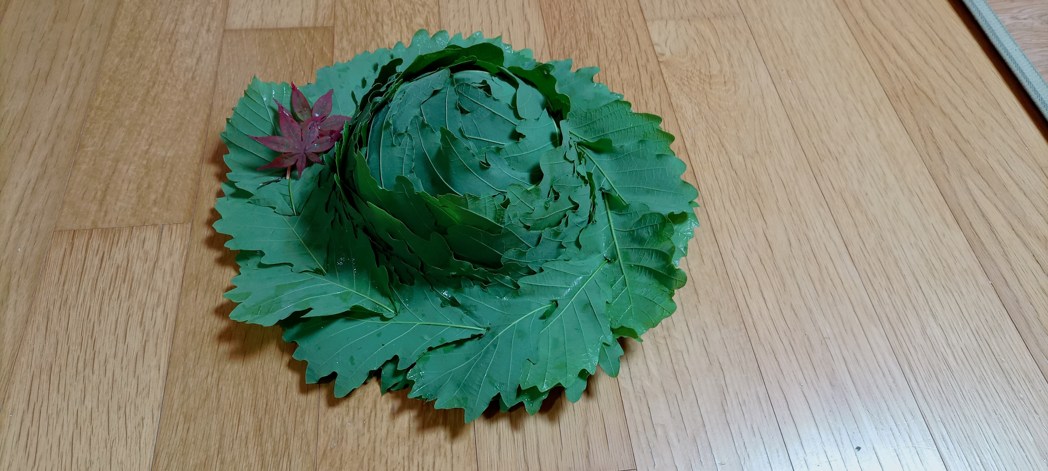 2021년도 No 1~2호, 21.5.5 어린이날, 무릉계곡에서 두어린이에게 줌, 잎이 너무 연하여 모양잡기 어렵다