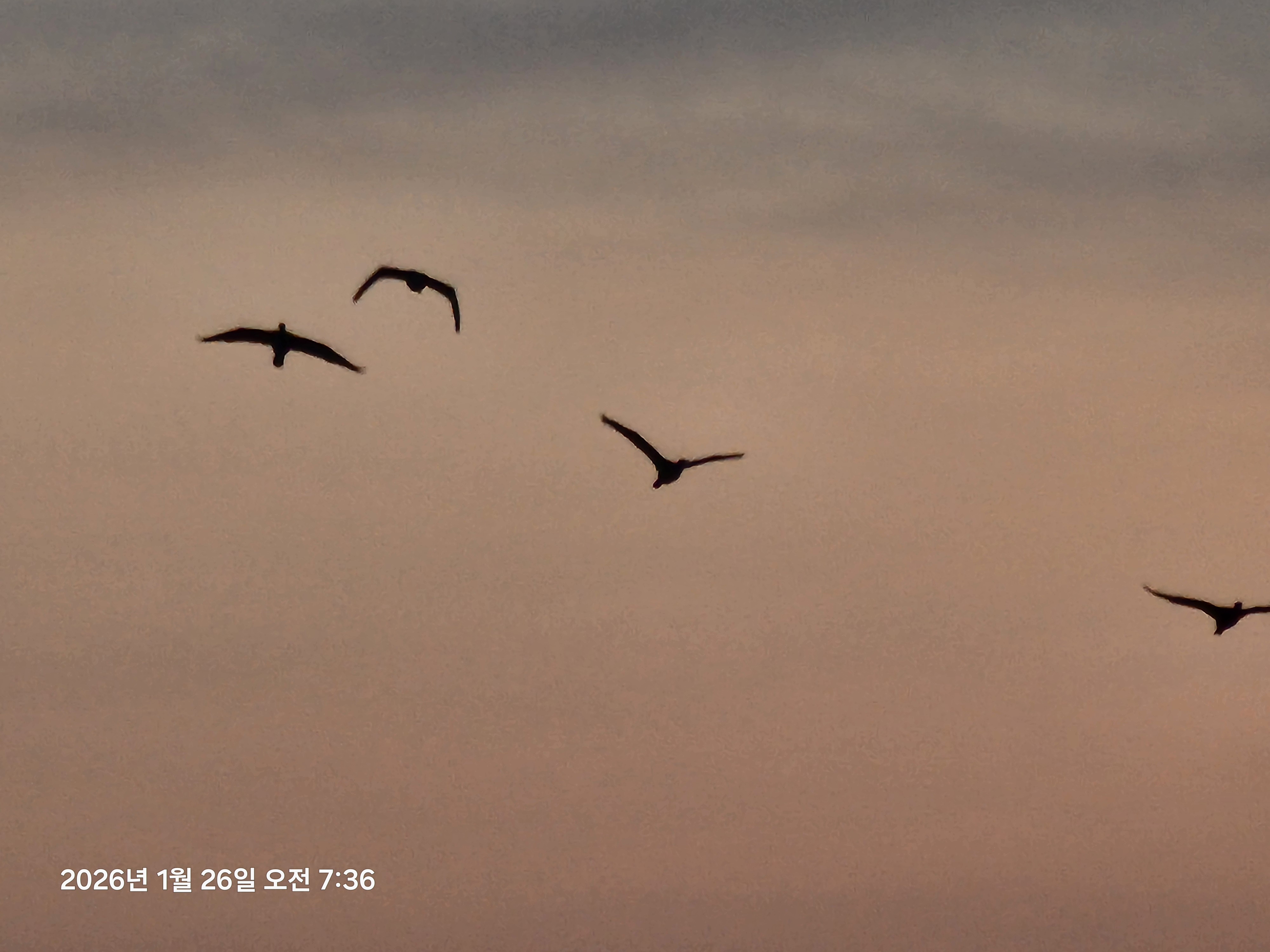 오늘은 구름이 낀건 어제와 비슷했는데 하늘이 흐릿하여 노을이 아름답지 않았다.