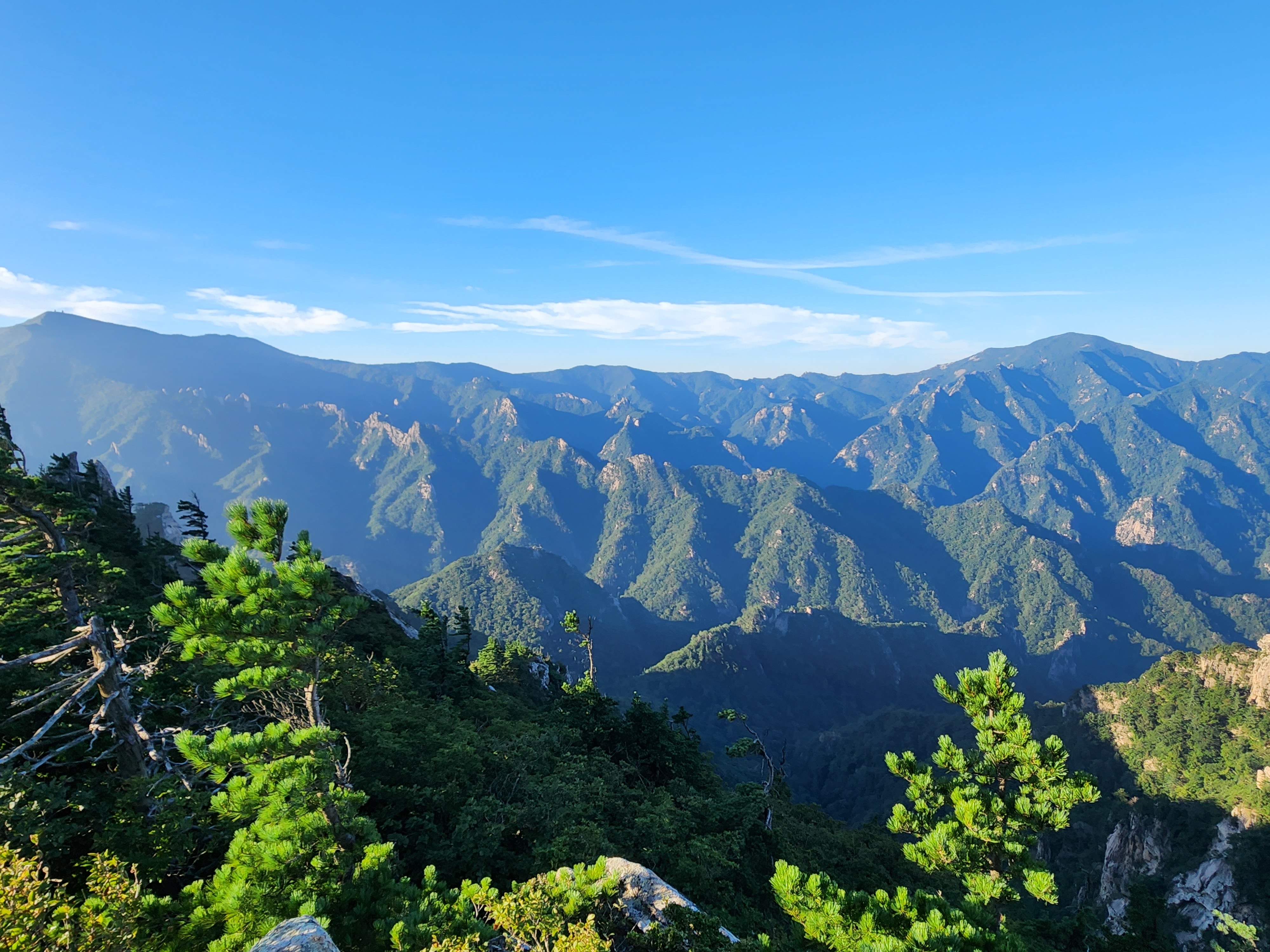 마등령에서는 그간 여러번 선명한 수평선에서 제대로 떠오르는 일출을 볼수 없었는데, 오늘도 마찬가지였다.