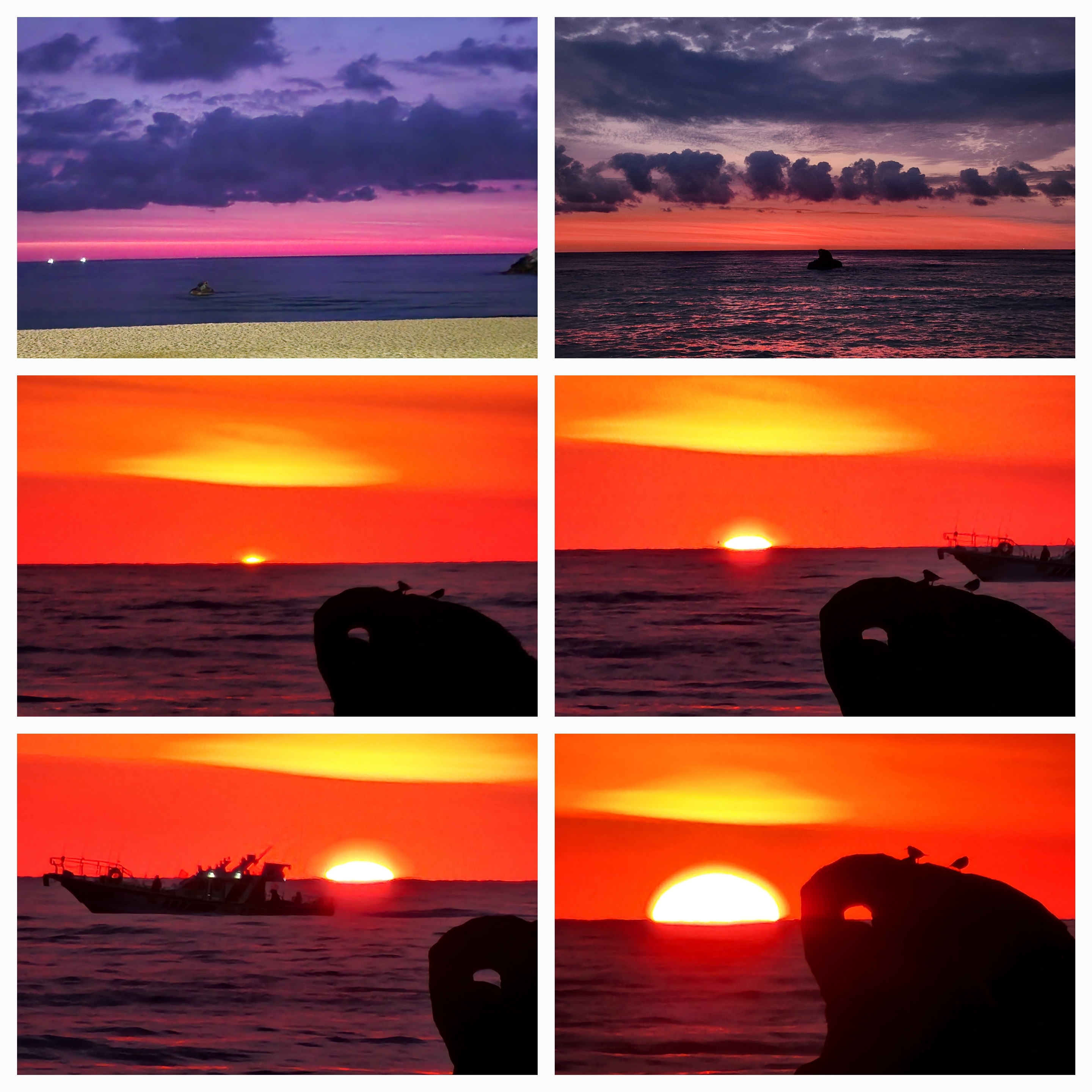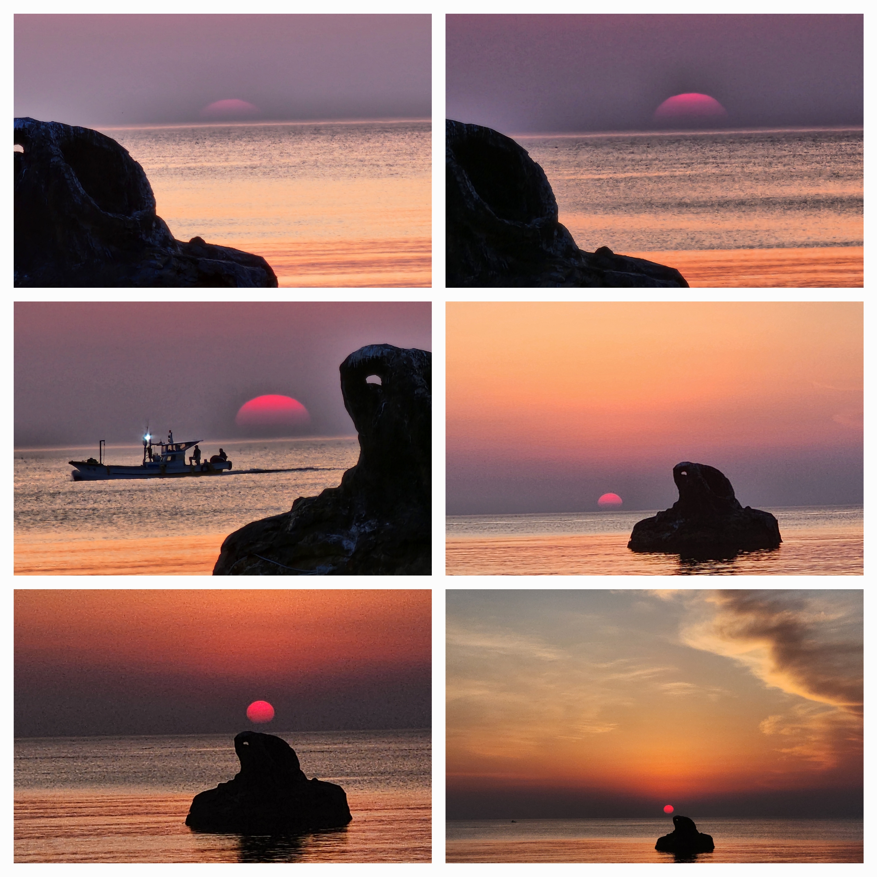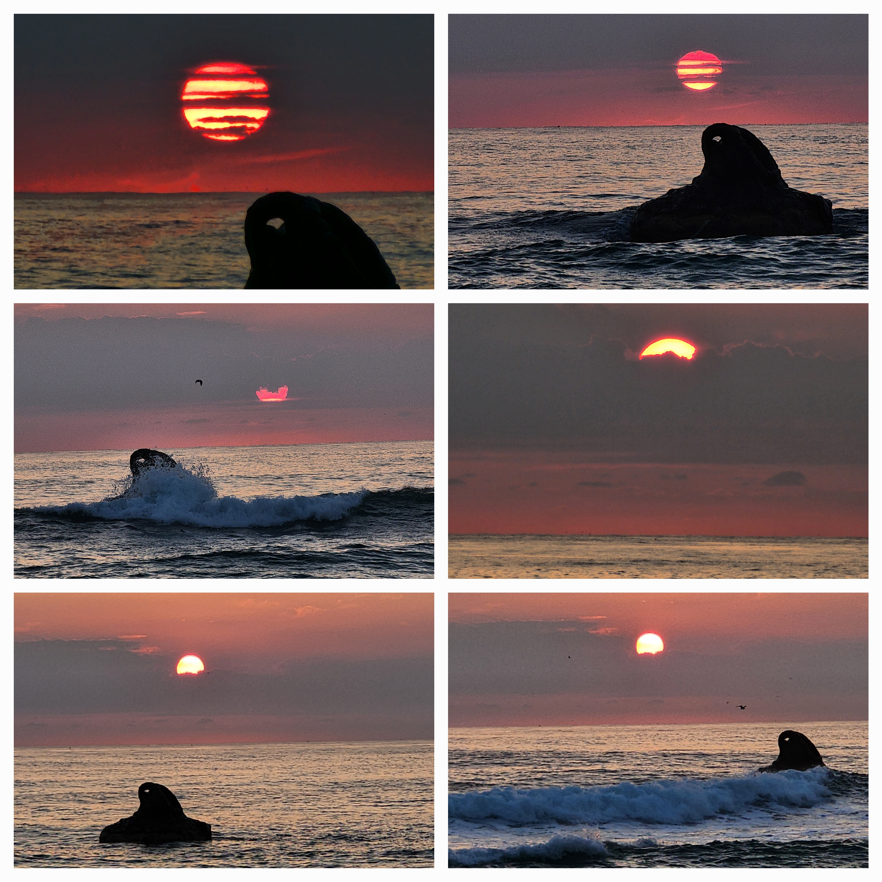 구름이 온 하늘을 덮고 있는데, 일출쇼를 펼치려 수평선위에 공간을 확보했지만 폭이 너무좁아 해의 얼굴도 다 못보이고 구름에 잠긴다. 그래도 수평선 일출이라 반갑다.