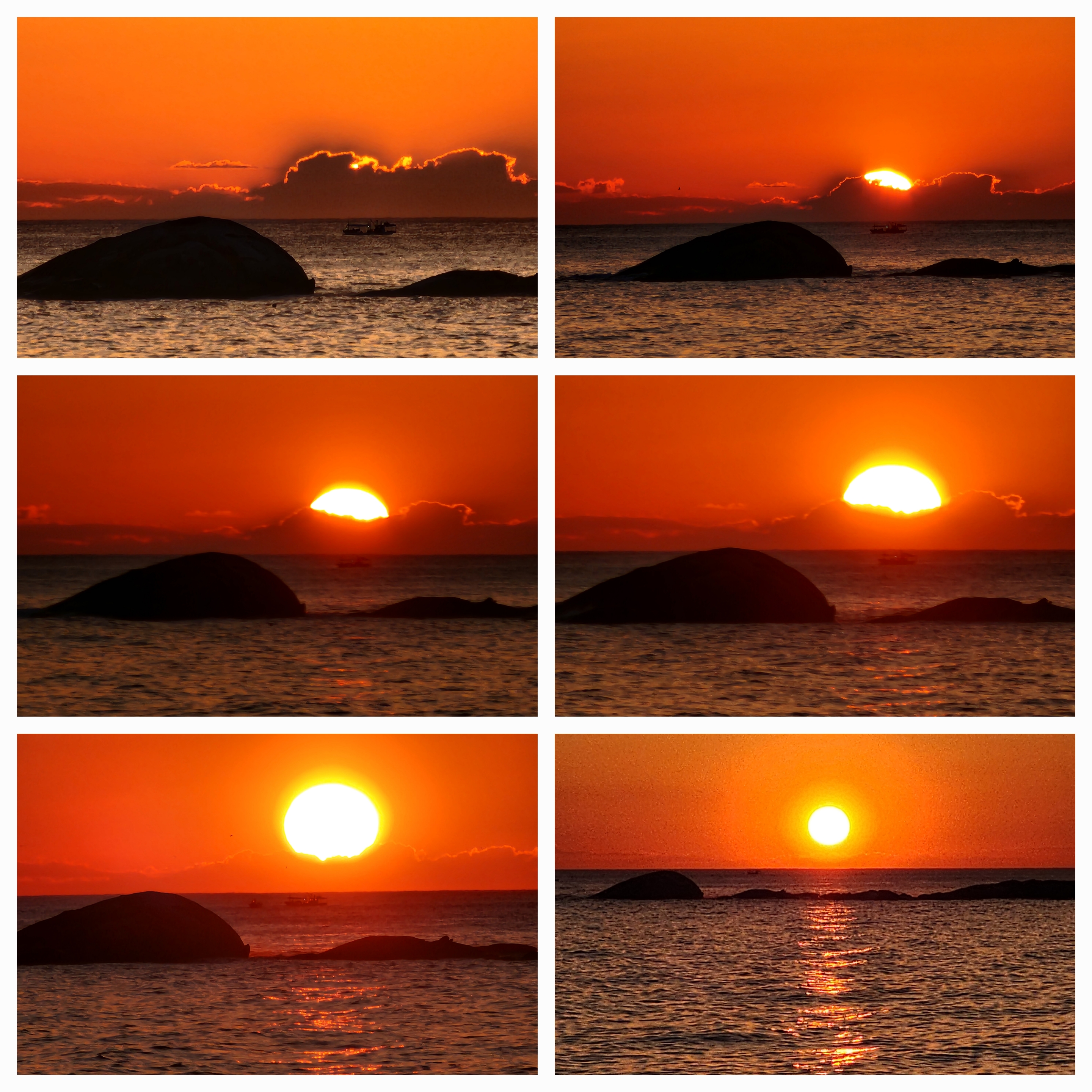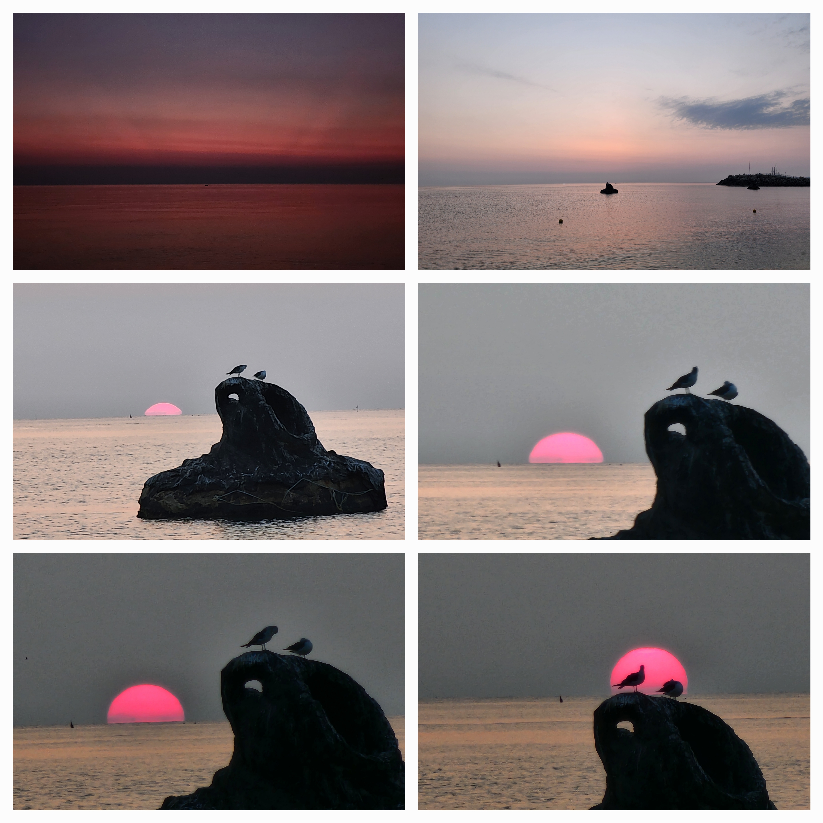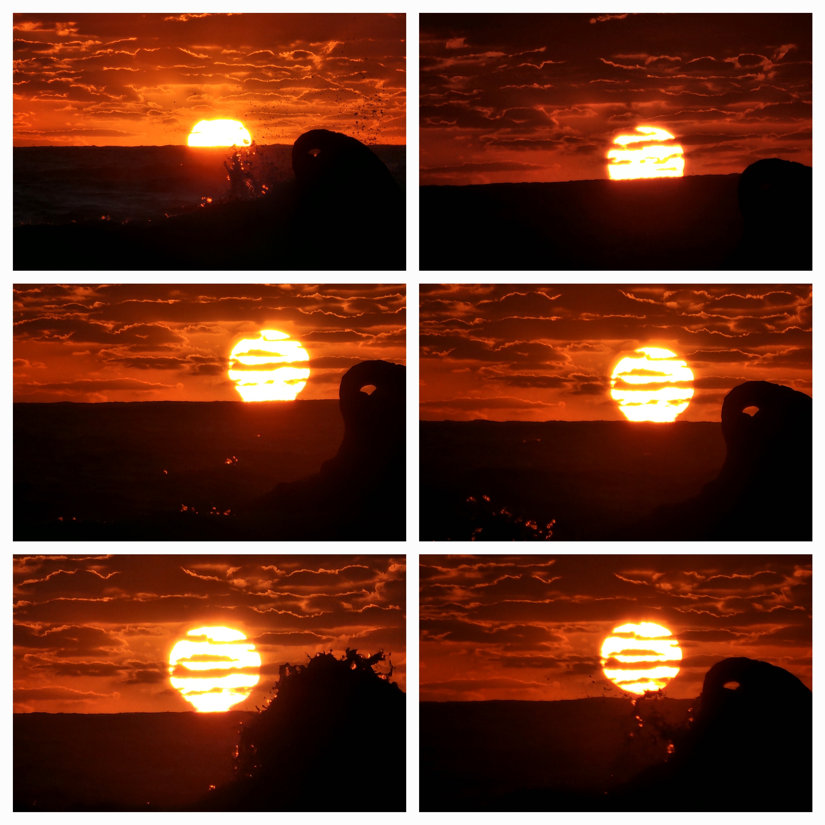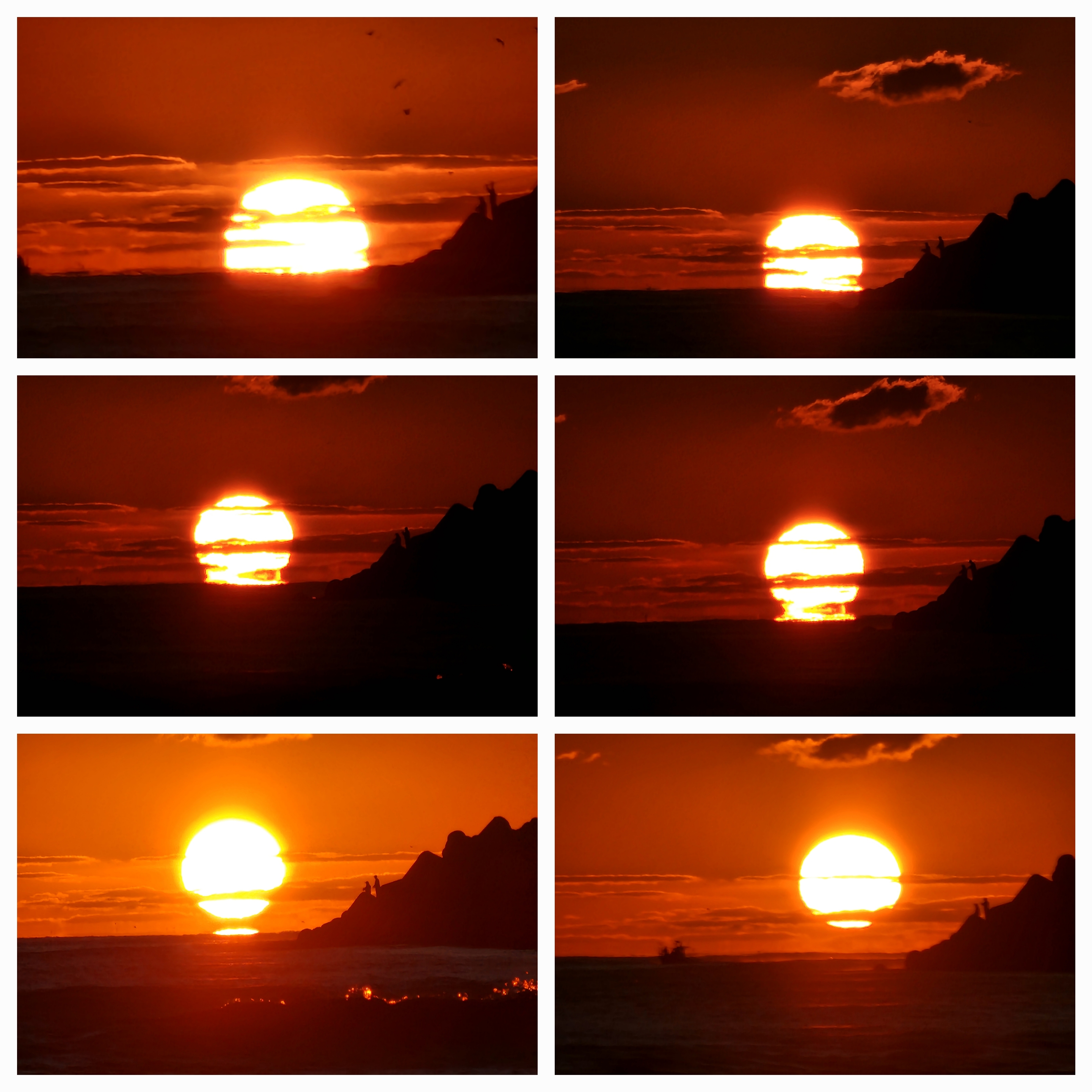 구름이 온 하늘을 덮고 있는데, 일출쇼를 펼치려 수평선위에 공간을 확보했지만 폭이 너무좁아 해의 얼굴도 다 못보이고 구름에 잠긴다. 그래도 수평선 일출이라 반갑다.
