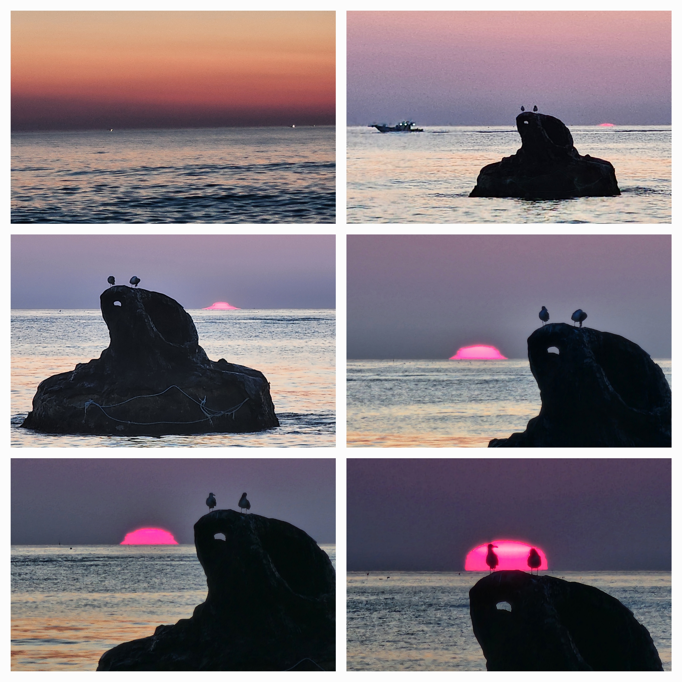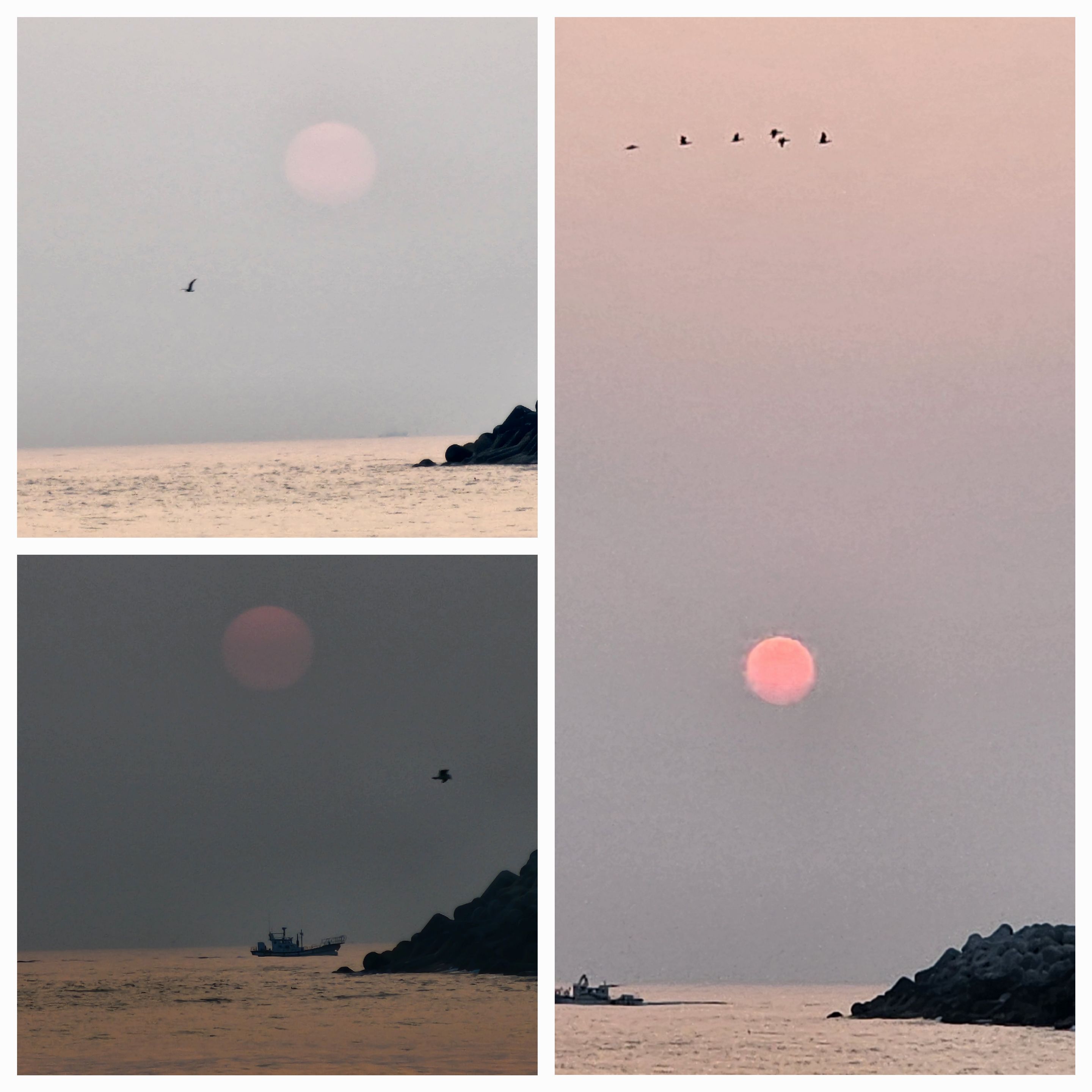 평상시엔 수평선에서 살며시 해가 솟는데, 오늘따라 갑자기 툭 튀어나오는 느낌이다.