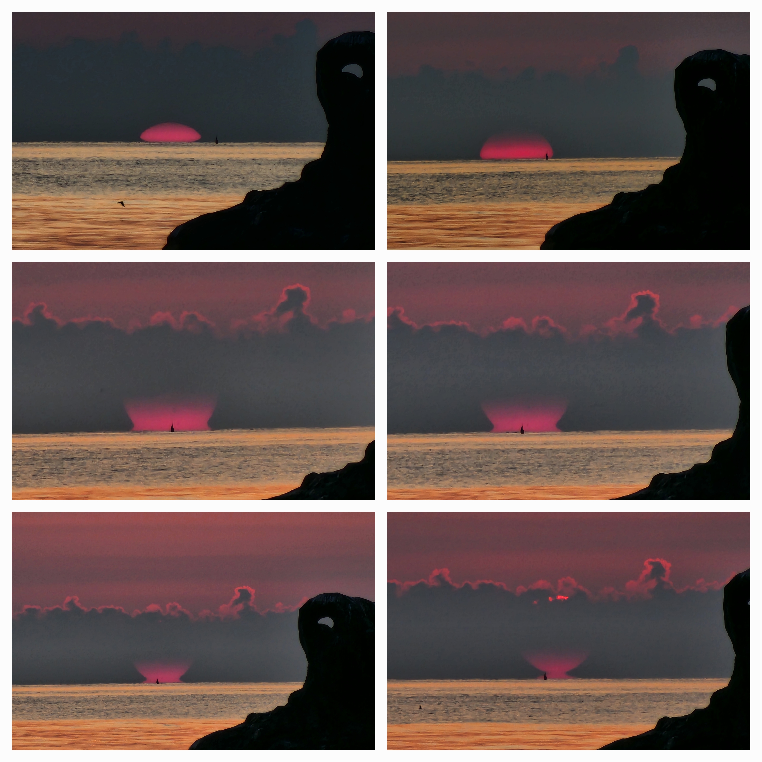 9.11 이후 6일만에 ,동작은 약하지만 오메가 현상을 수반한 수평선일출이다.