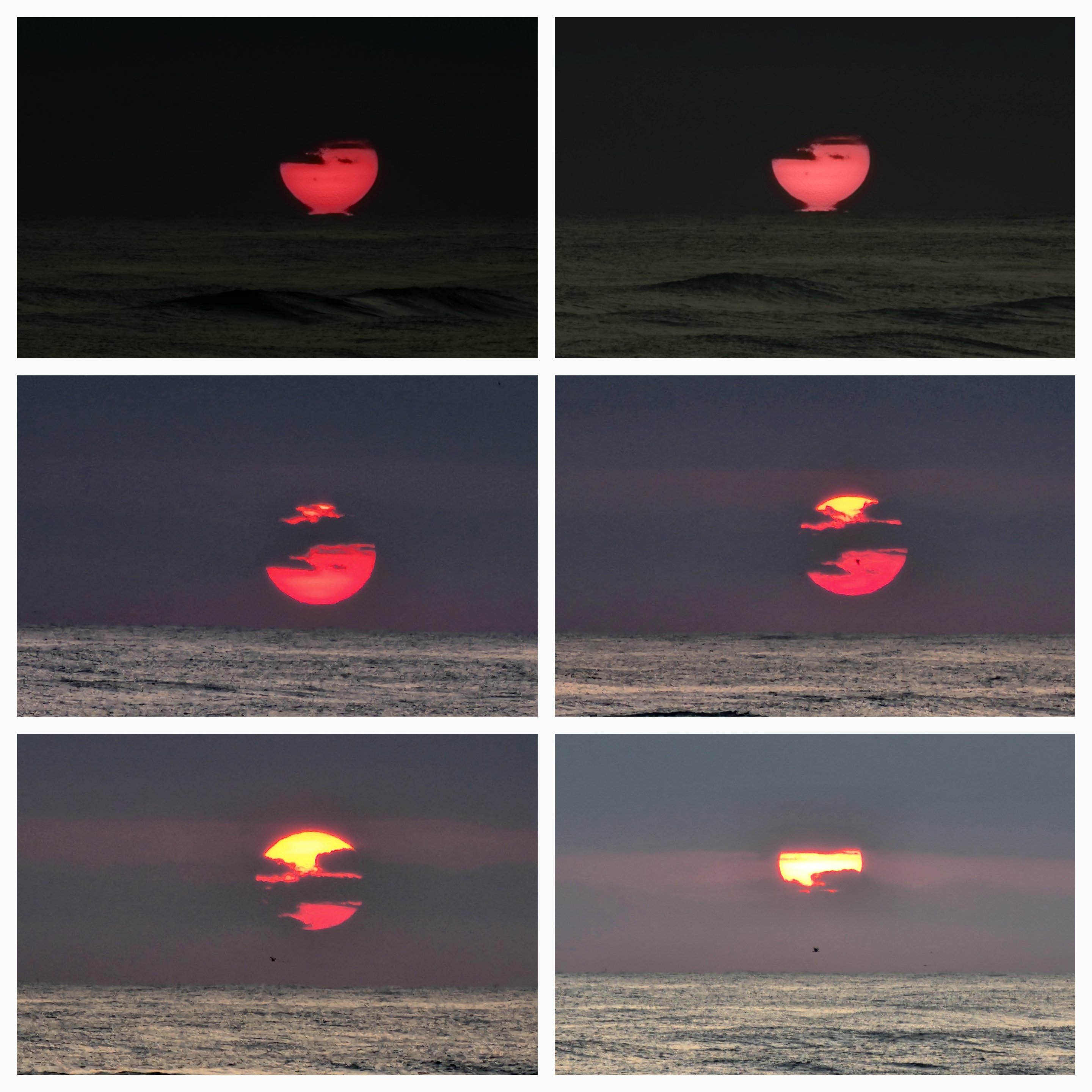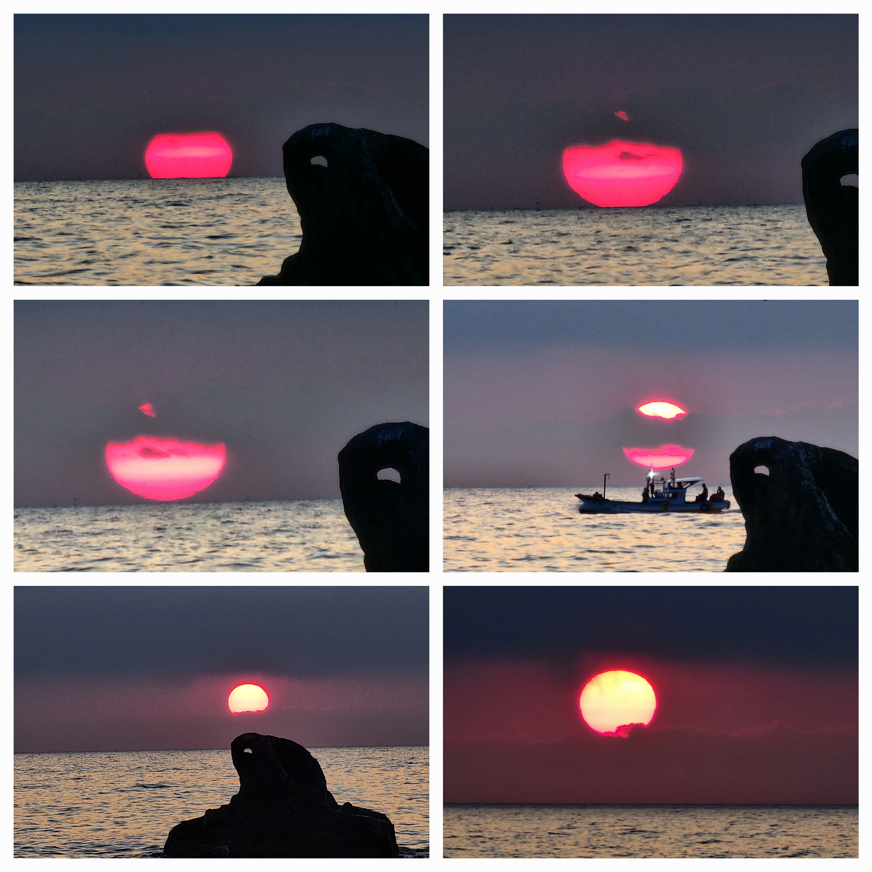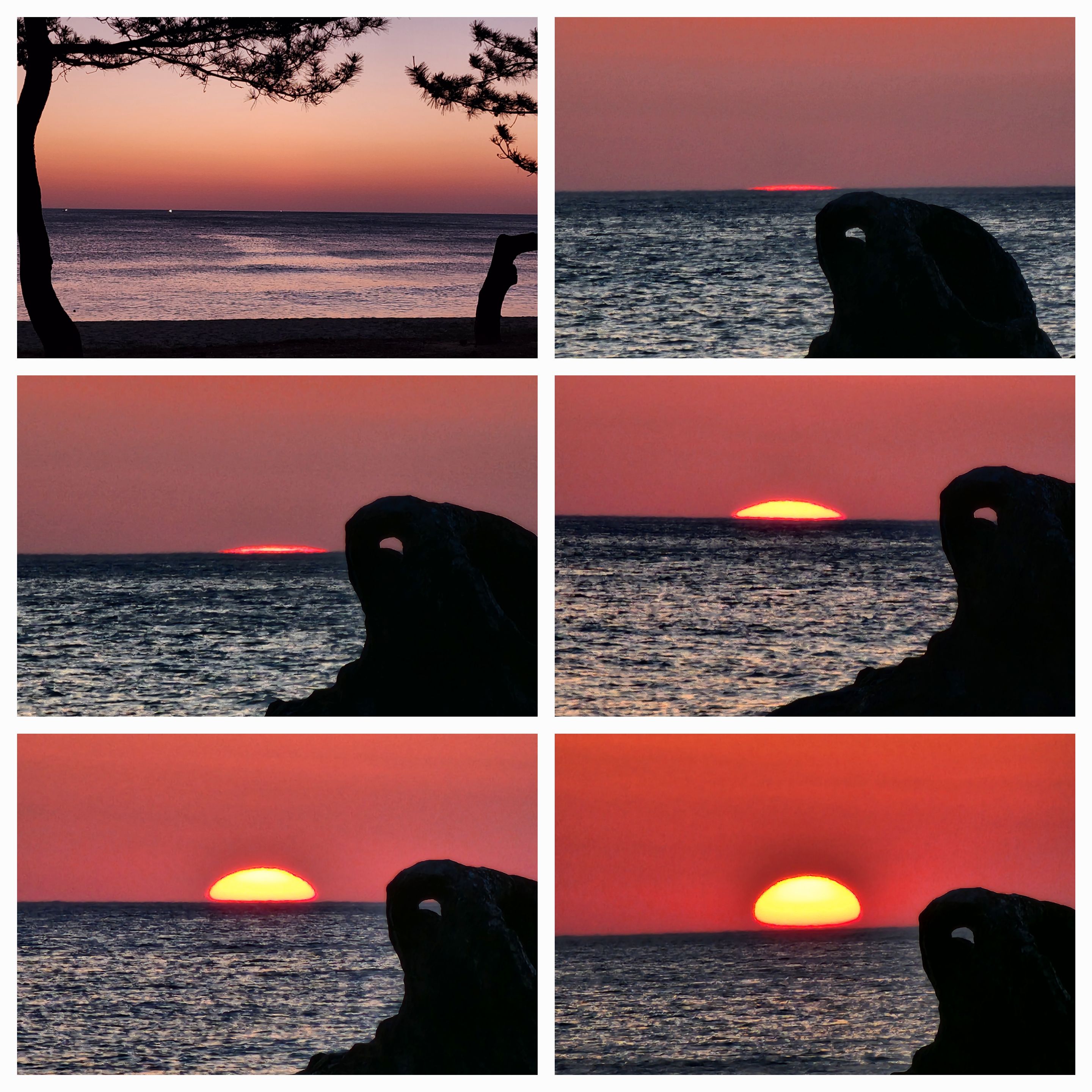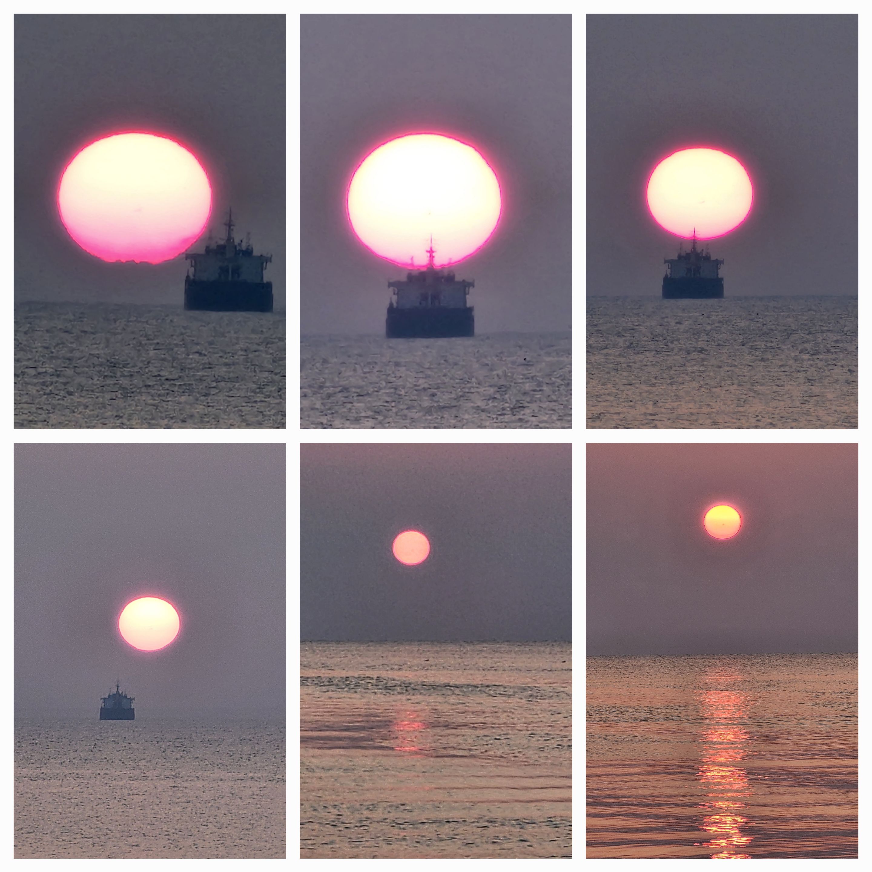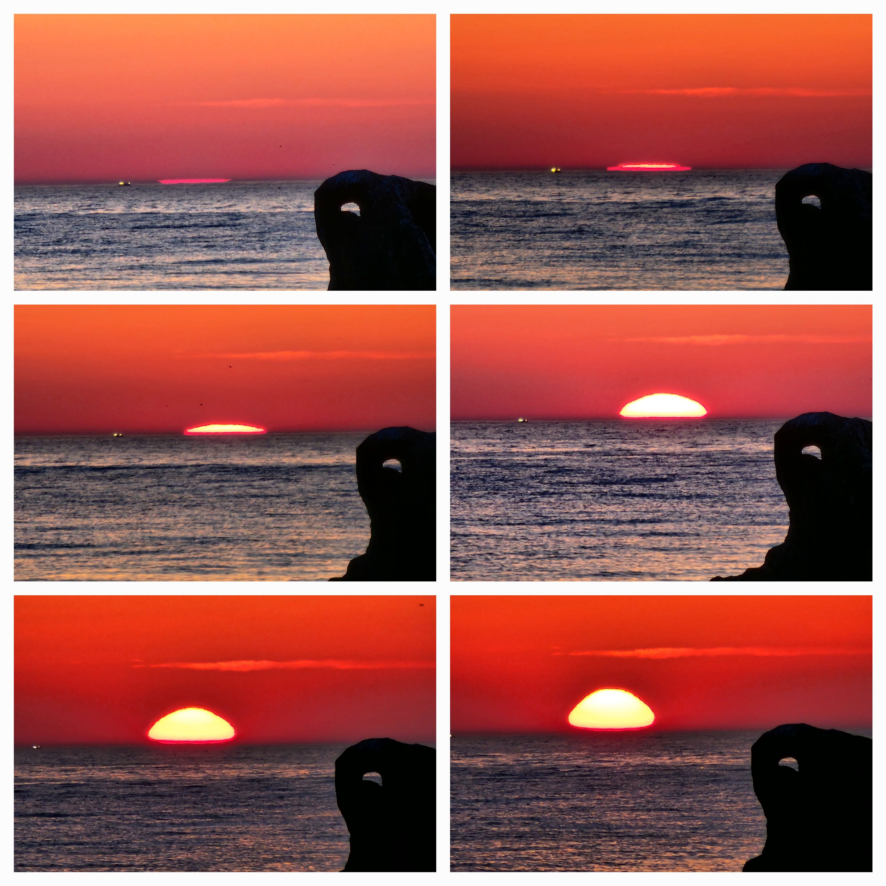 오랜만에 오메가 현상을 수반한 수평선일출을 본다.