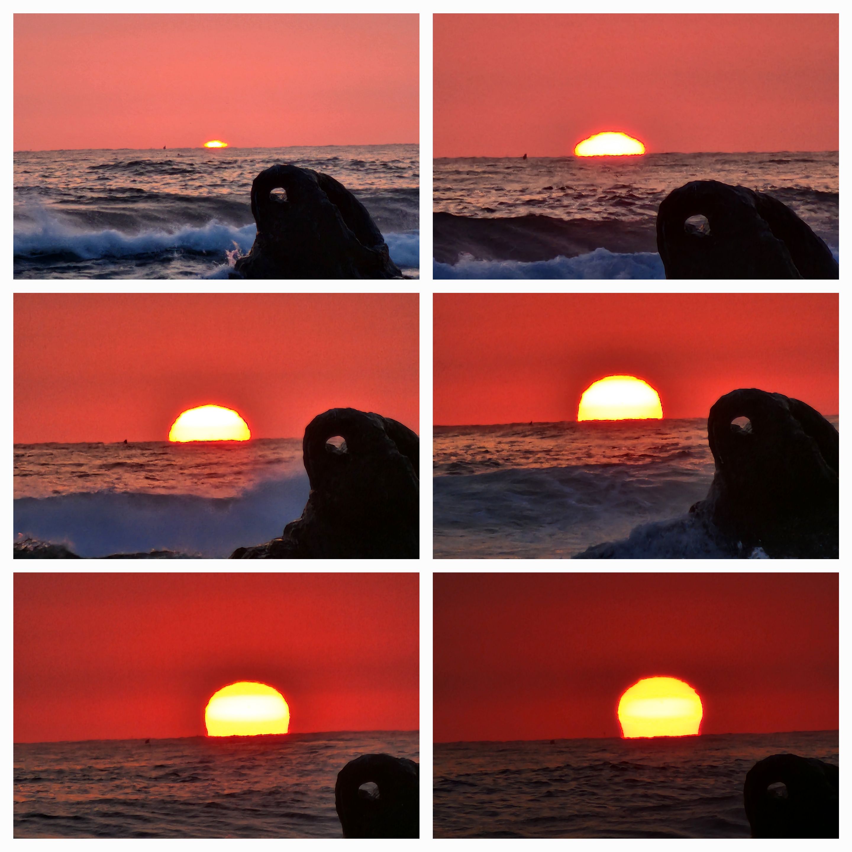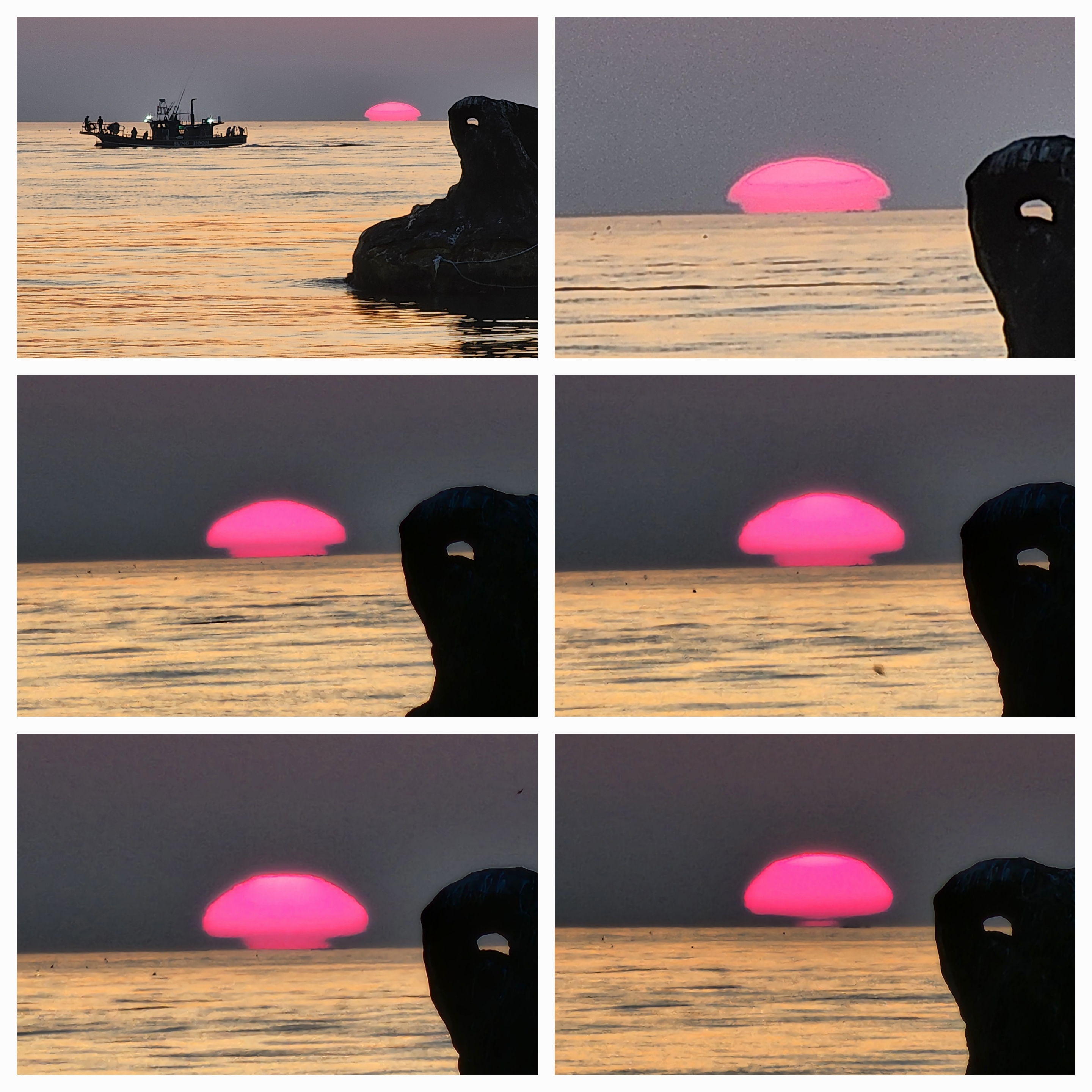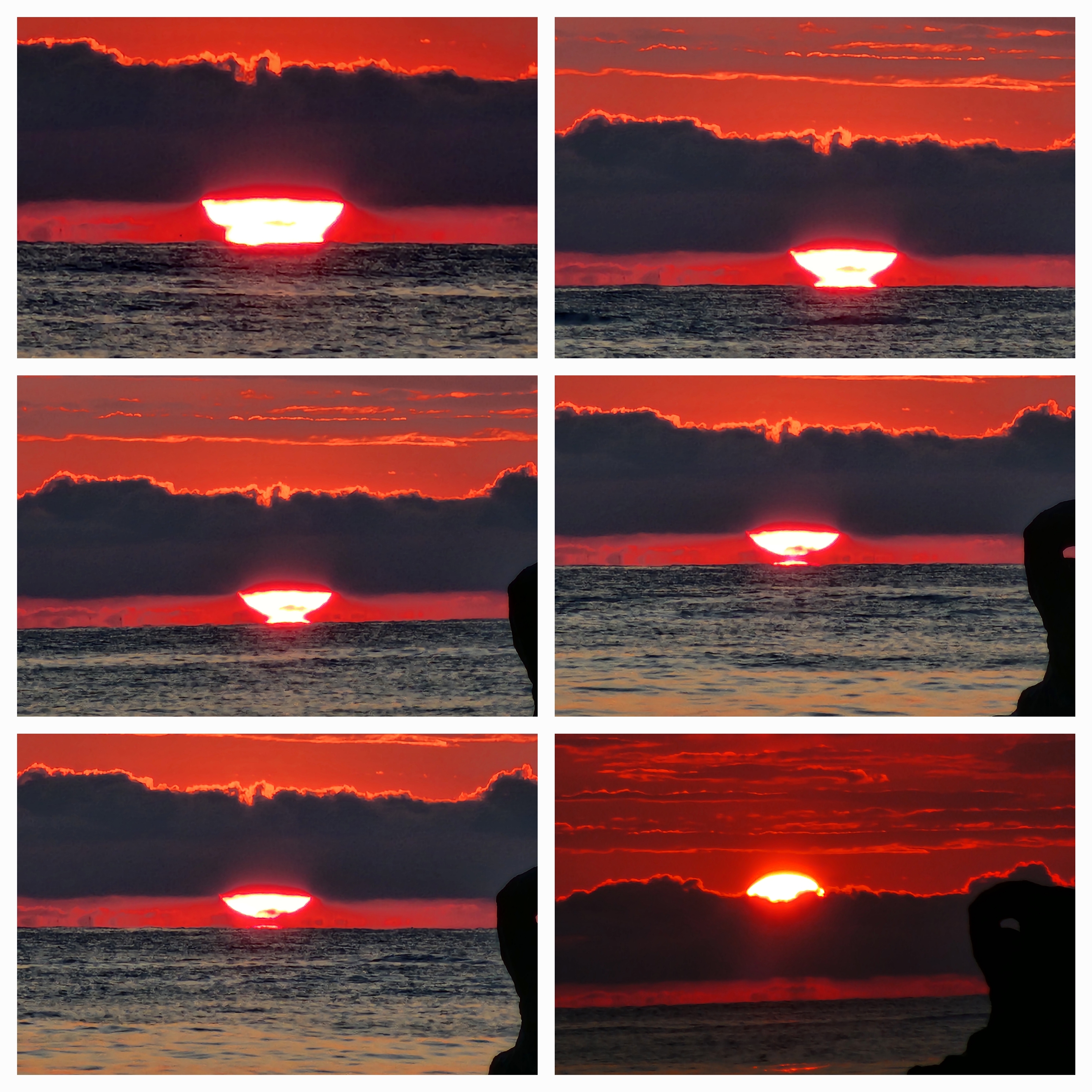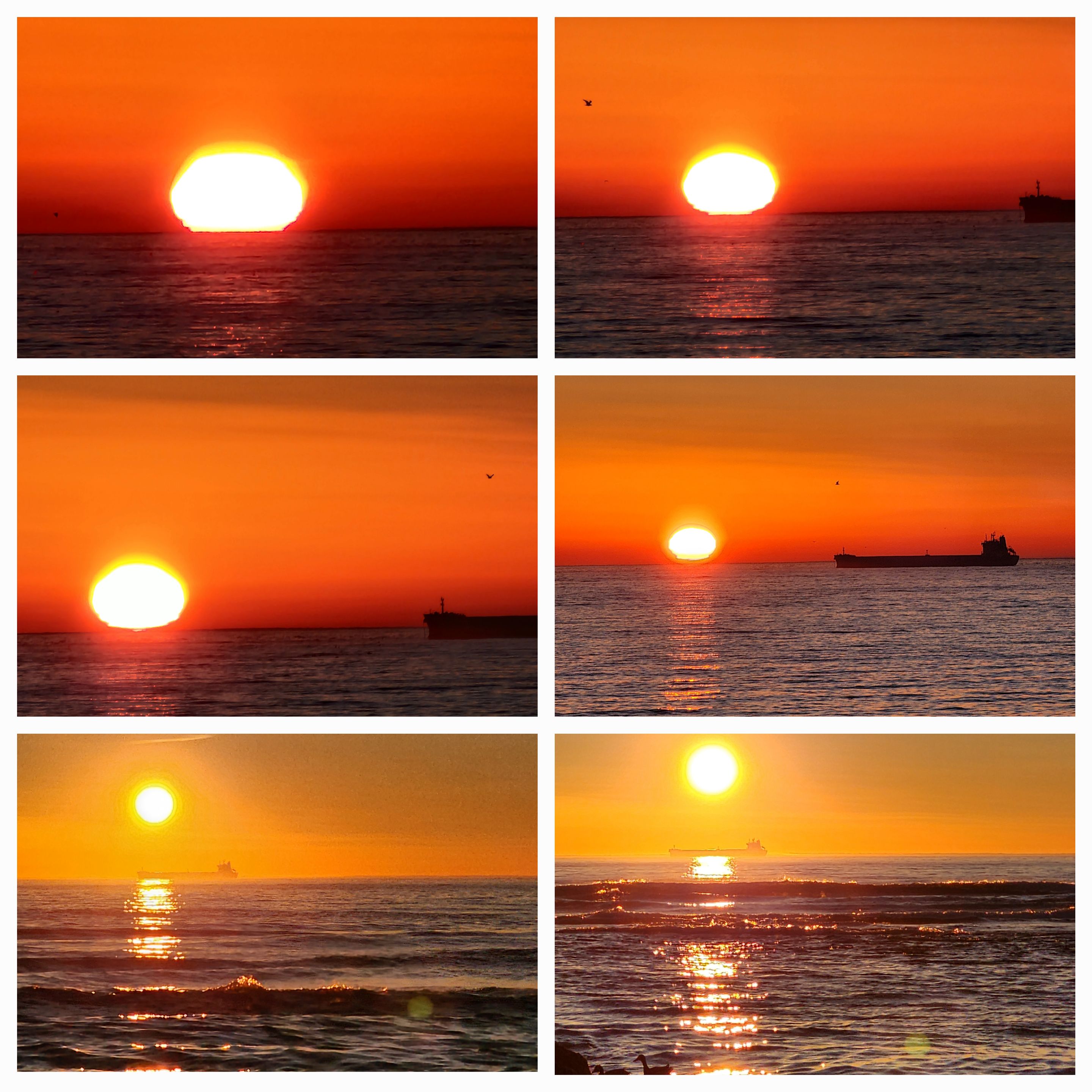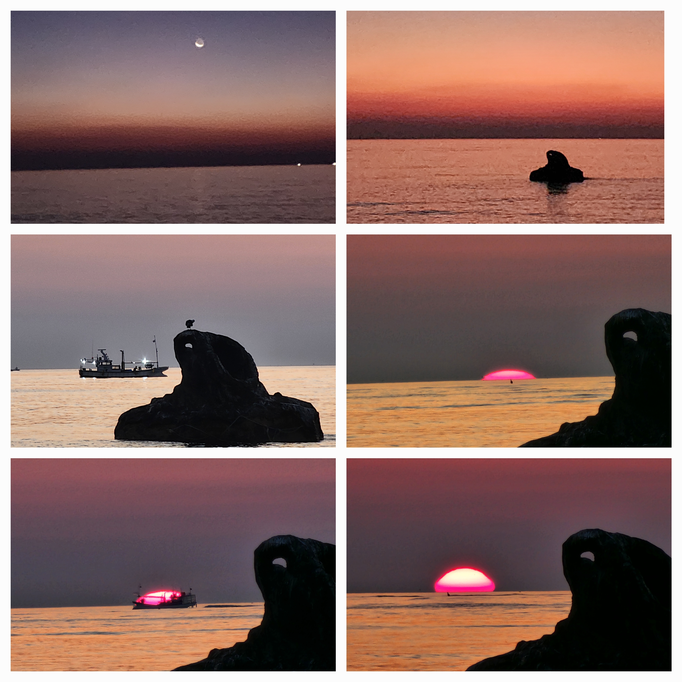 오랜만에 오메가 현상을 수반한 수평선일출을 본다.