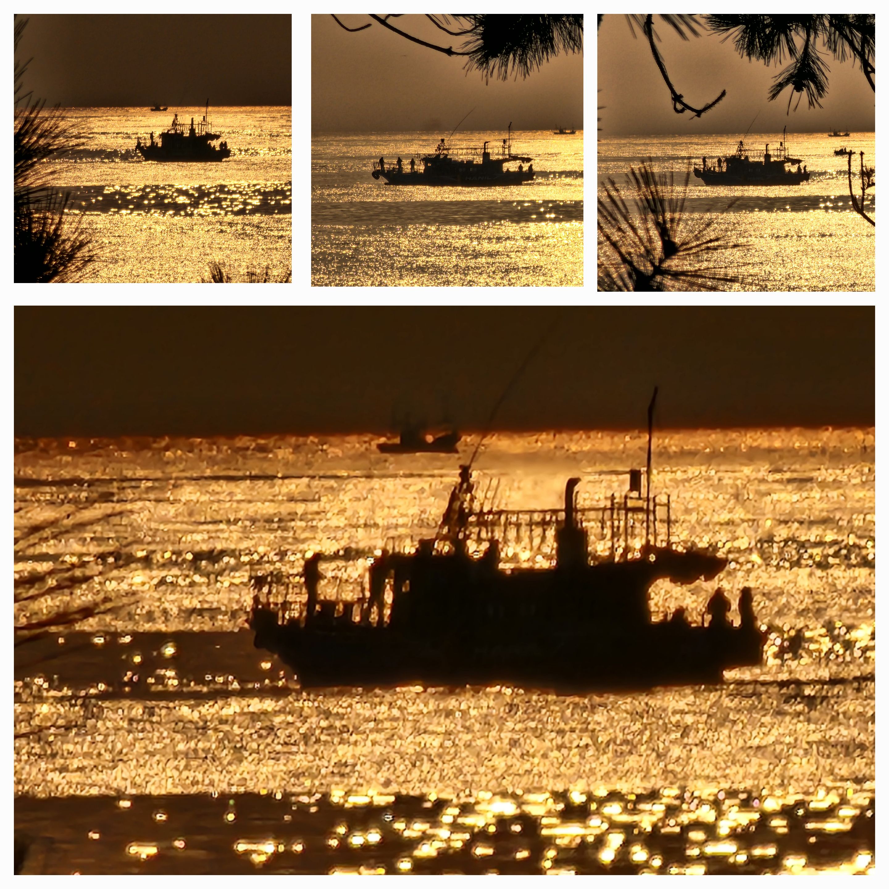 주말이라 낚싯배가 여러척 떠있고, 황금물결과 낚싯배의 조화....