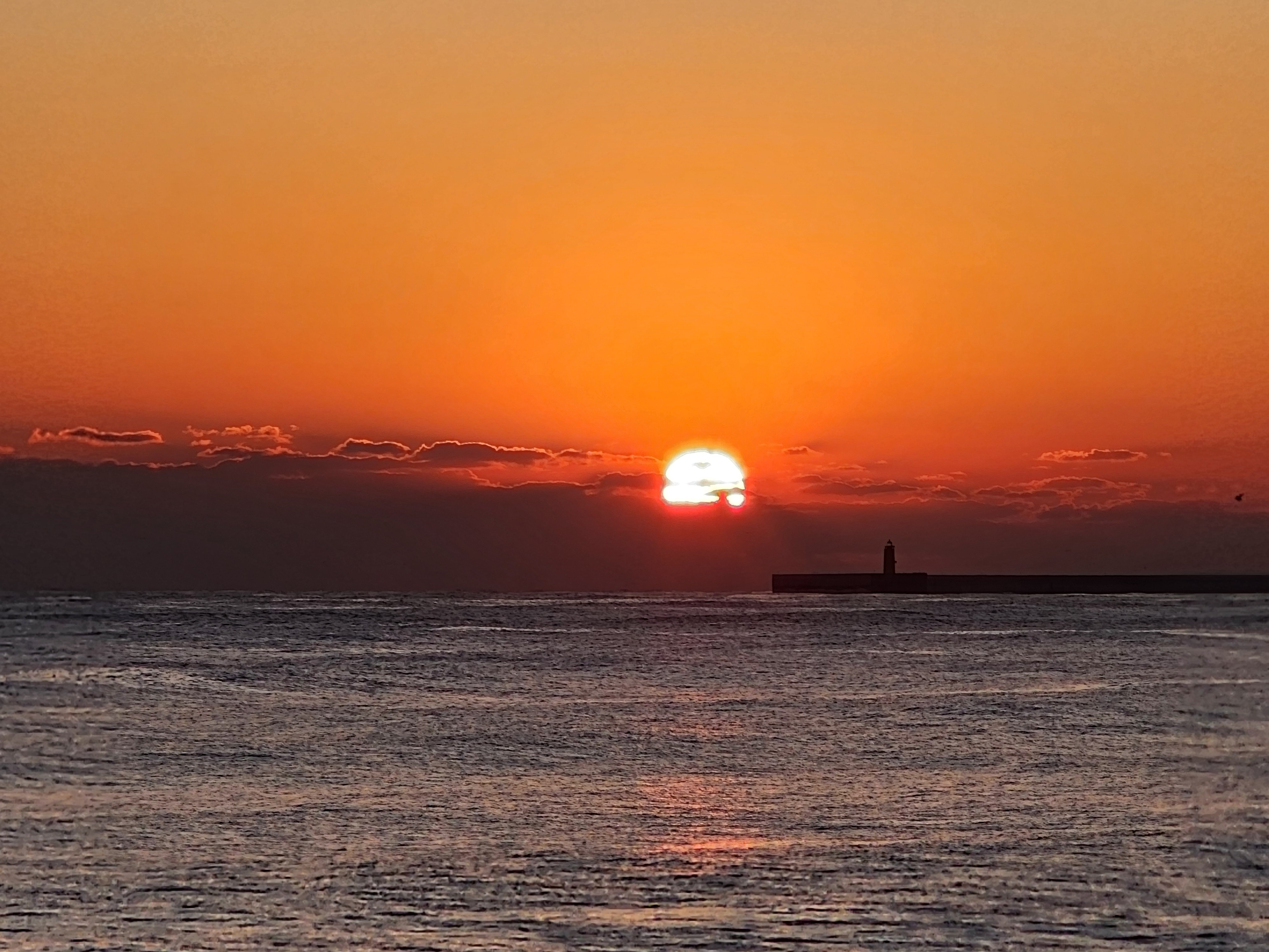 오늘은 수평선에 폭넓은 짙은 구름이 길게 누워있다,
