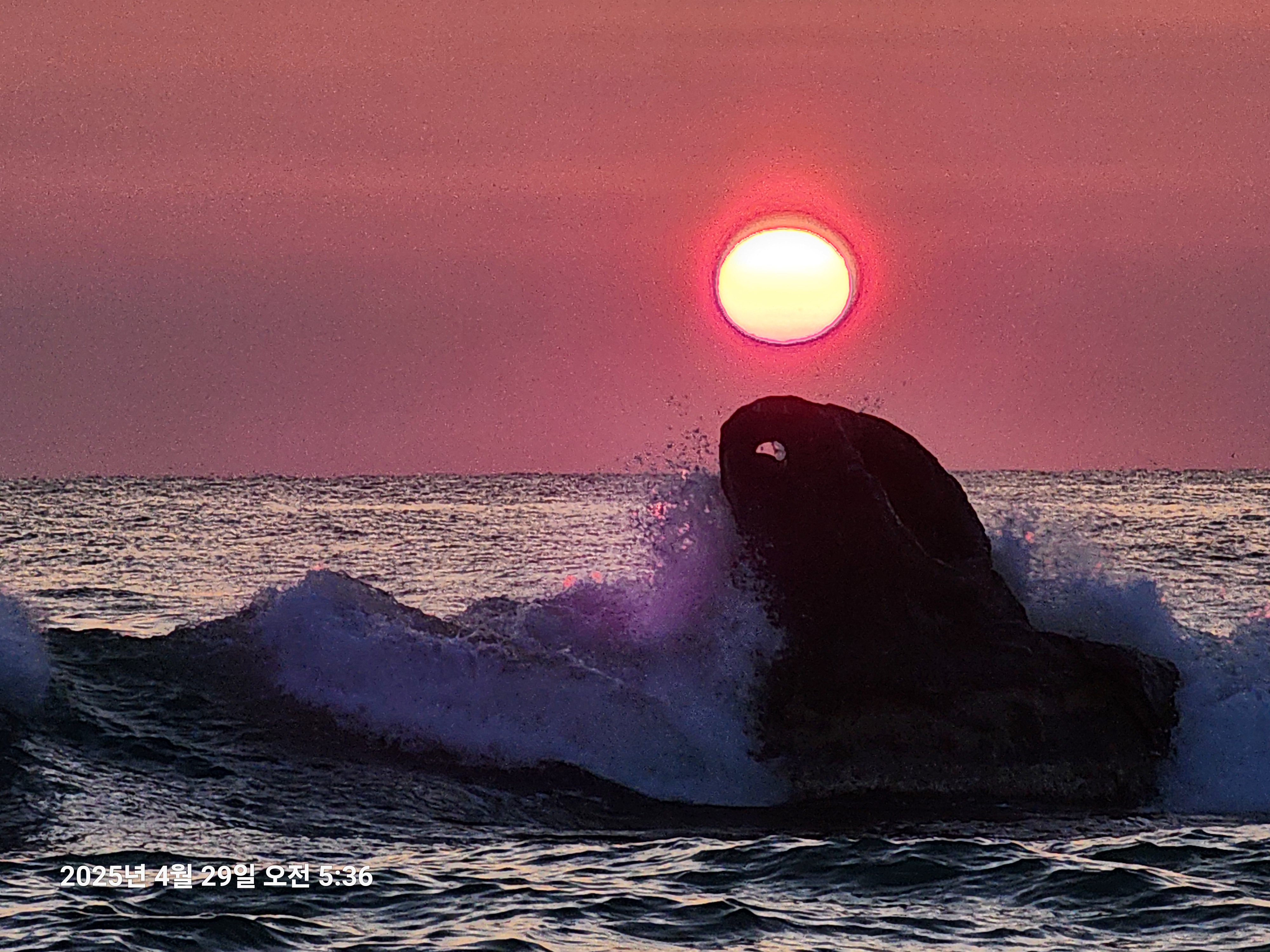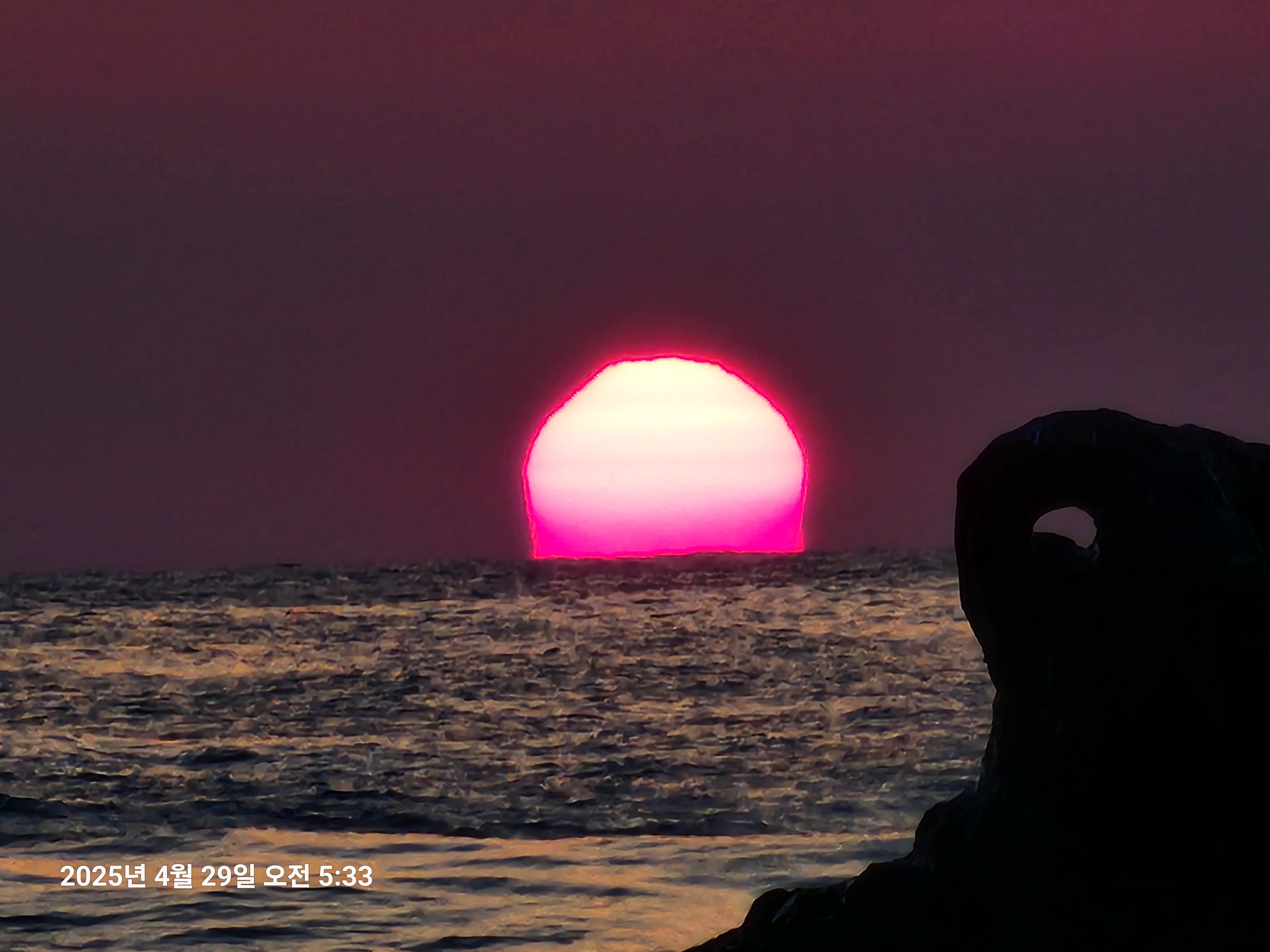 걱정했는데 그래도 오메가현상을 동반한 수평선 일출을본다.