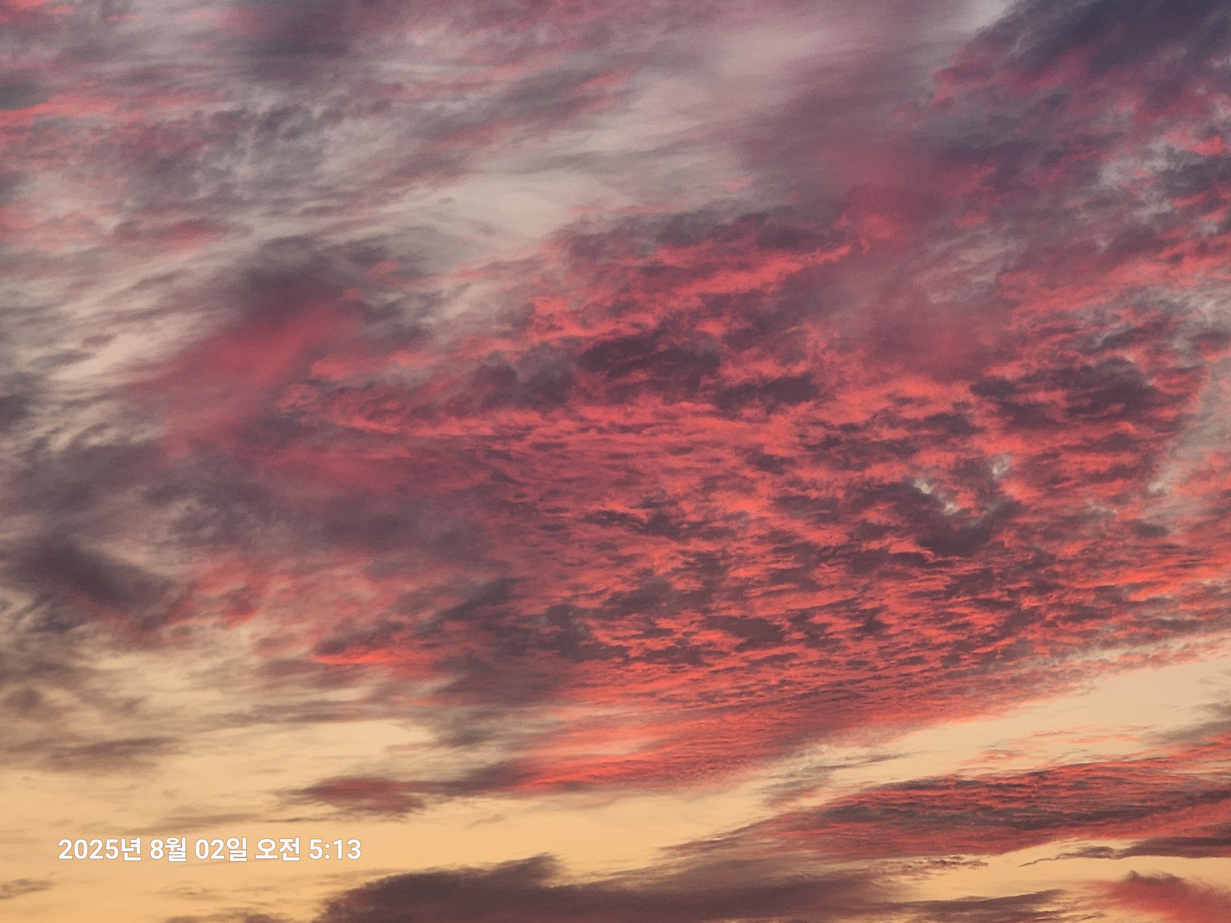 25.7.30 까지 8일연속 수평선일출을 보이더니 지난 2일간 구름의 방해를 받아 주춤했었는데, 오늘도 진한 구름이 수평선에 가로놓여있어 희망이 없어 보였지만, 의외로 진한 구름속에서 핏기없는 희미한 수평선 일출을 보인다.