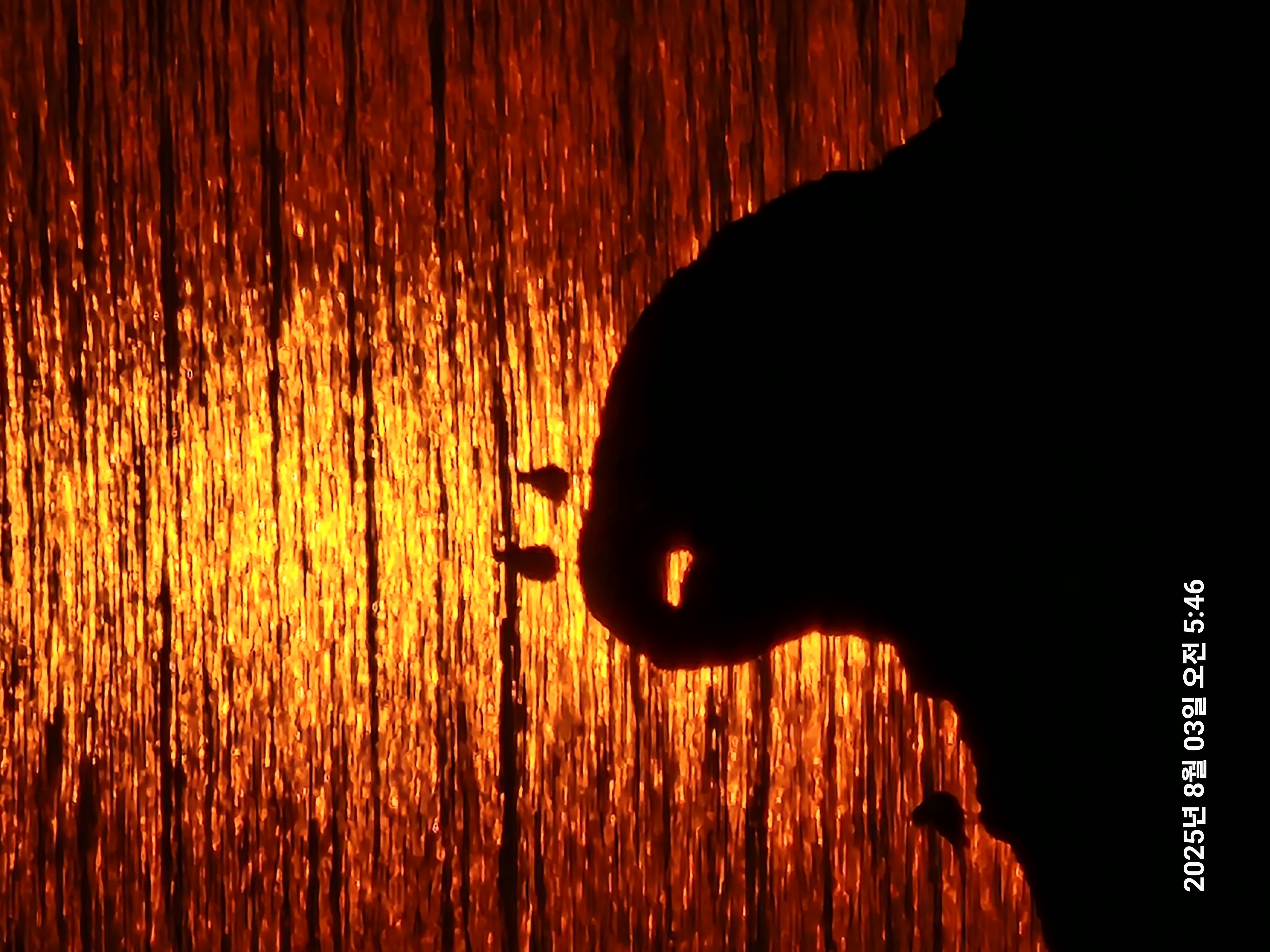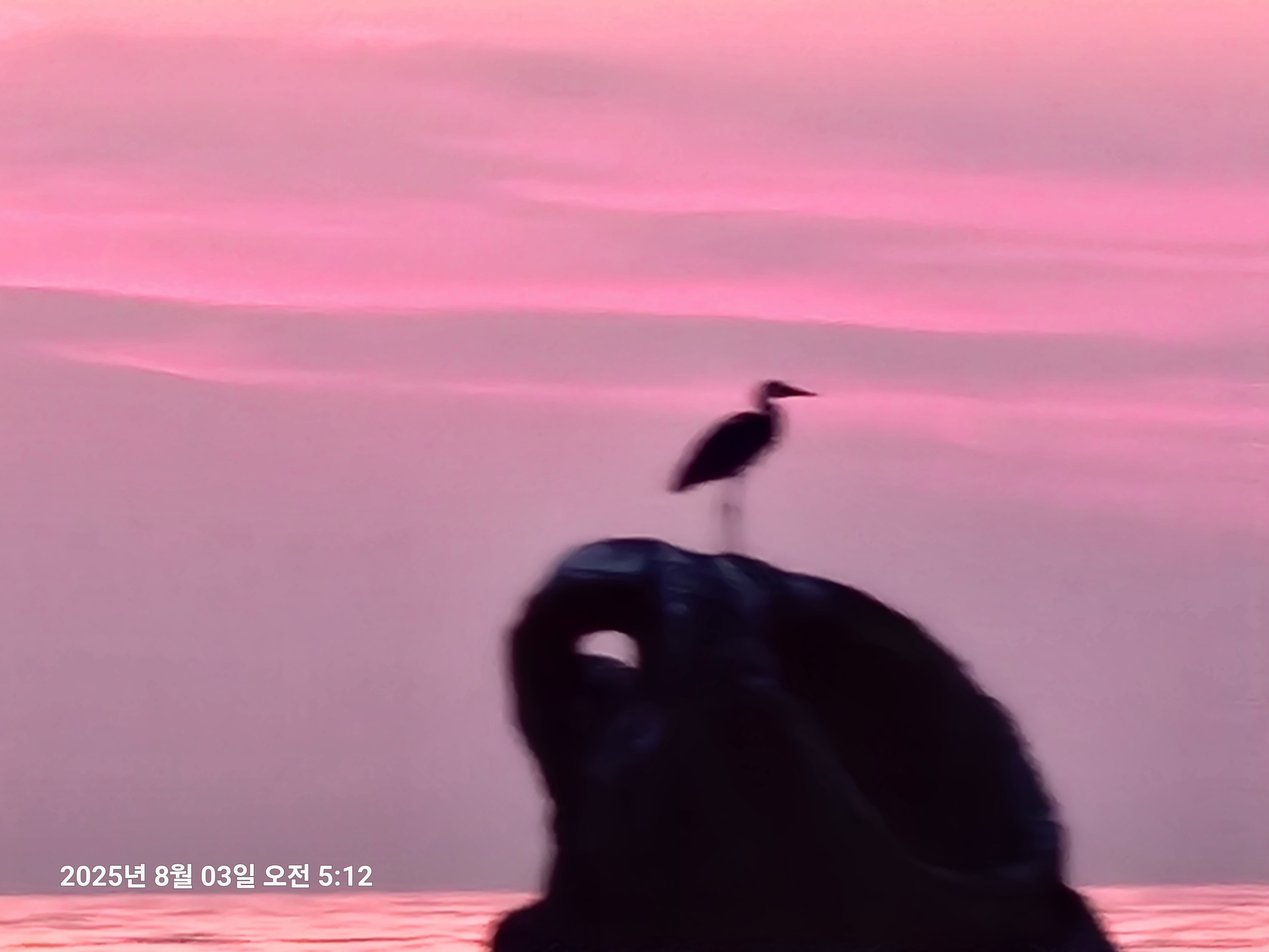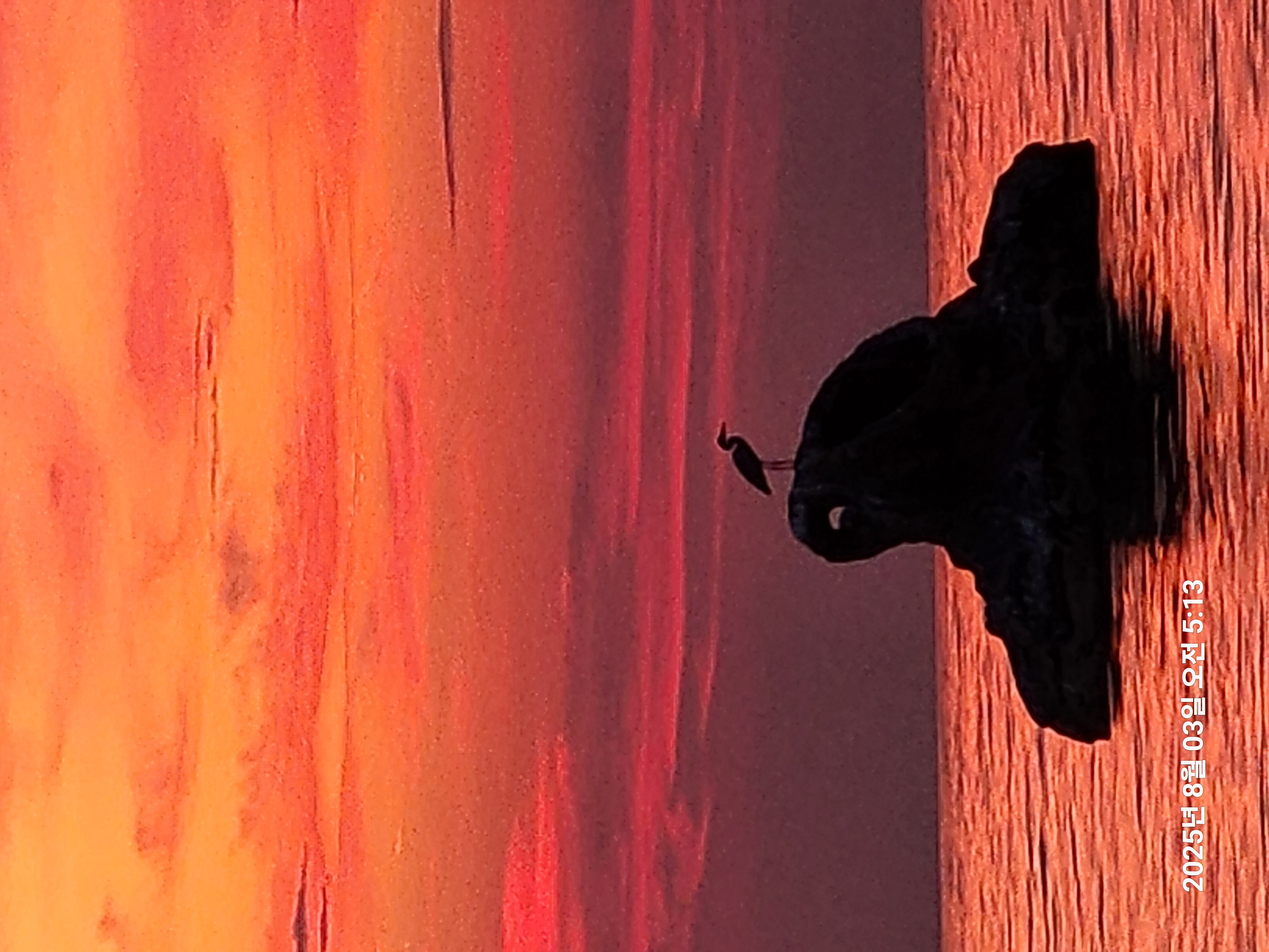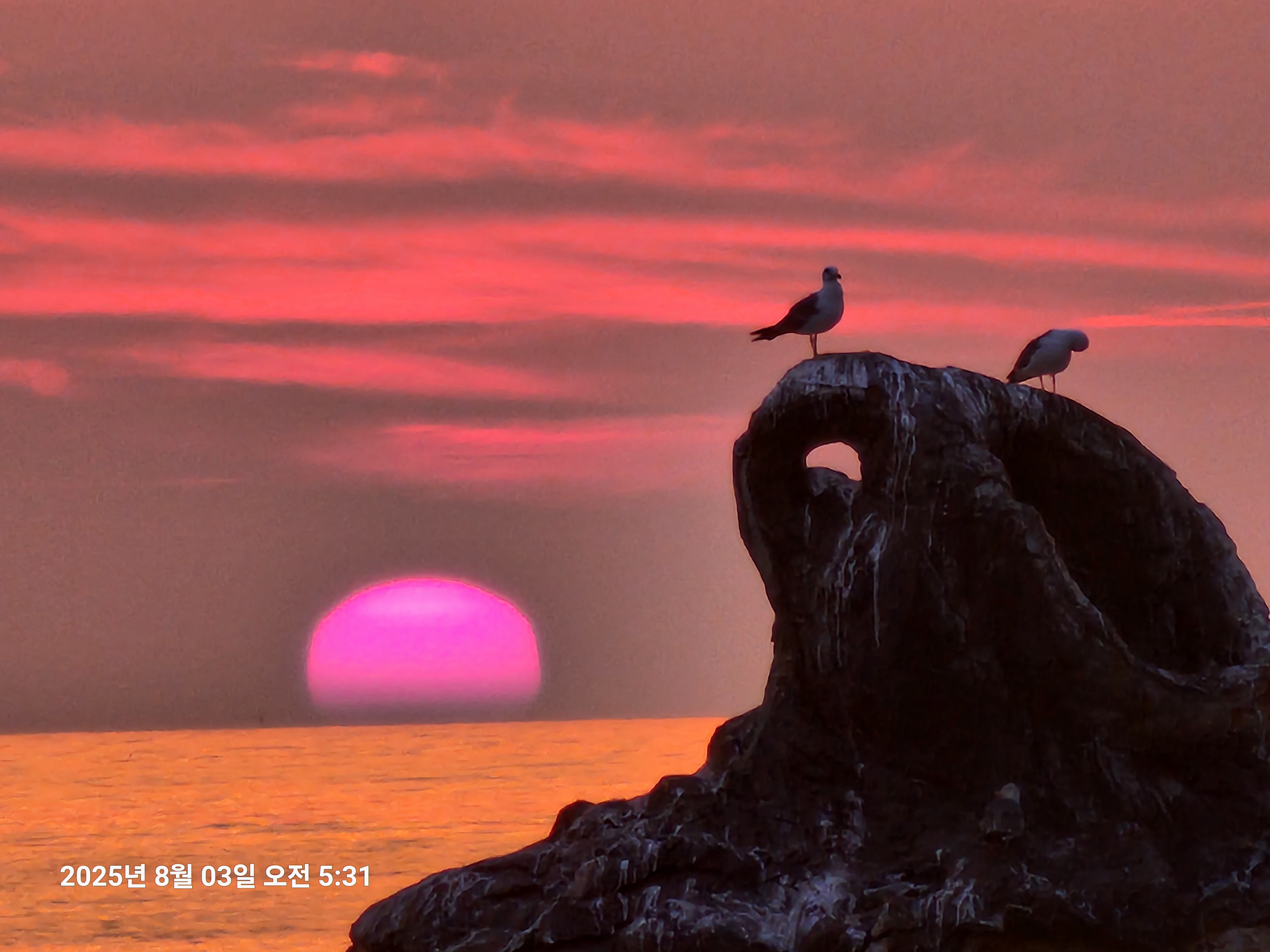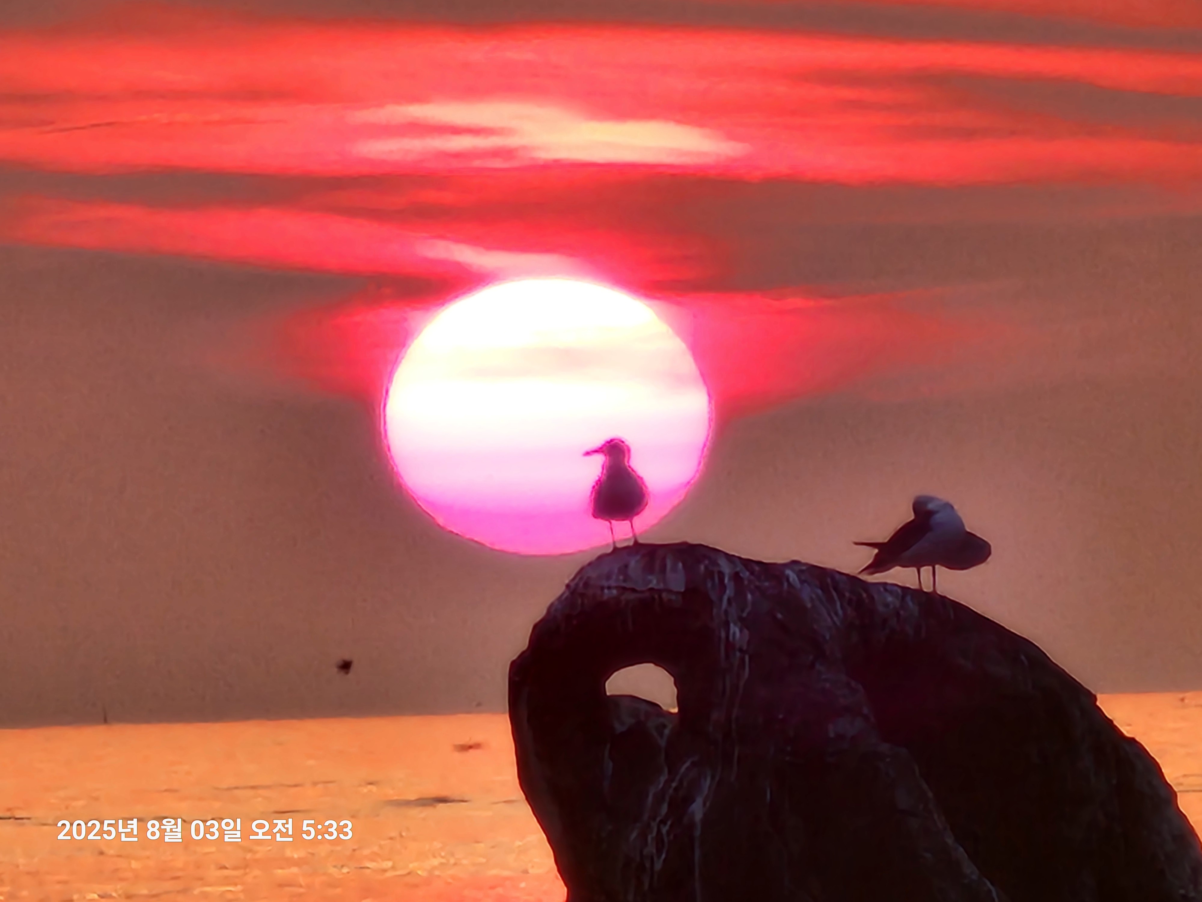 많이 끼어 수평선일출을 기대하지 않았는데도, 8월 첫주말, 피서객이 많이 온것을 감안해서인가 수평선에서 살며시 모습보이는 강릉해!
