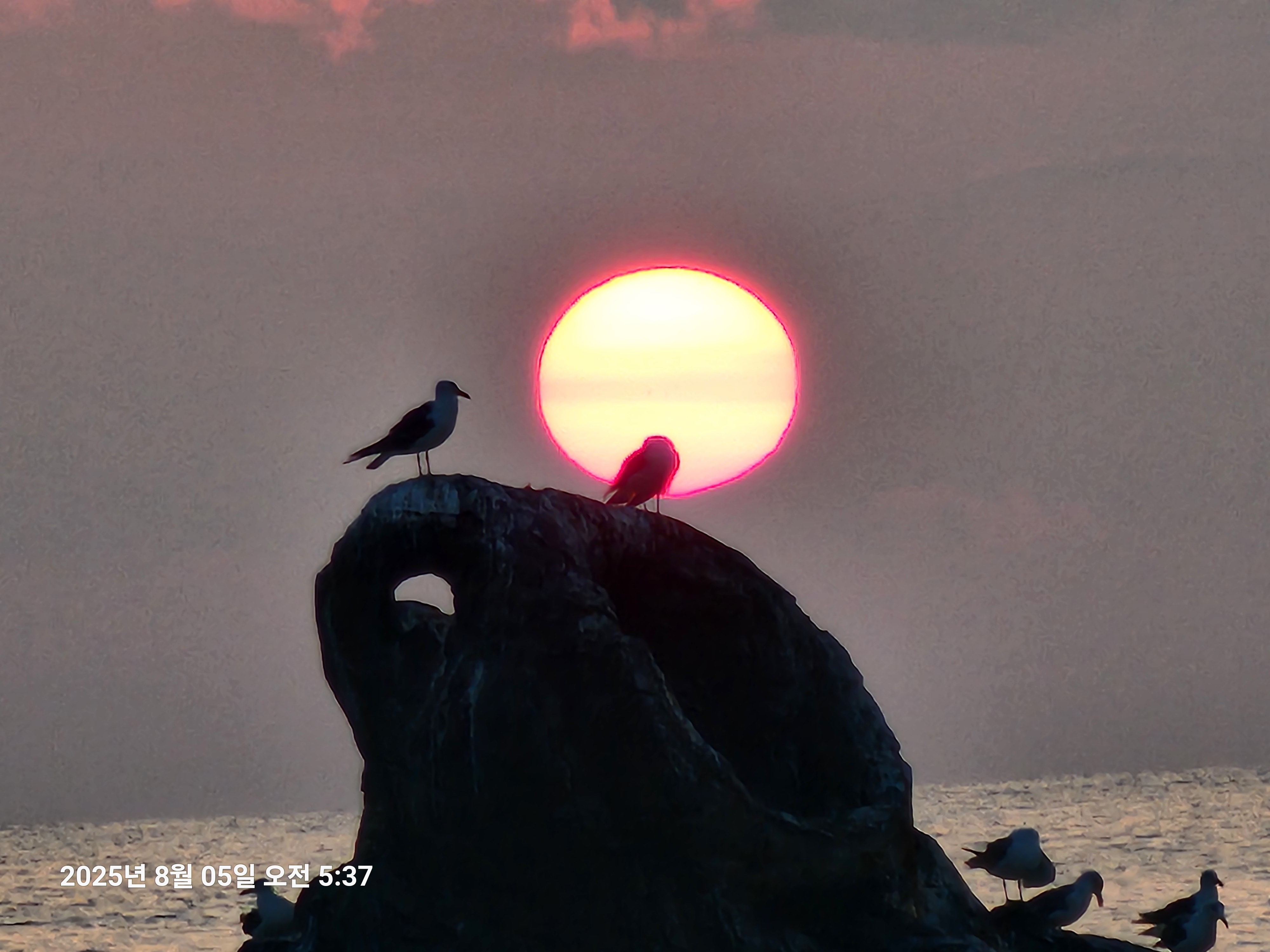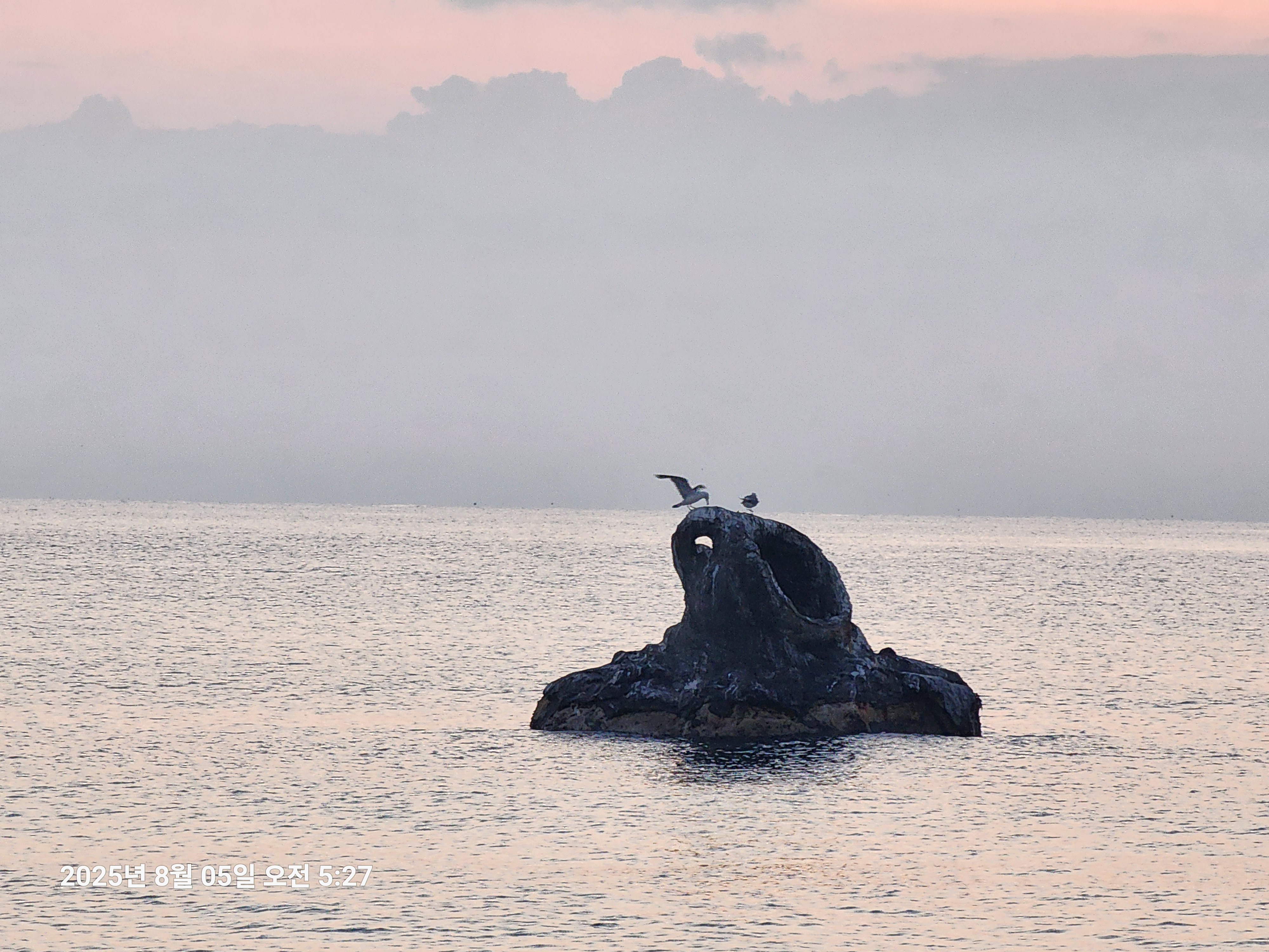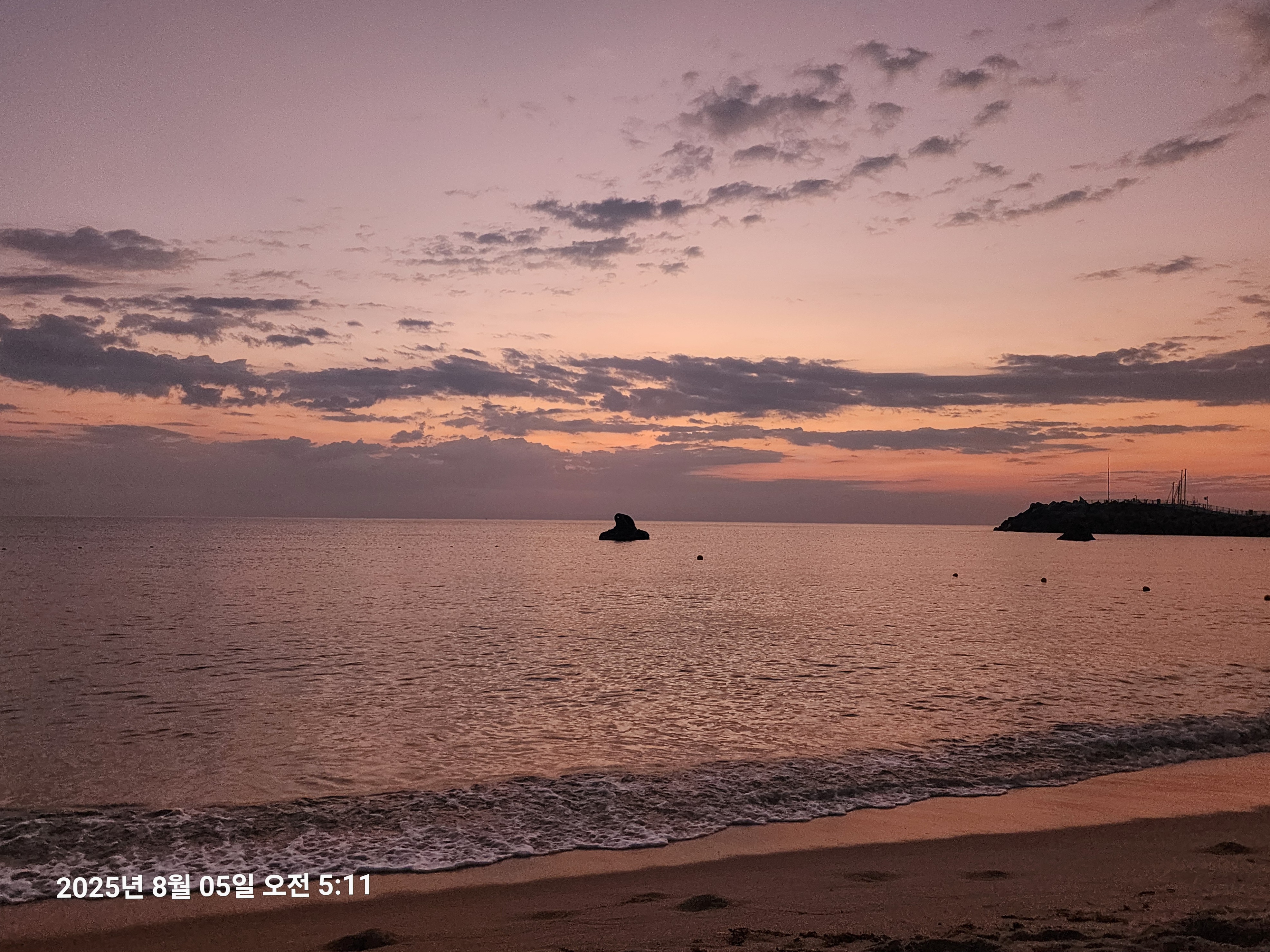 수평선 일출을 기대하며 바닷가에 도착해 보니 수평선 위에 구름이 가득하여 일출보기를 포기하고도