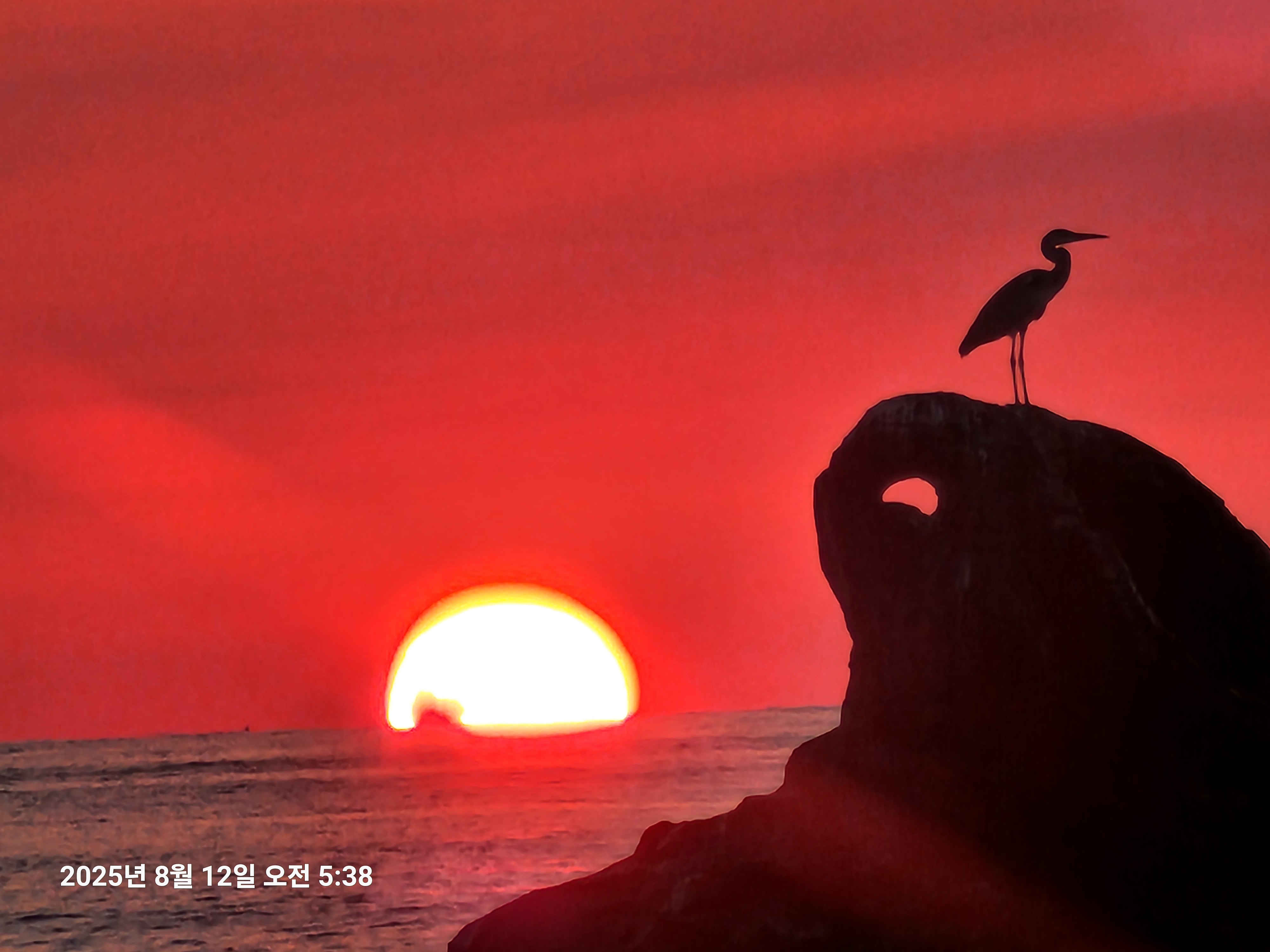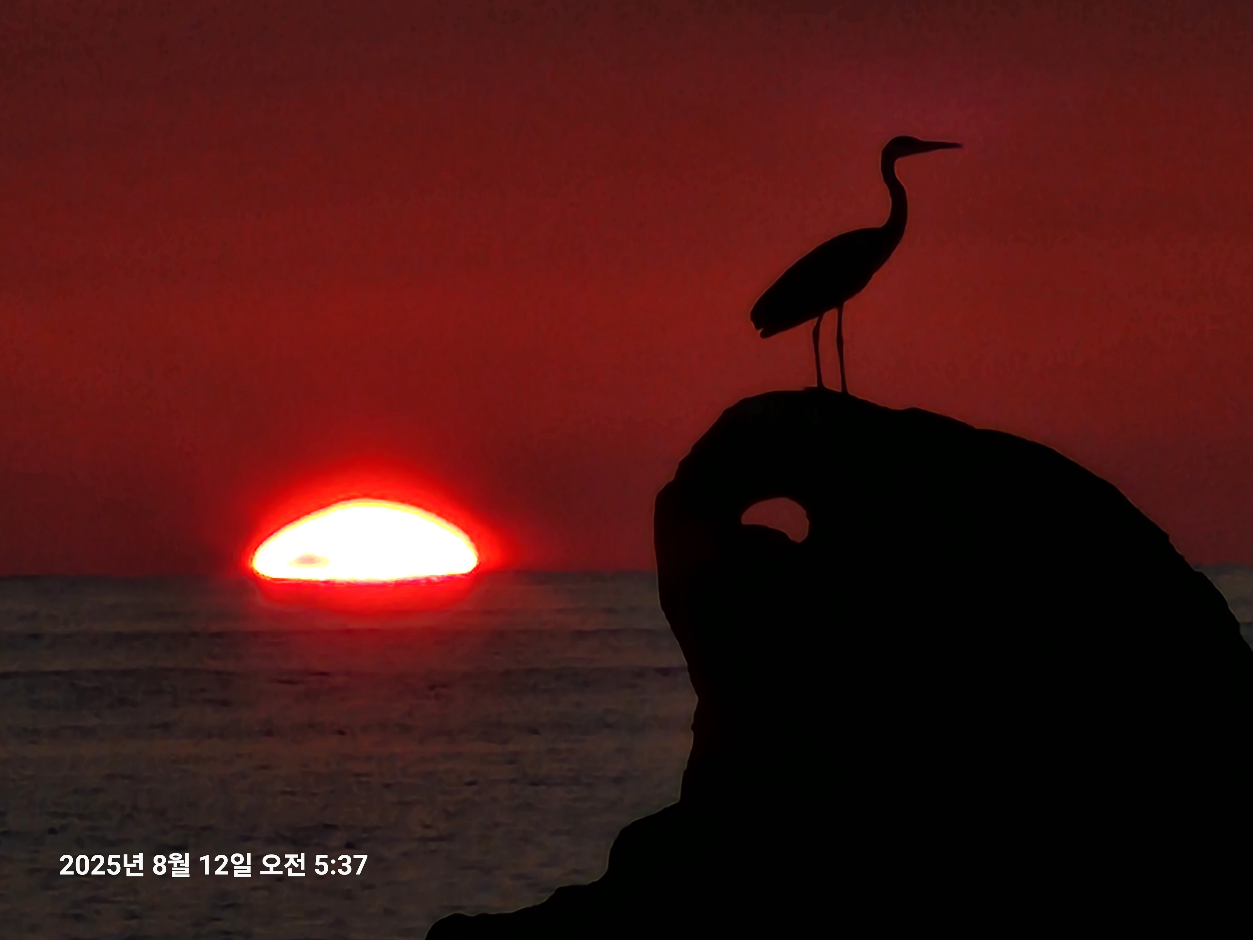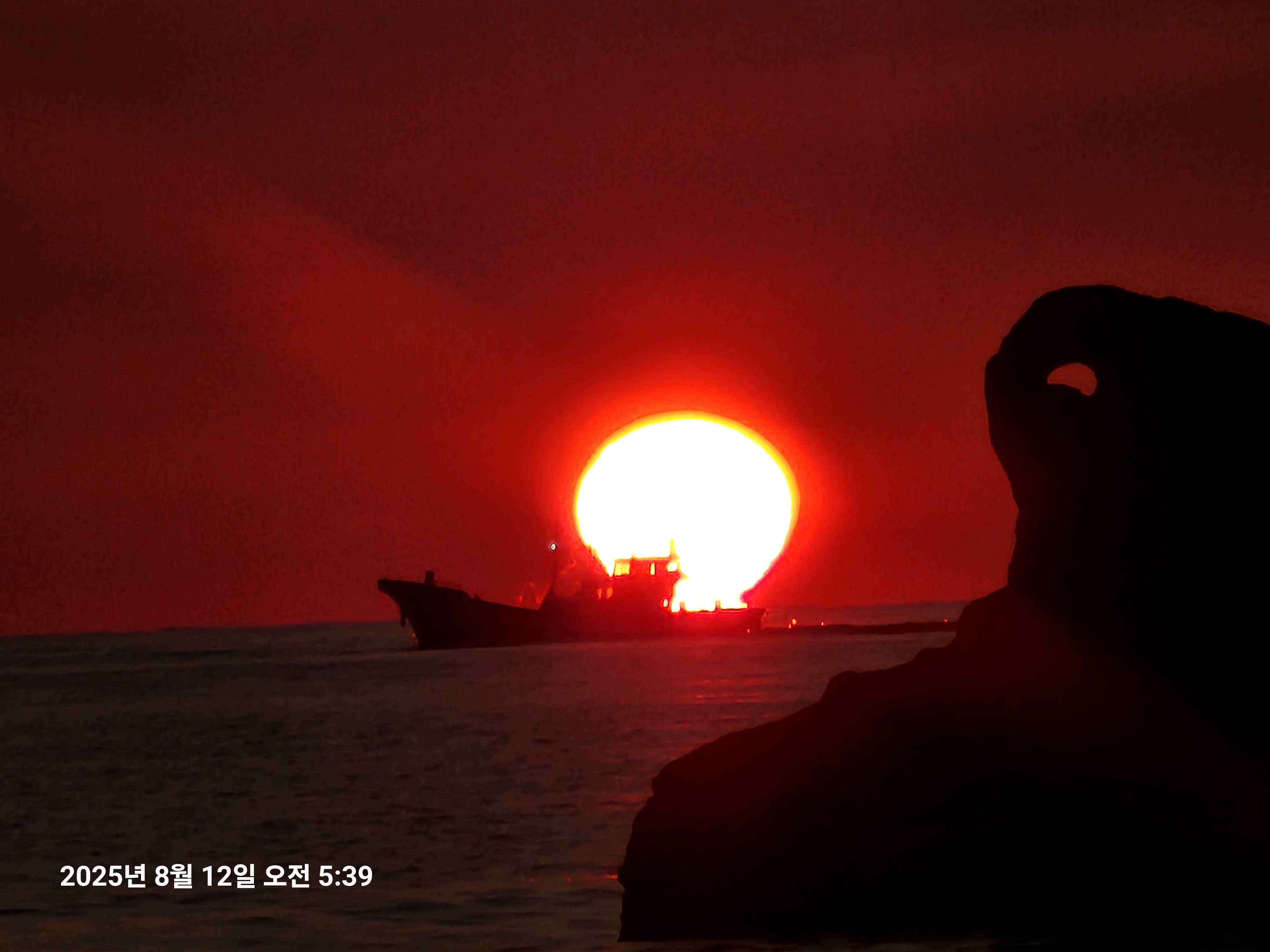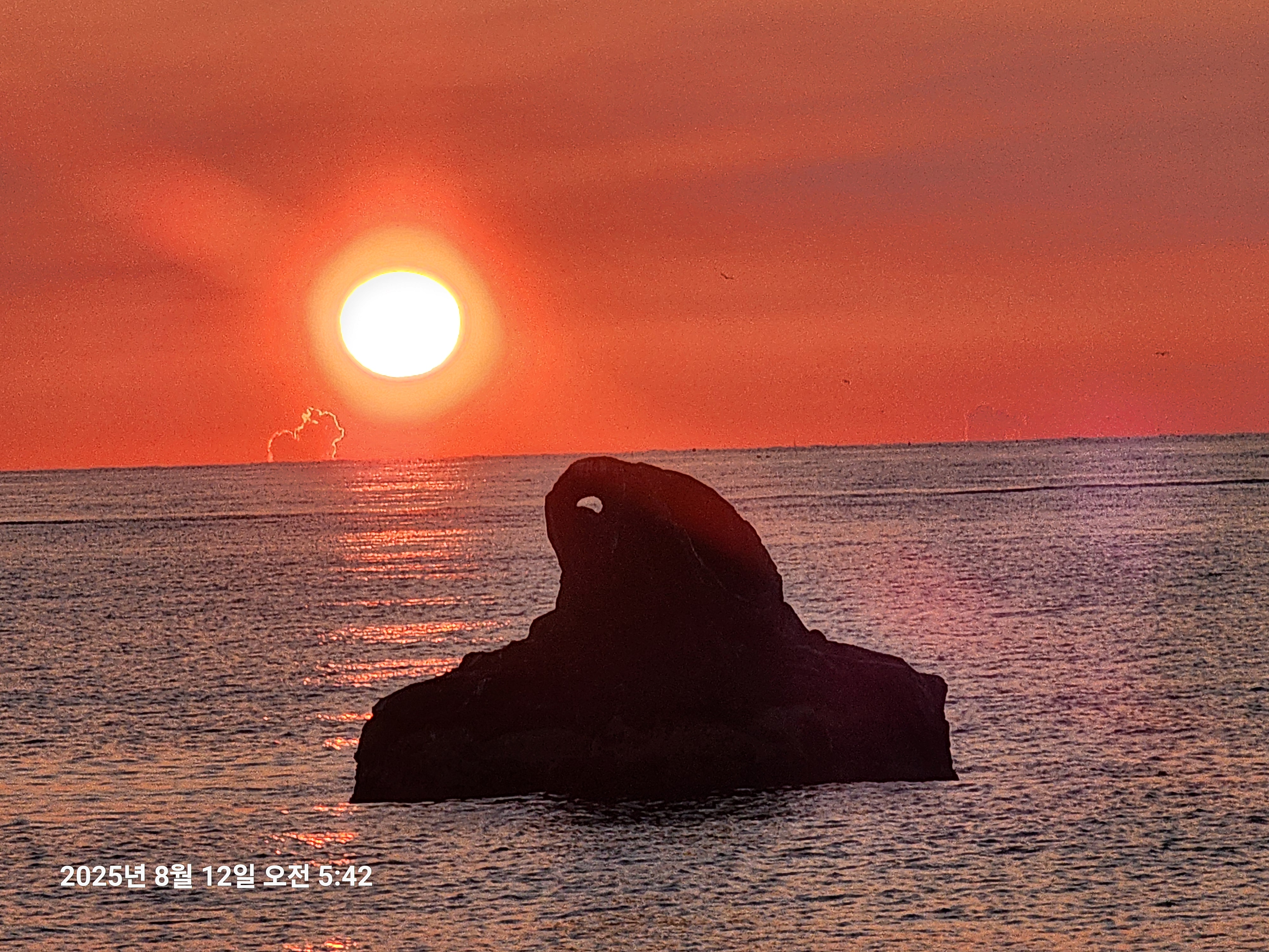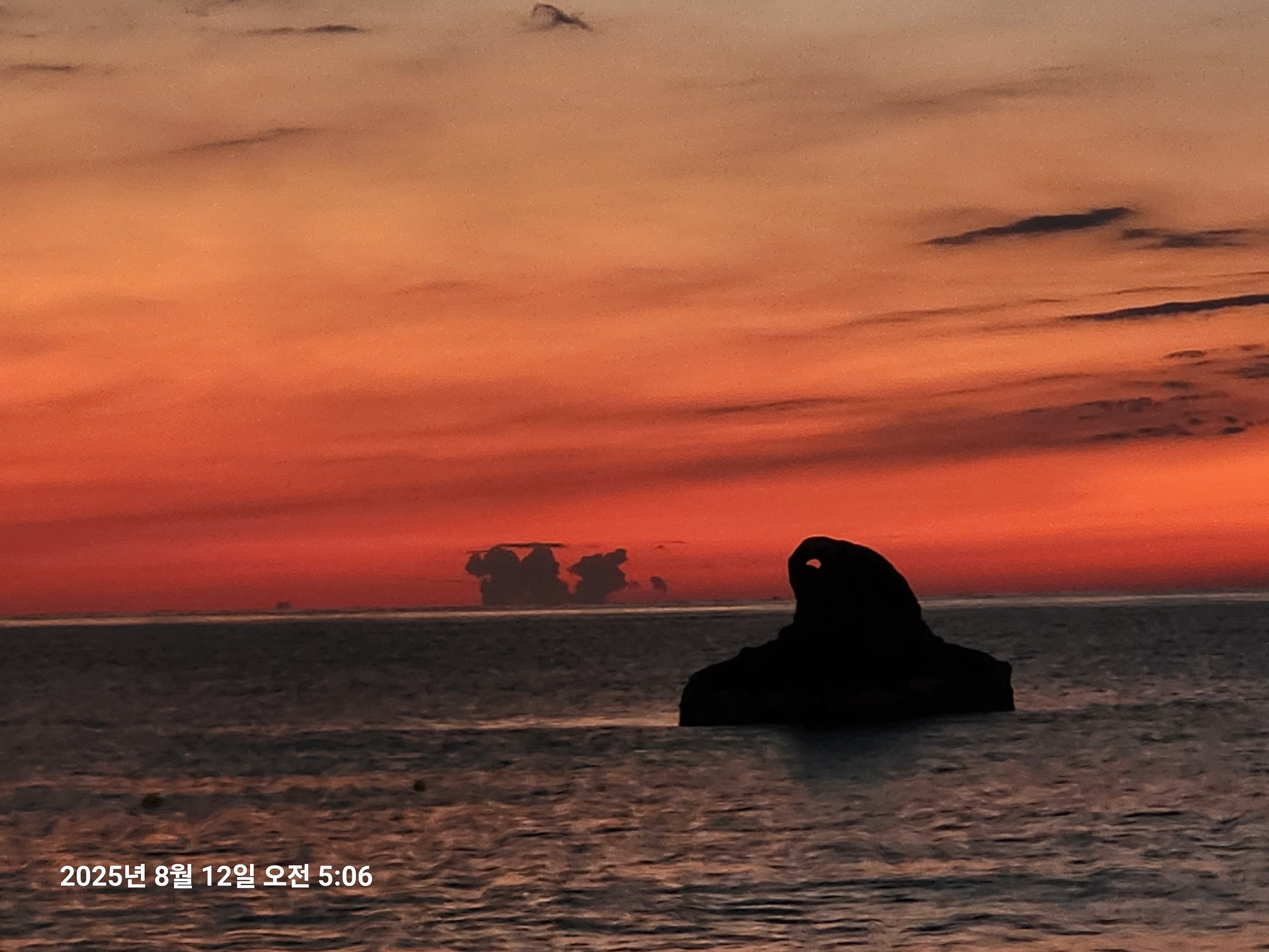 함께 일출을 기다리는데 밝았던 수평선주위가 일출시각이 가까워지자 약간 어두워지기는했으나 수평선