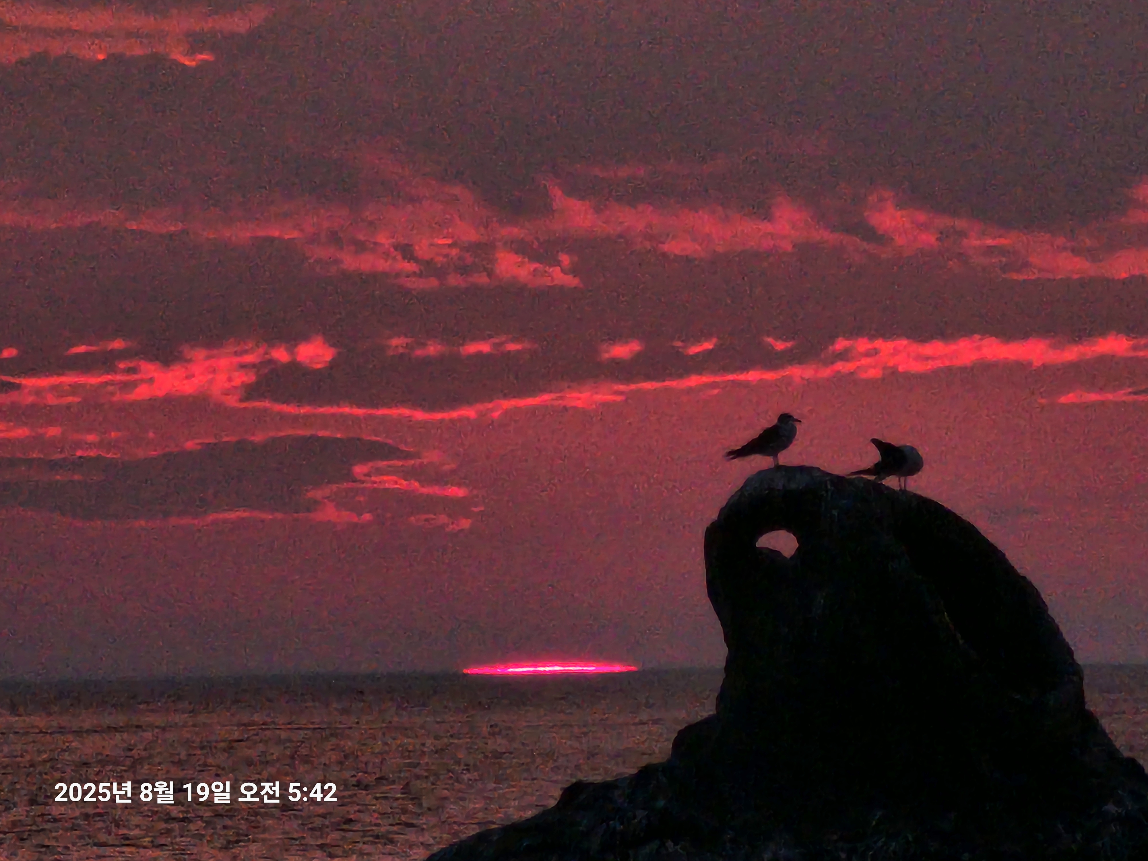비교적 산뜻한 일출이었는데 돌발상황이 일어났다. 스마트폰이 과열되어 카메라 작동이 멈춘것이다.( 노후되어 그런가? )