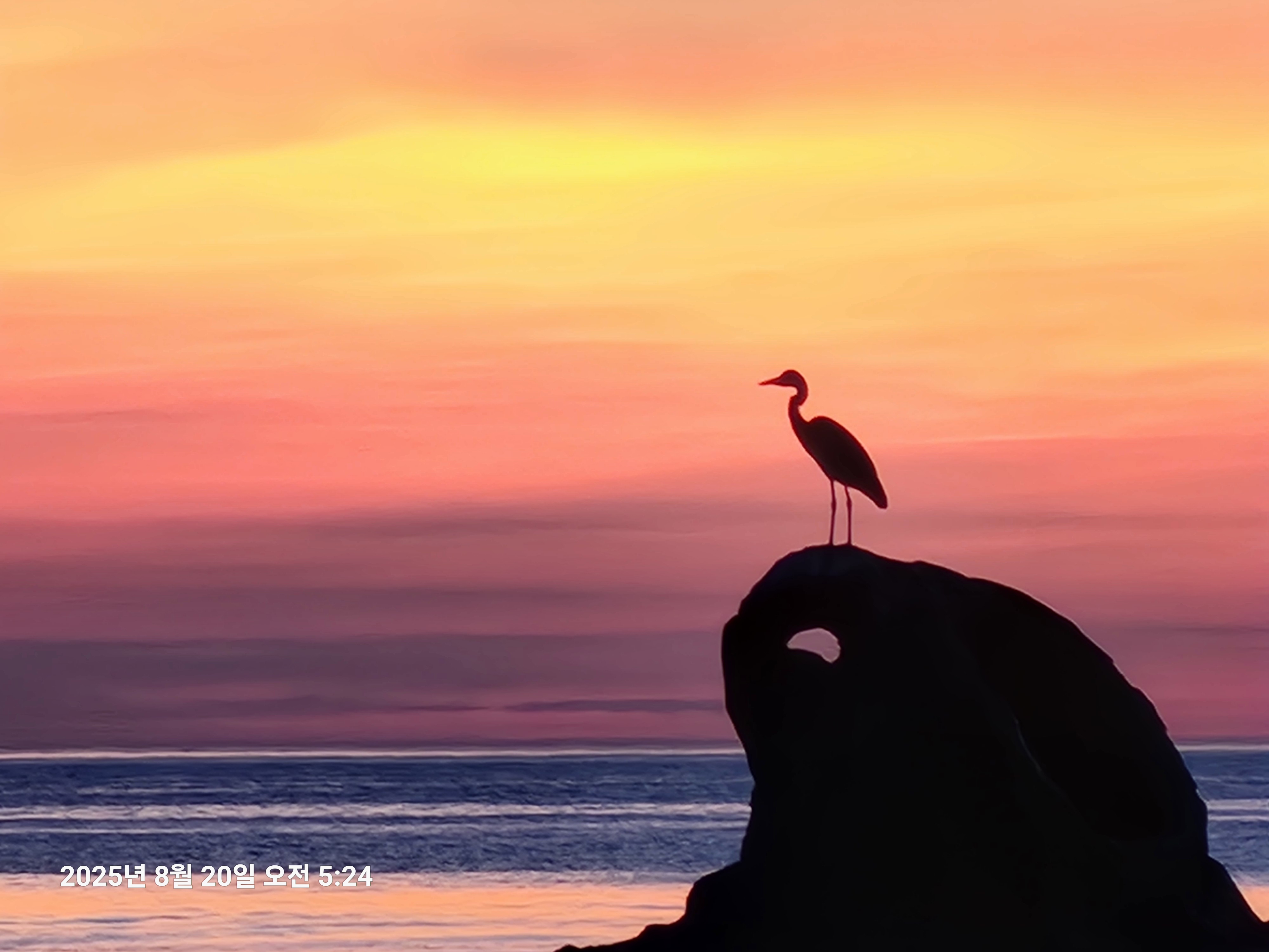구름이 별로없으니 멋진 노을을 볼수가 없고, 일찍 출근한 왜가리 모델이 떠난 후 갈매기 모델이 늦게 출근하여 모델없이 수평선 일출을 맞는다.