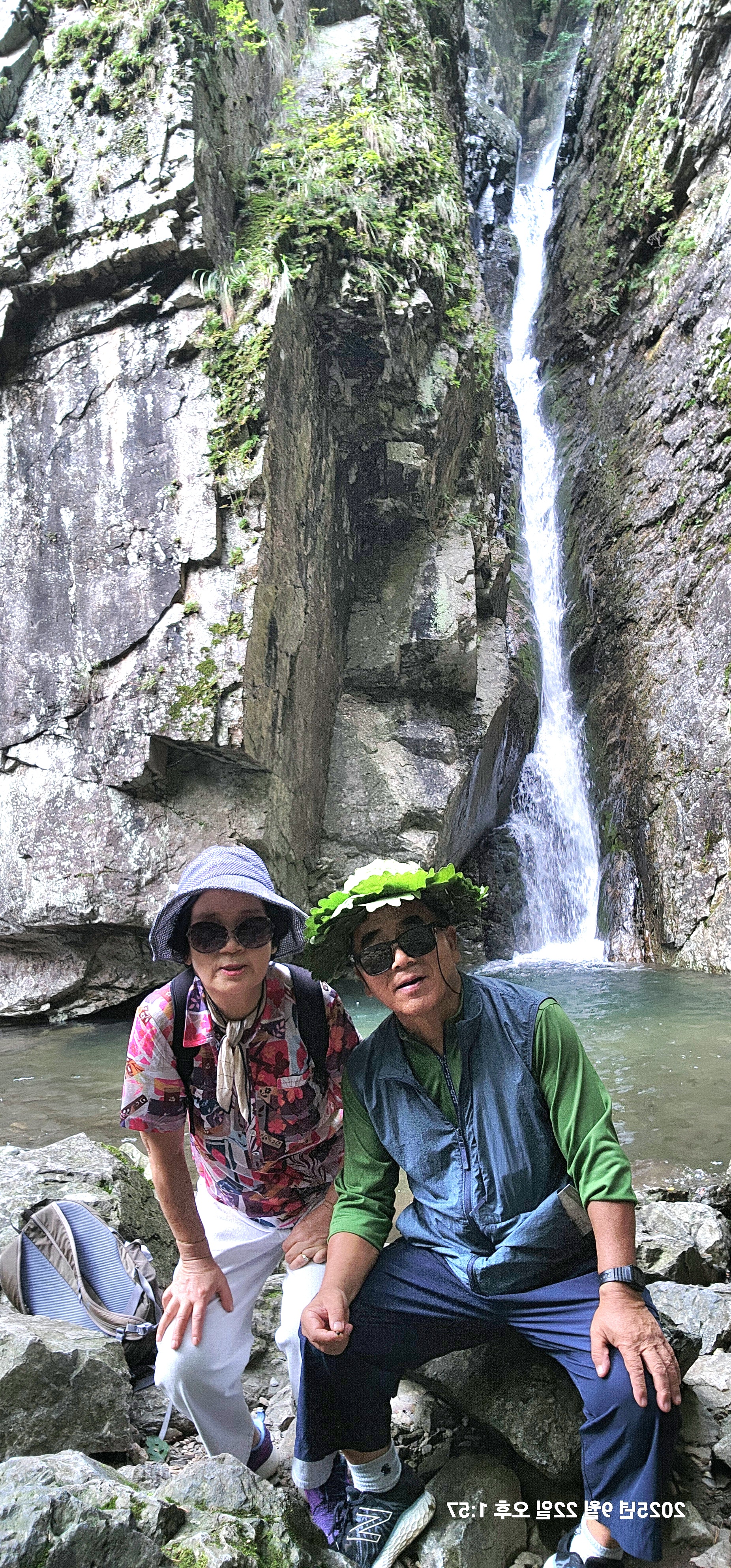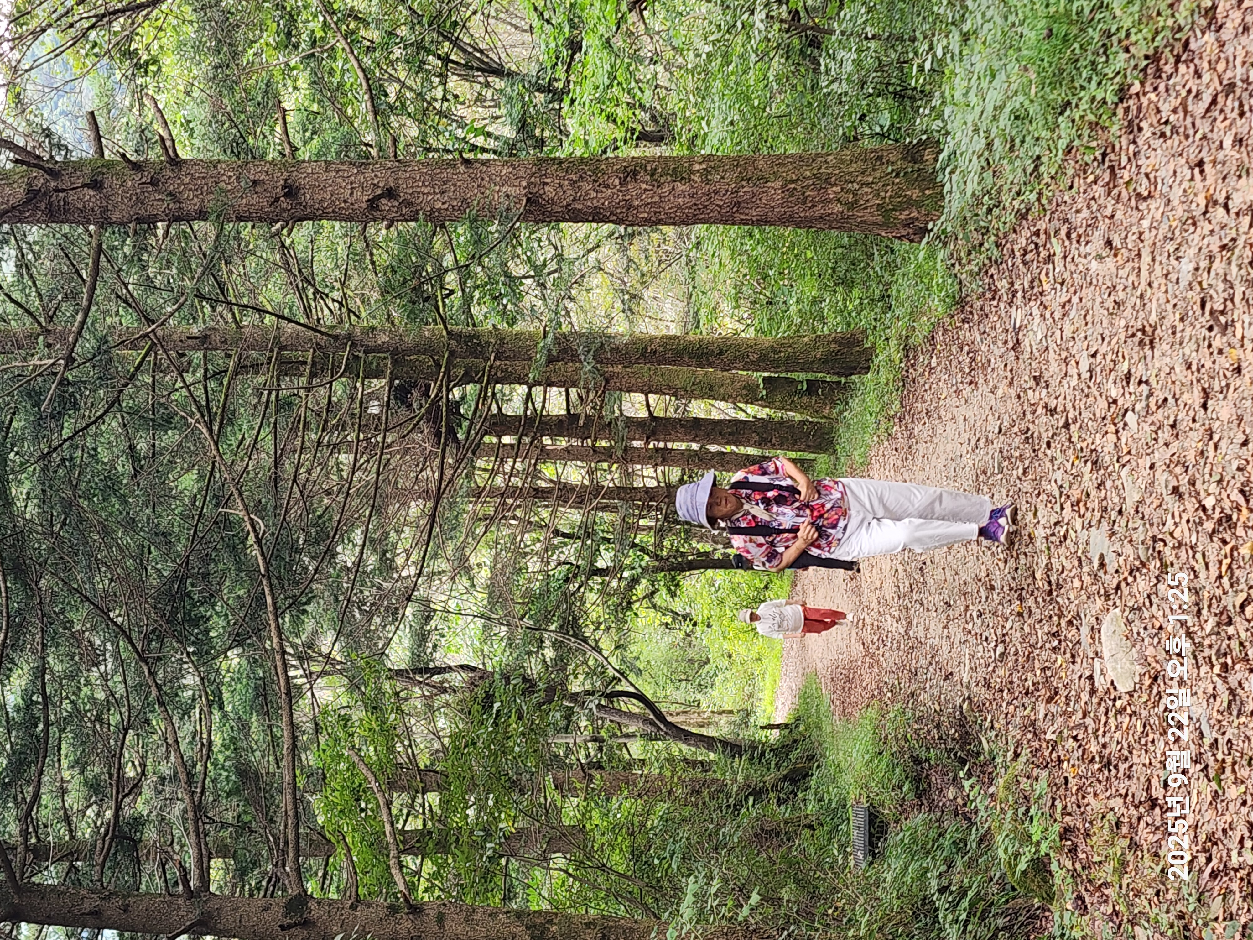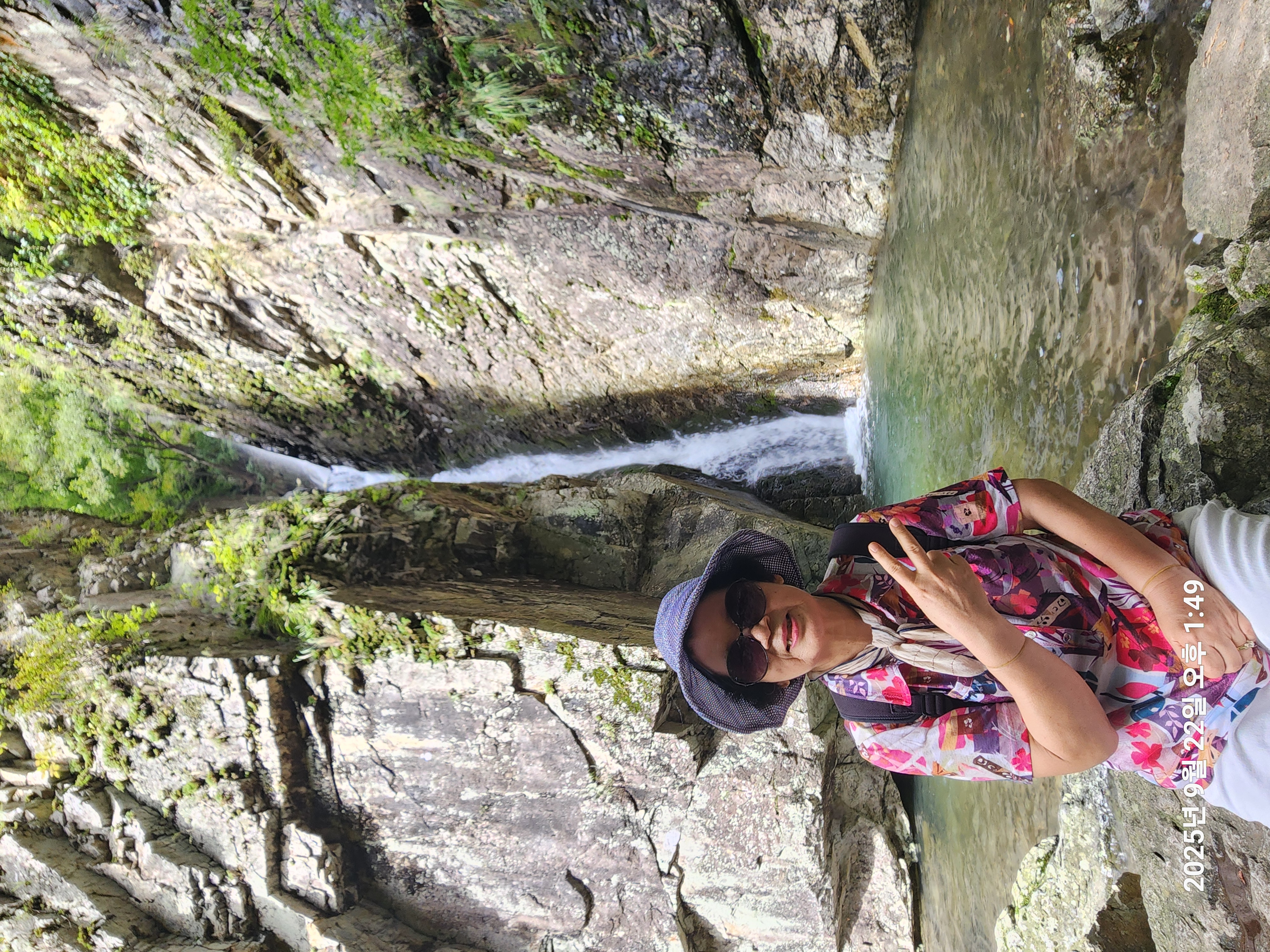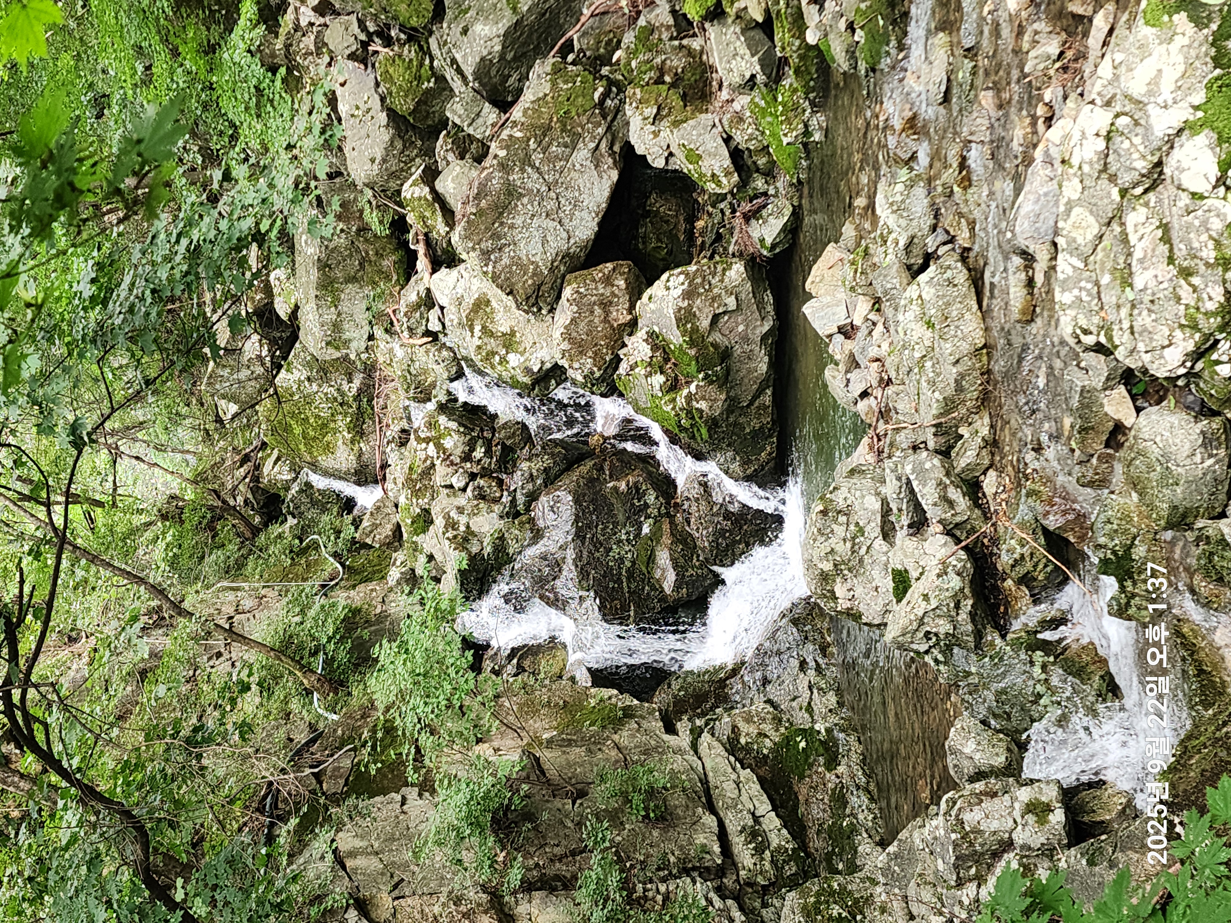 여궁폭포, 800m 거리에 있다고 만만히 보고 갔는데 처음엔 길이 평지였으나 500m 쯤가니 경사도 있고 정돈되지 않은 돌길이라 힘들었고 아내는 스틱도 안가져 가서 내려올땐 스틱대용으로 나무막대기를 주워,그걸 의지하고 왔는데, 거의다 내려와 한손에 커피(?)음료를 들고 여궁폭포까지 가려한다는 여성2명을 만났는데,한여성은 신으나 마나한 샌들을 신었기에 그 신발로는 갈수