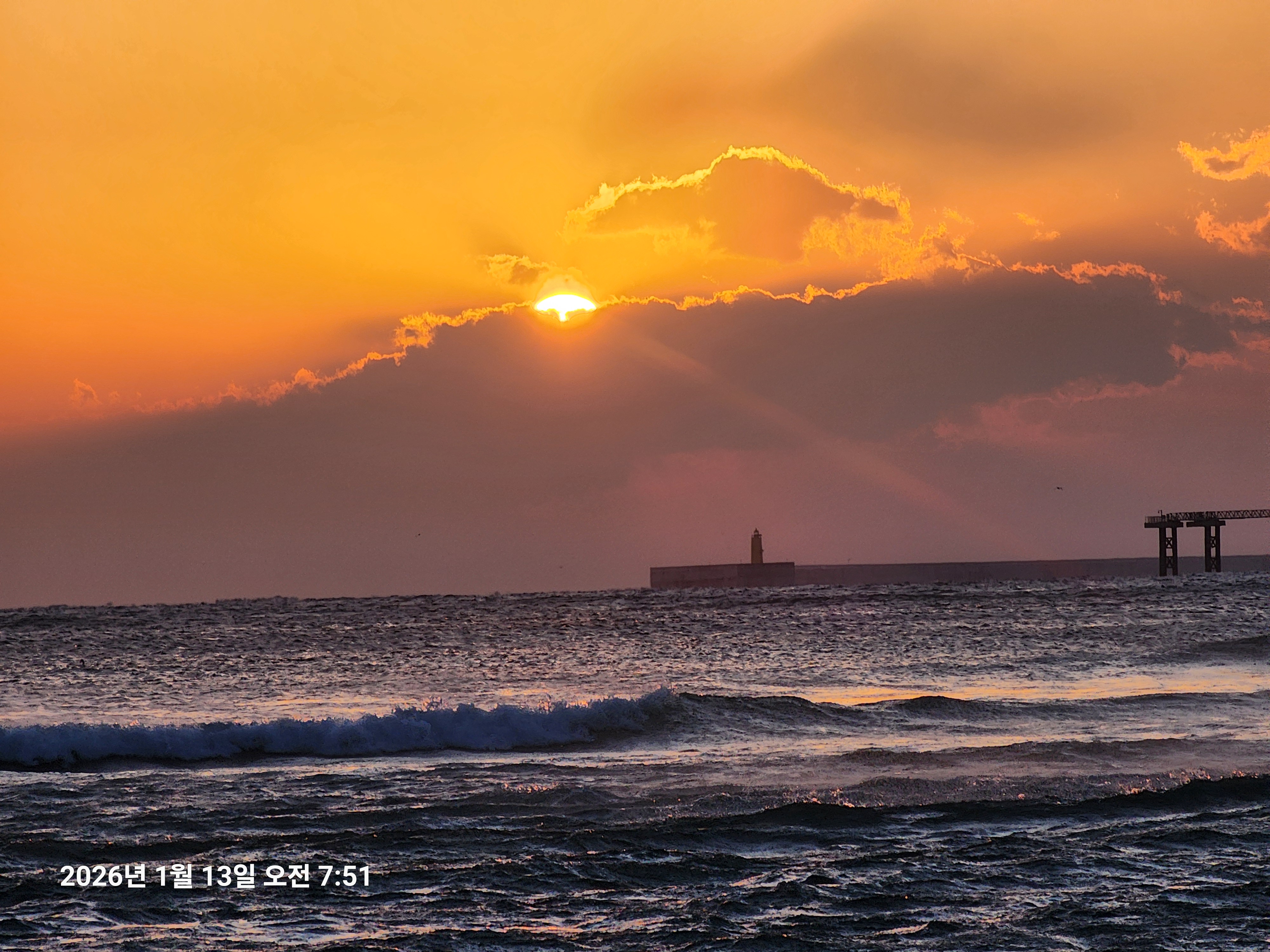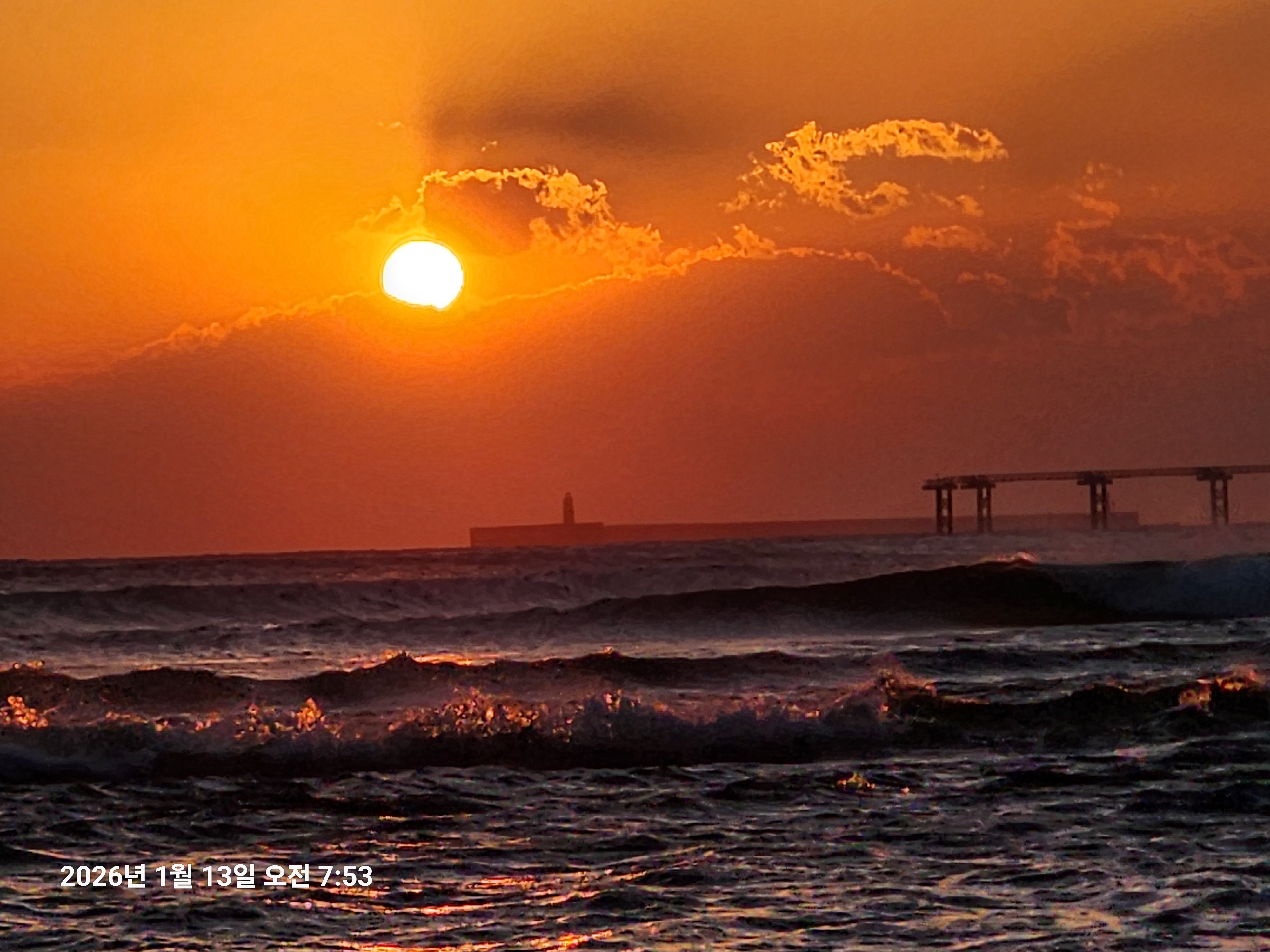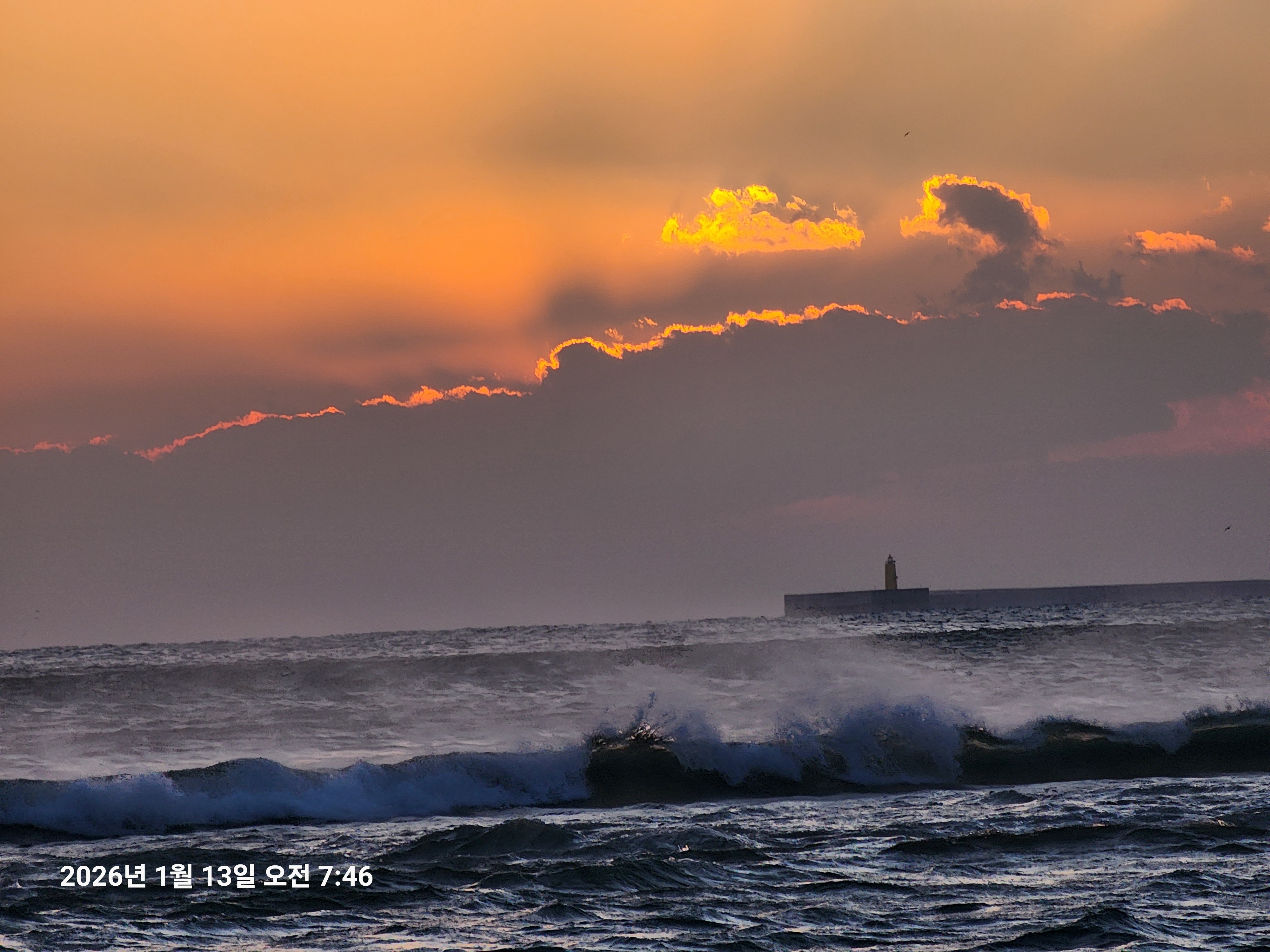 오늘은 해와,구름과,파도 3요소가 활약을 한 아침"쇼' 다.