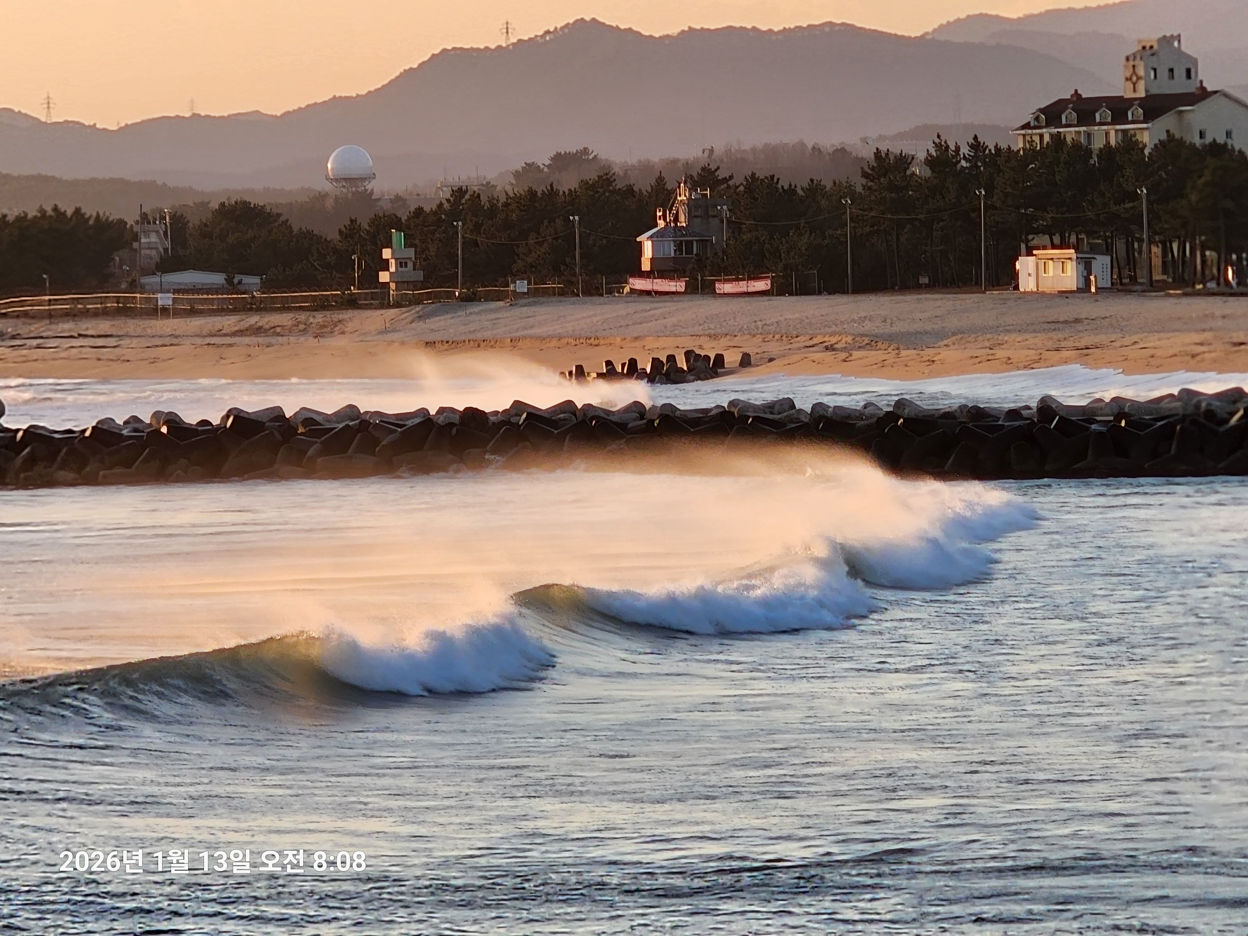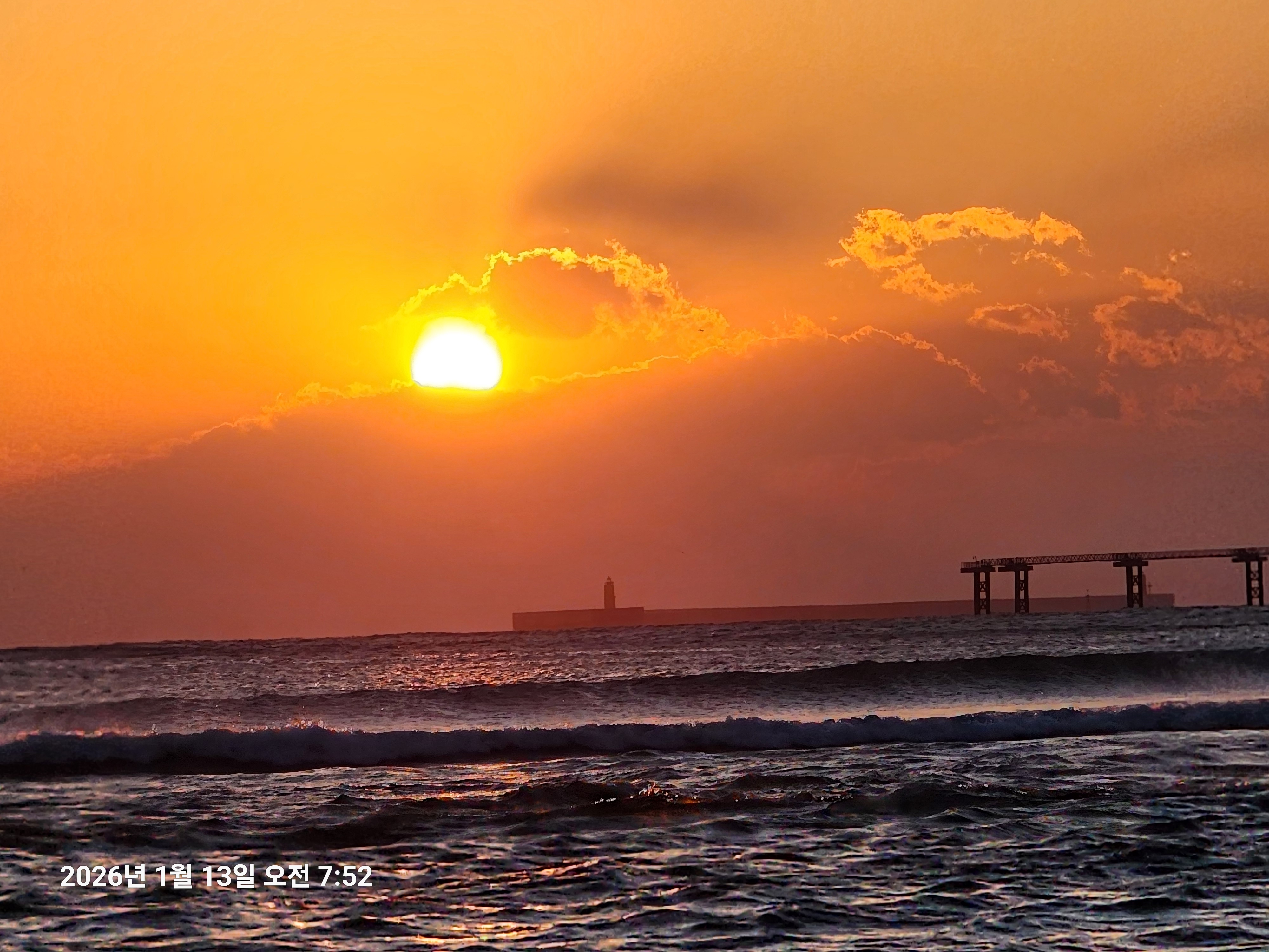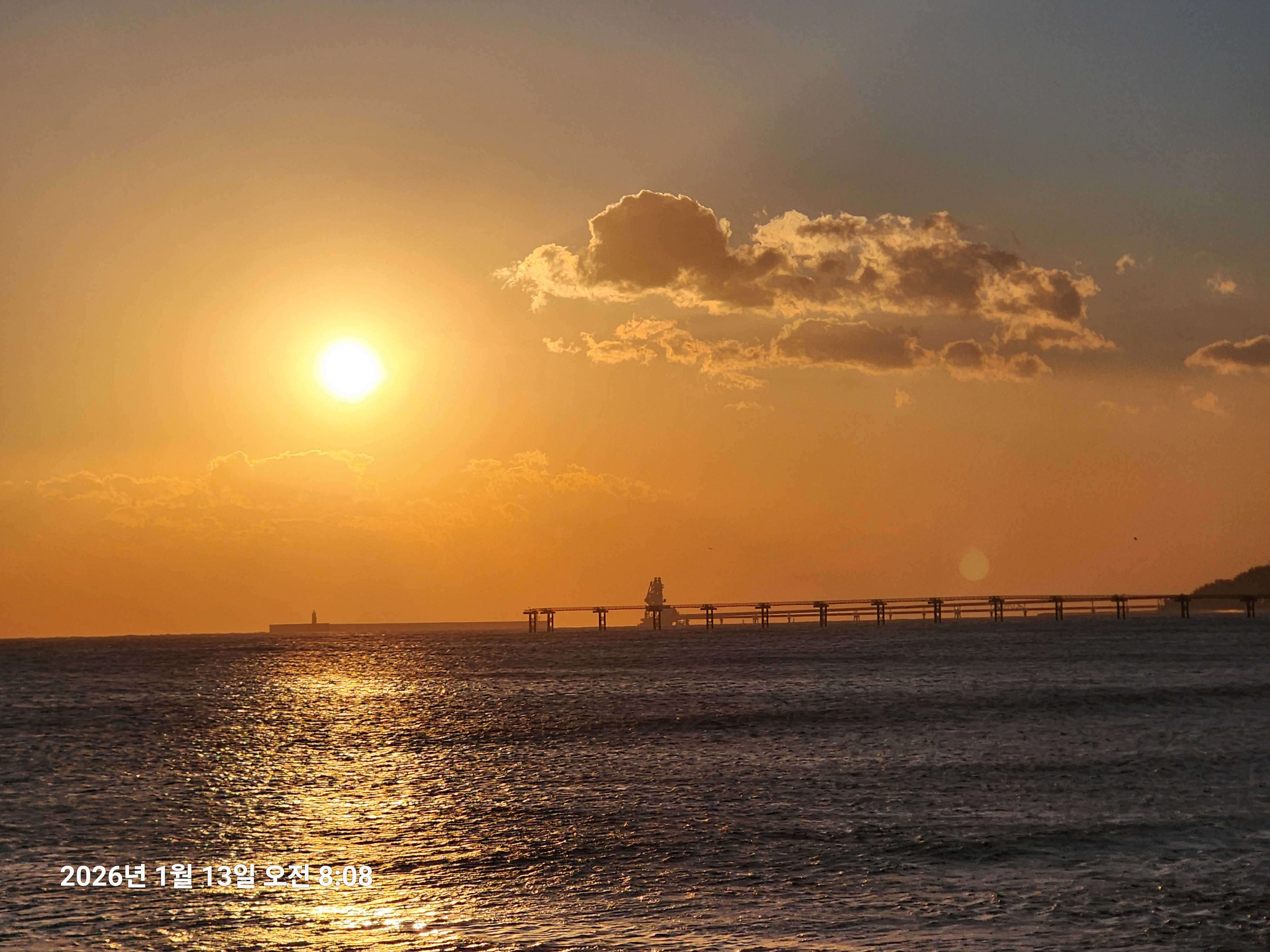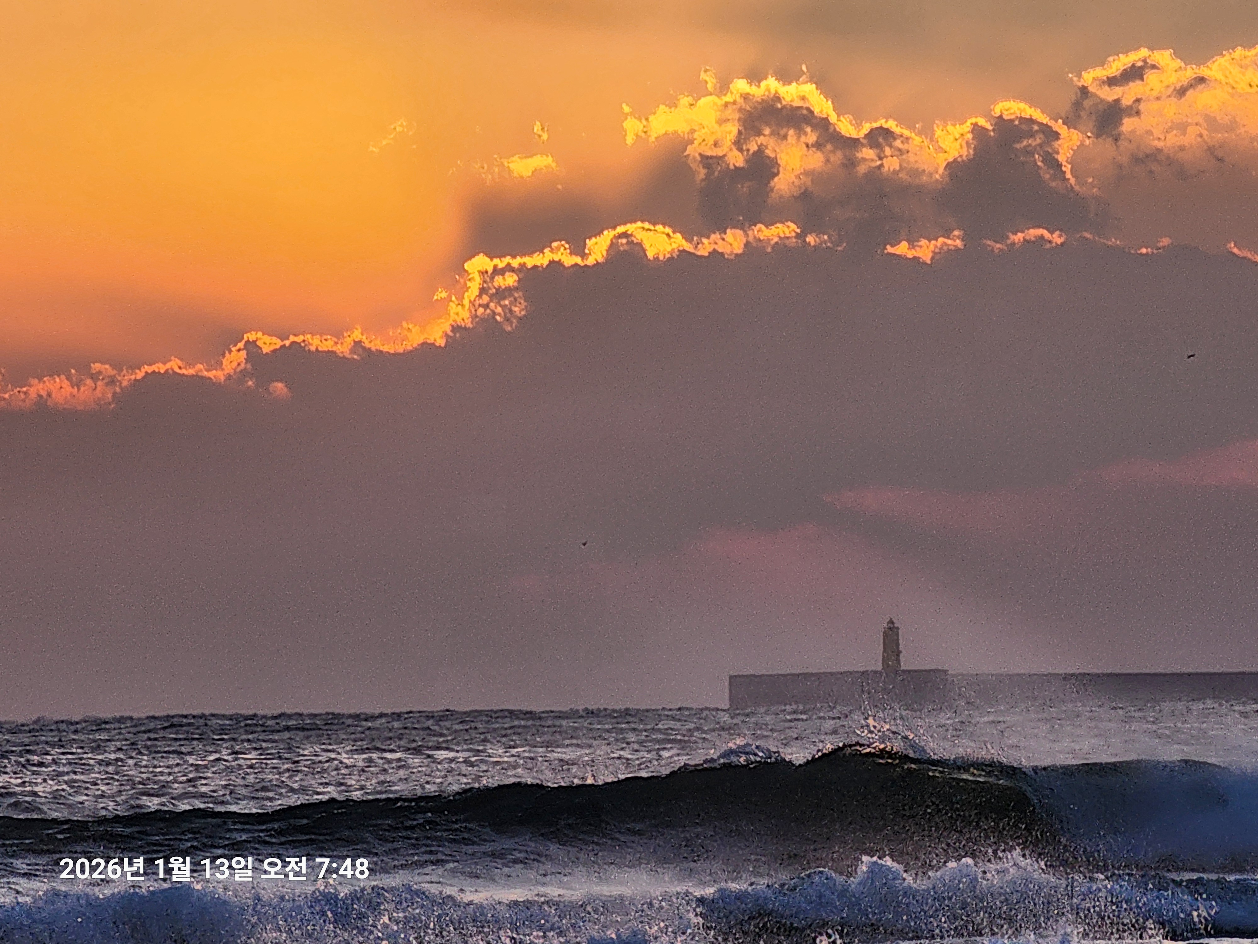 오늘은 해와,구름과,파도 3요소가 활약을 한 아침"쇼' 다.