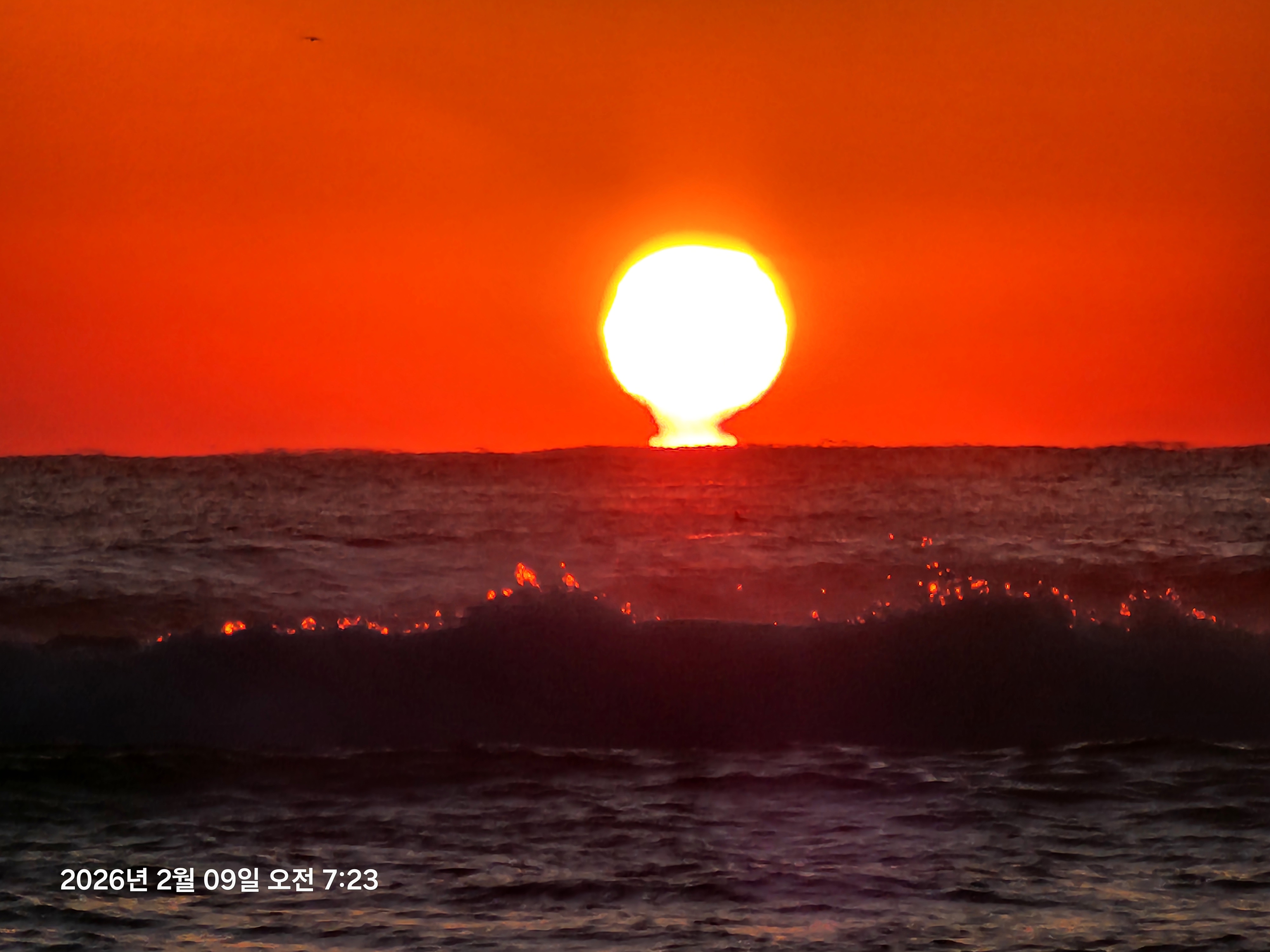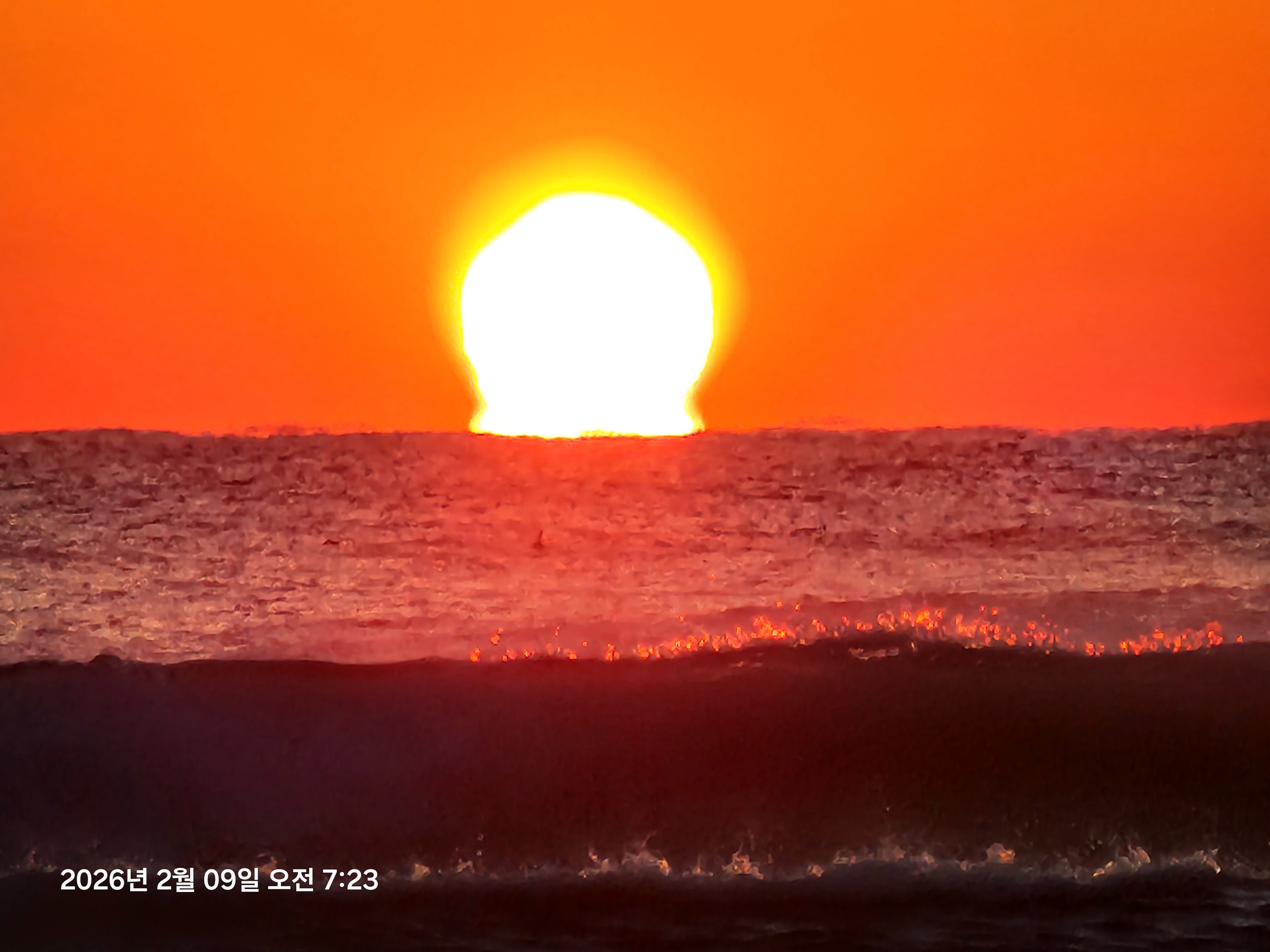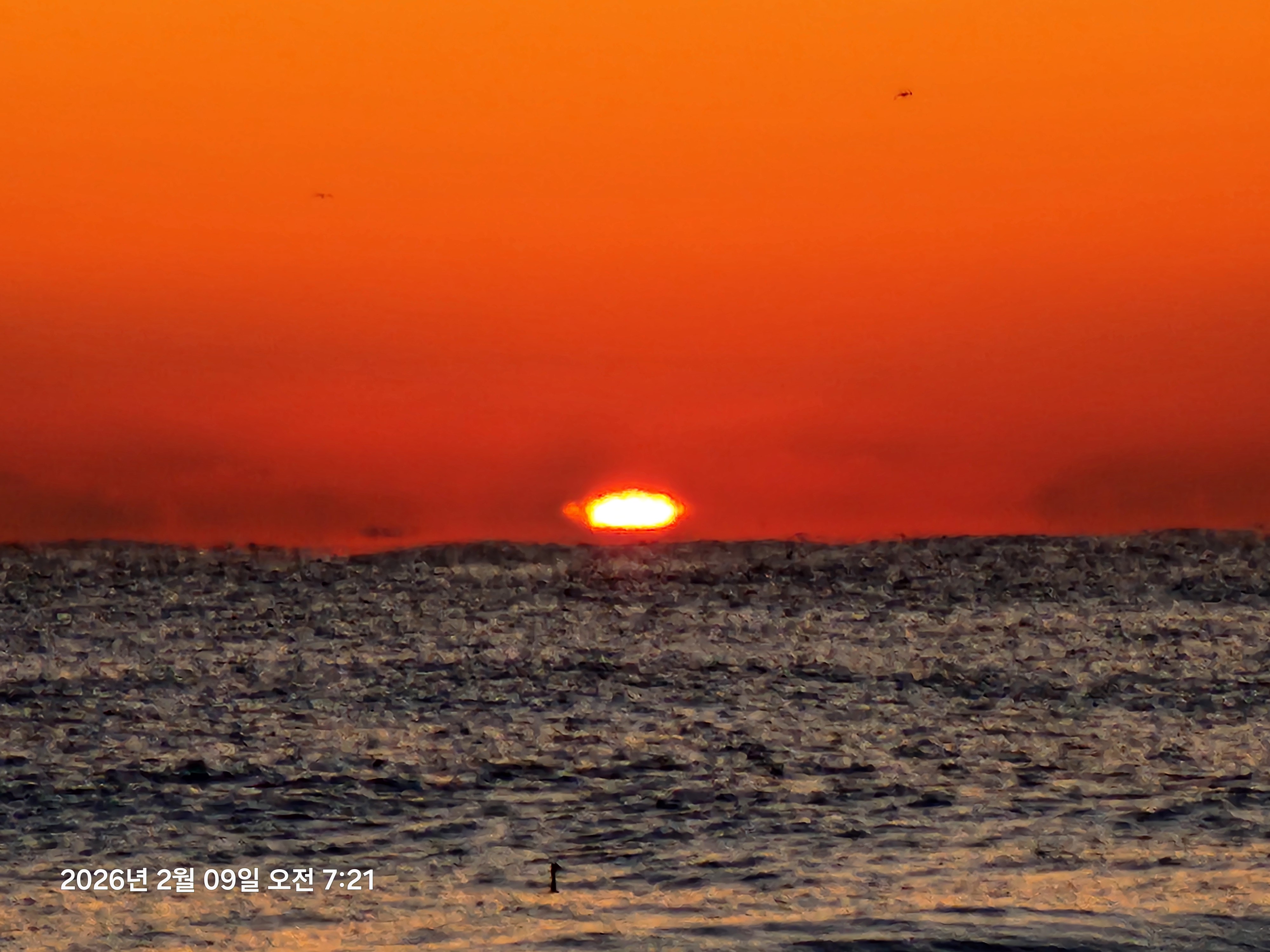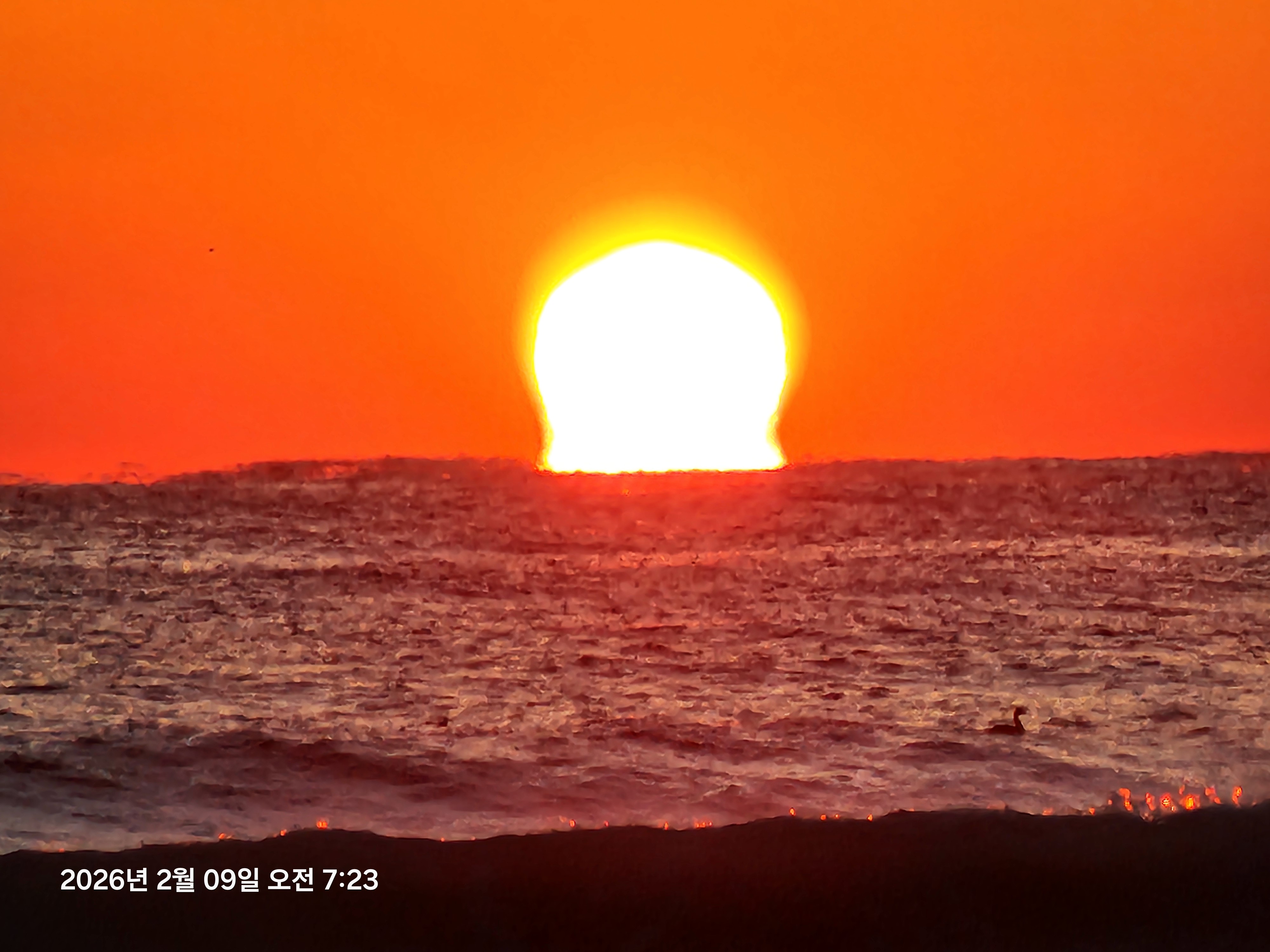 수평선 일출을 보여준다. 이달들어 3번째, 금년 통산 7번째 수평선 일출인데 모두 오메가일출이다.