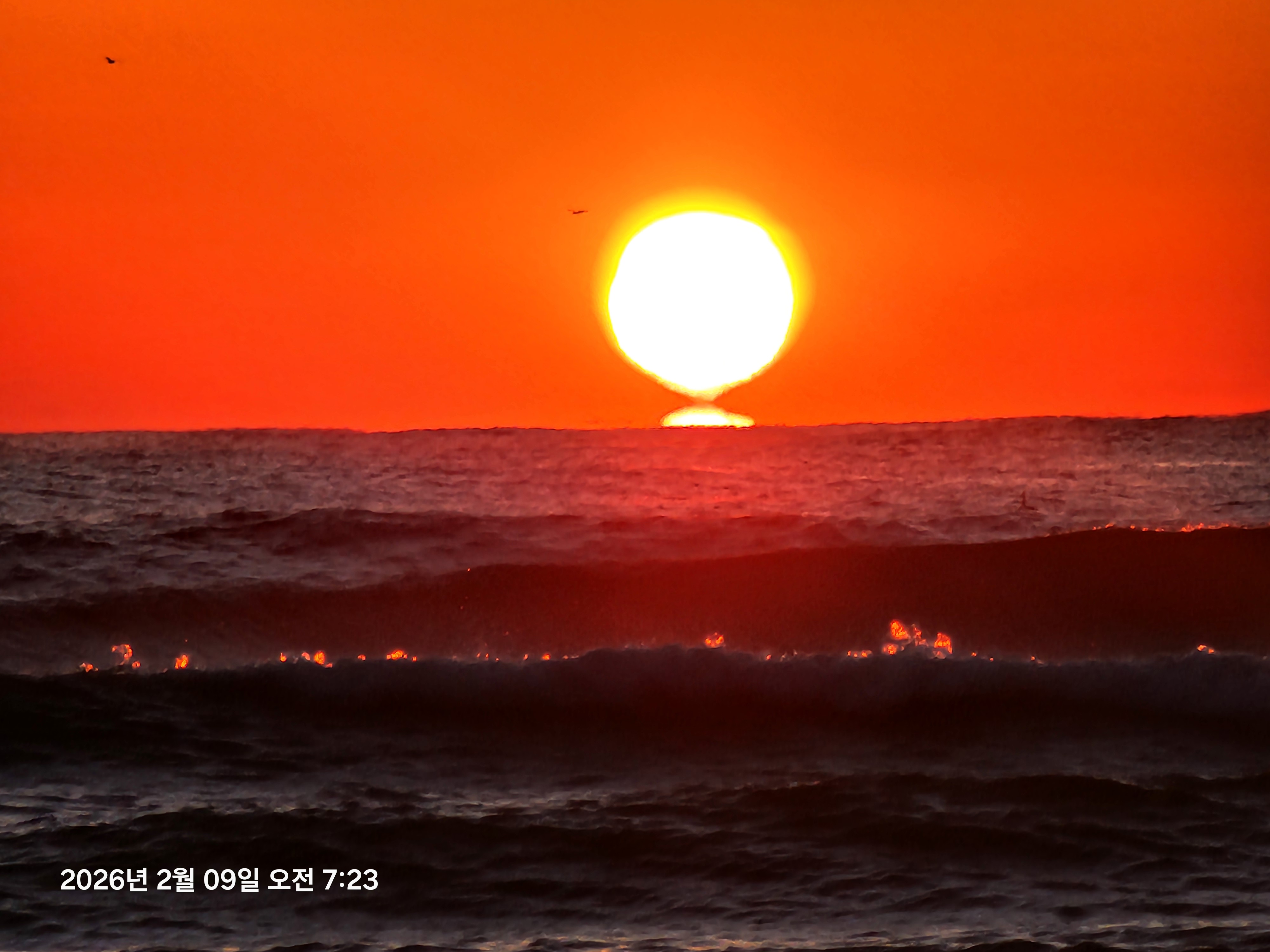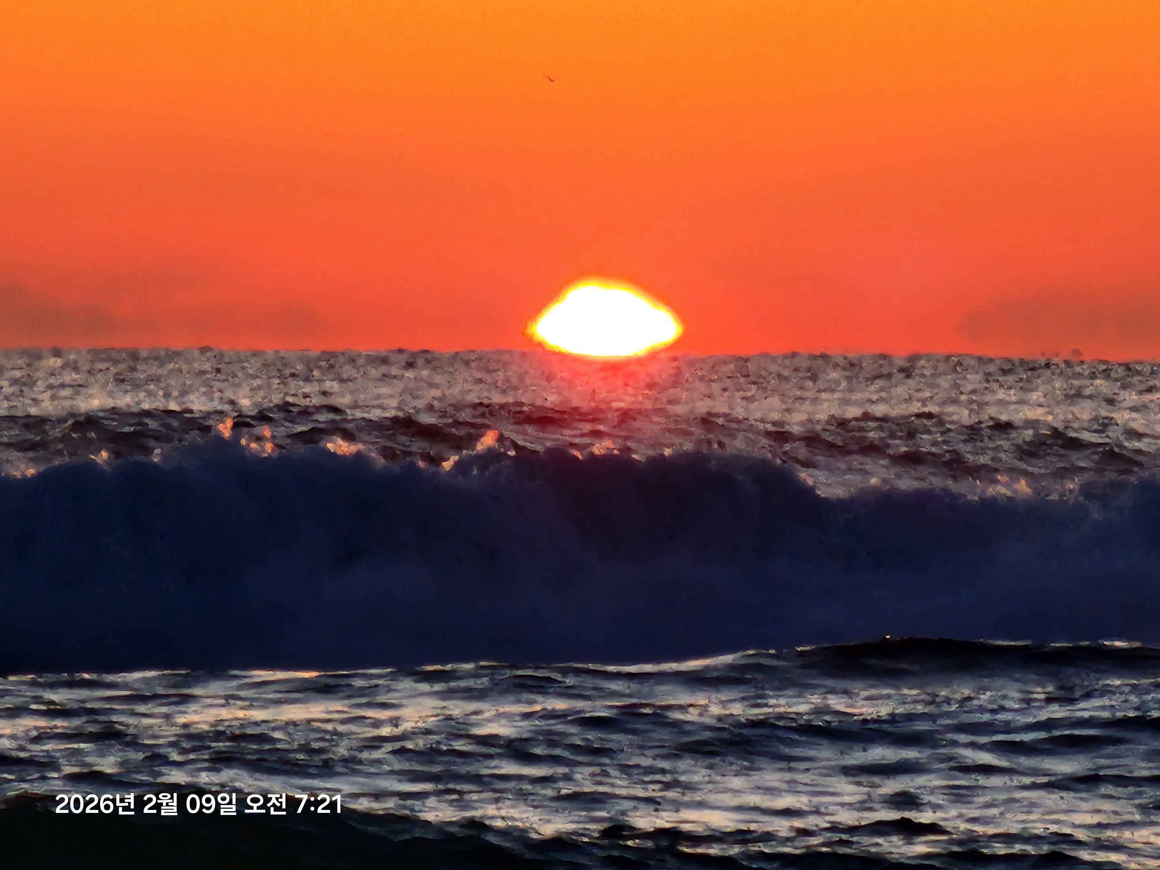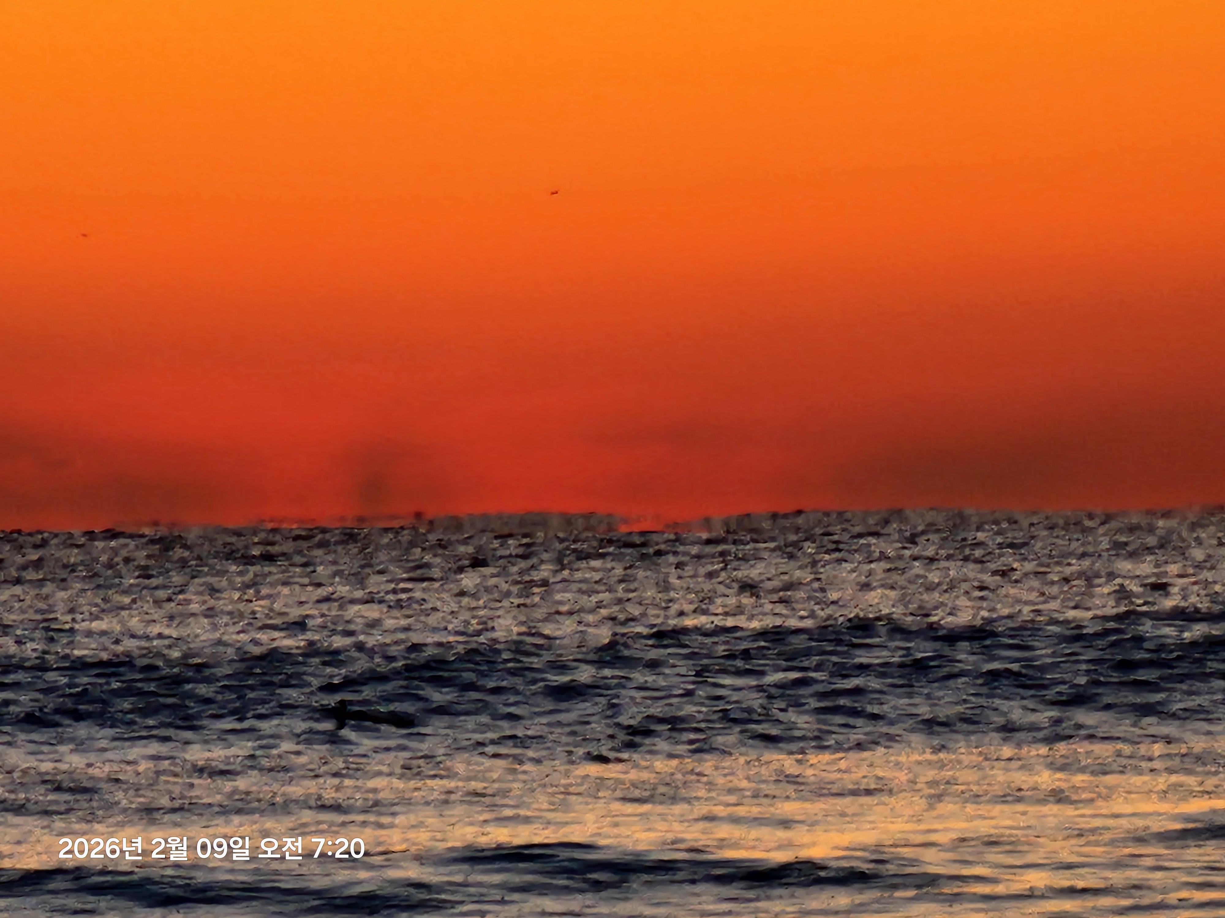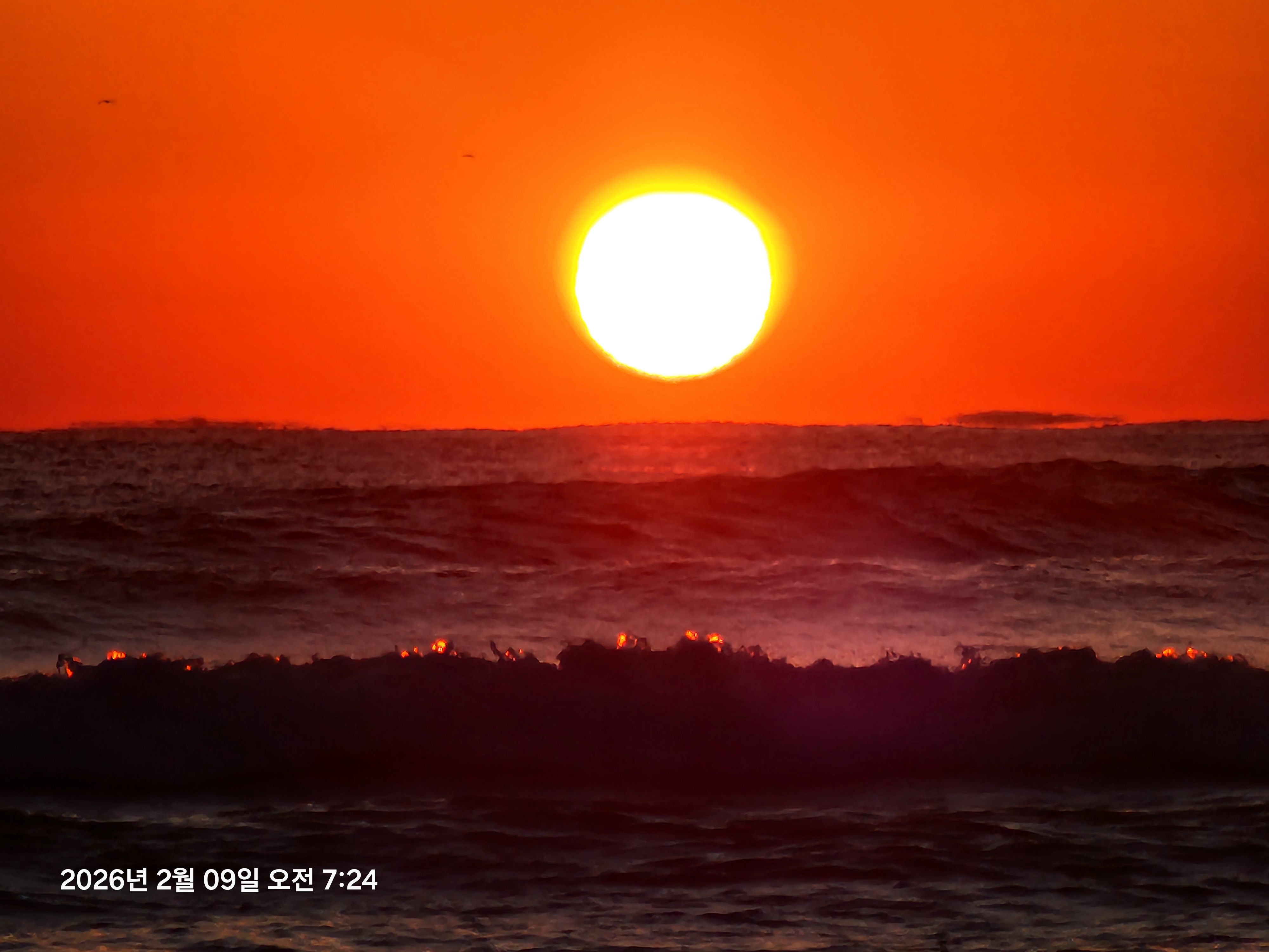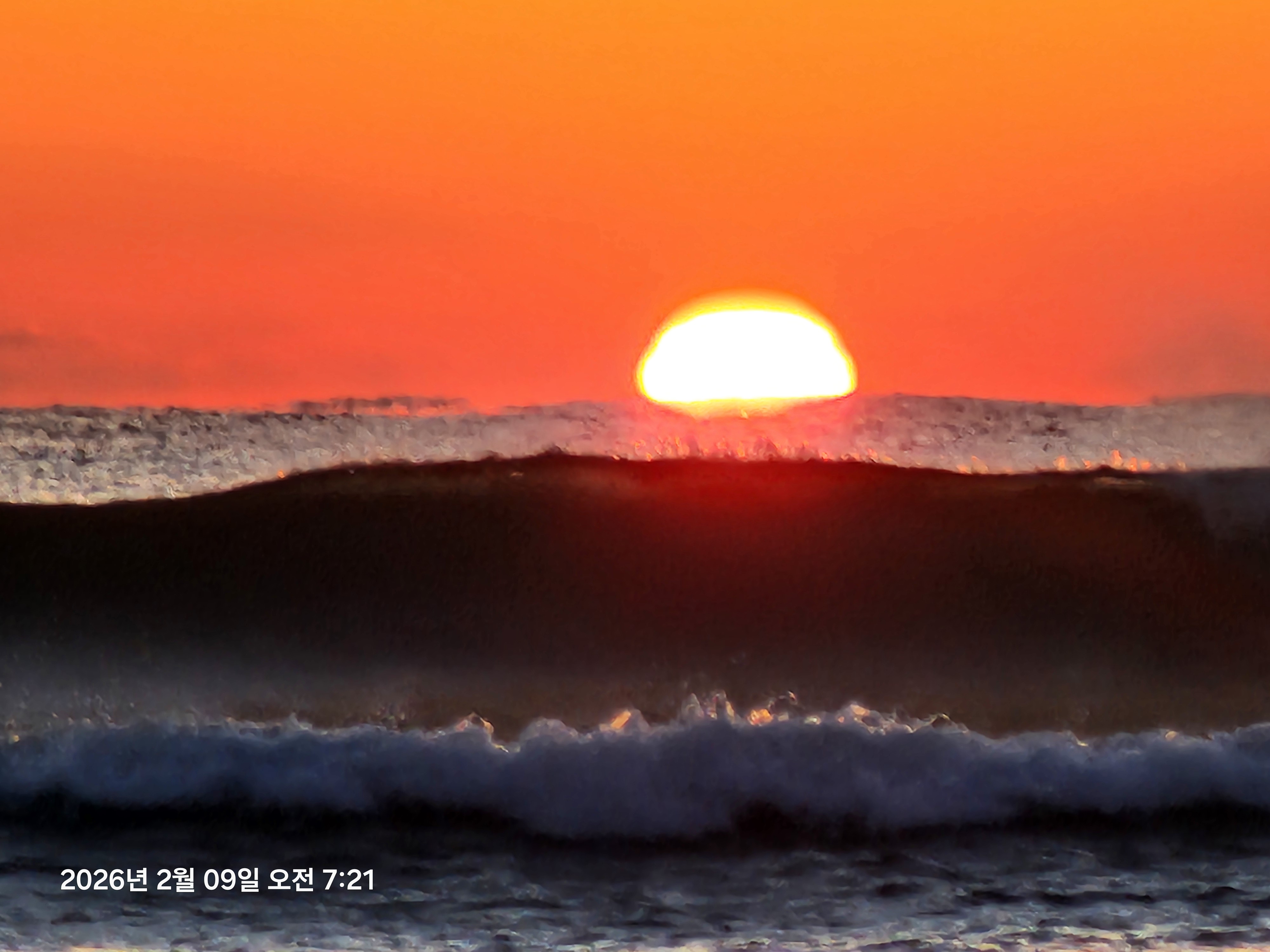 수평선 일출을 보여준다. 이달들어 3번째, 금년 통산 7번째 수평선 일출인데 모두 오메가일출이다.