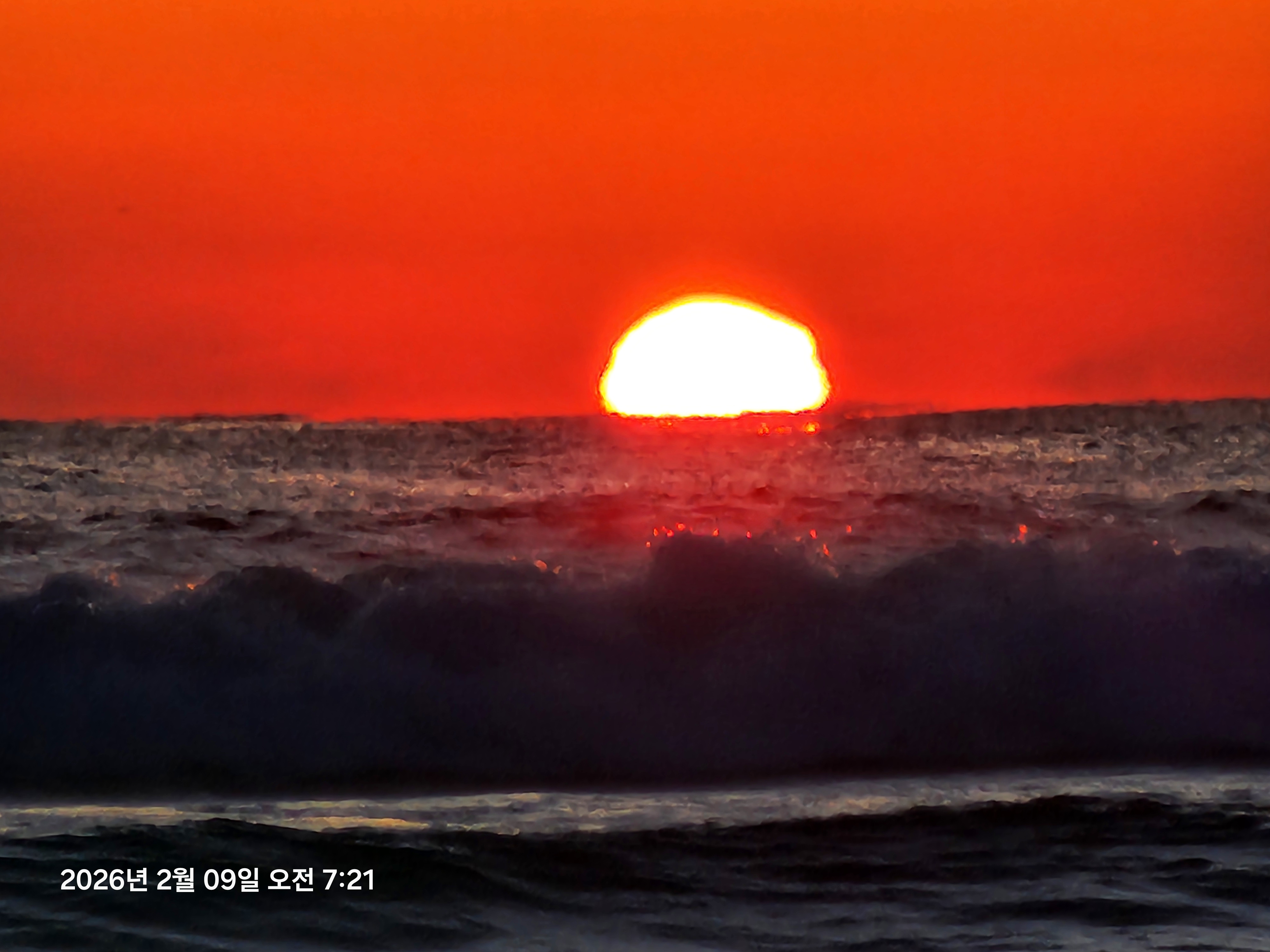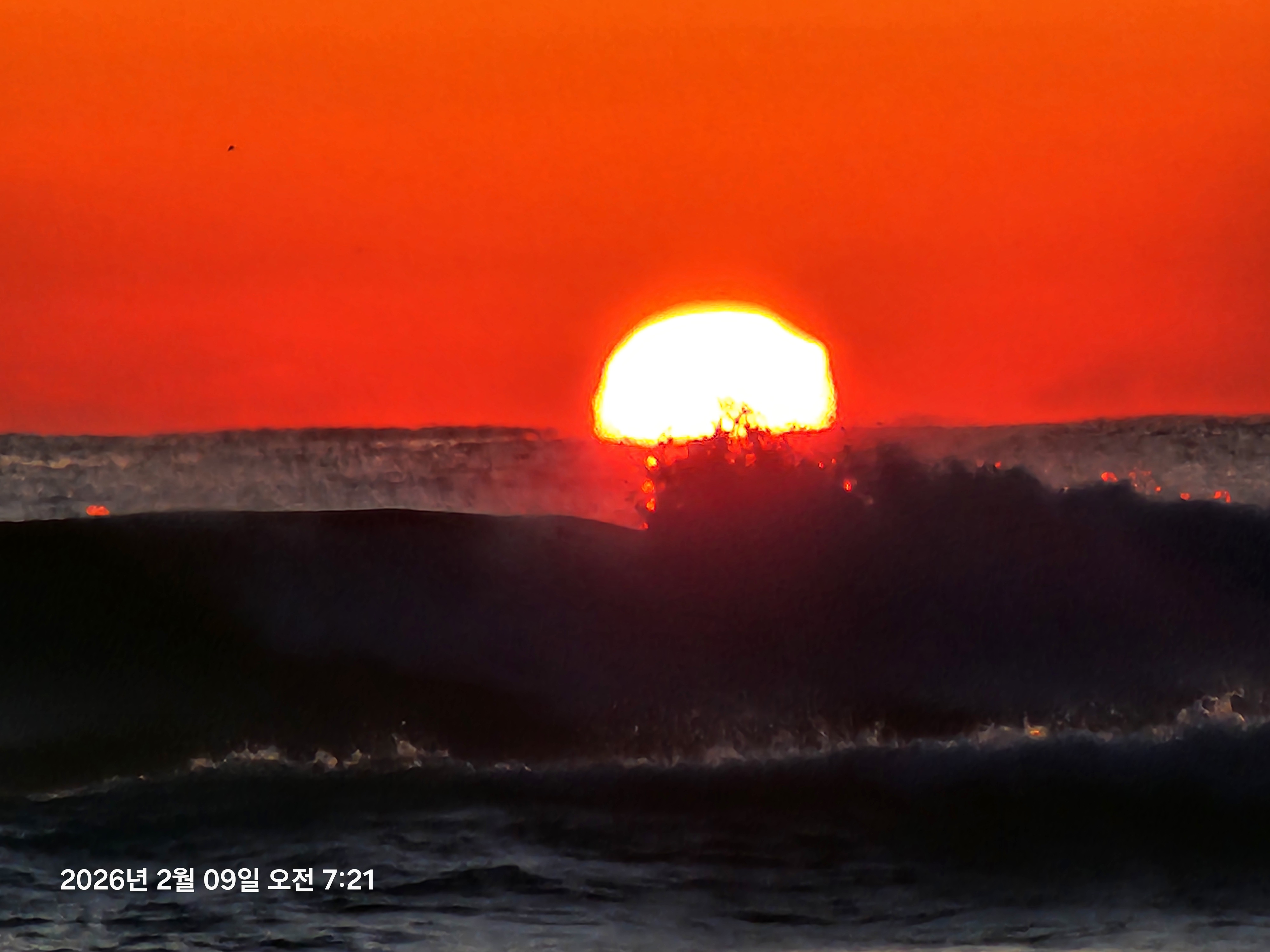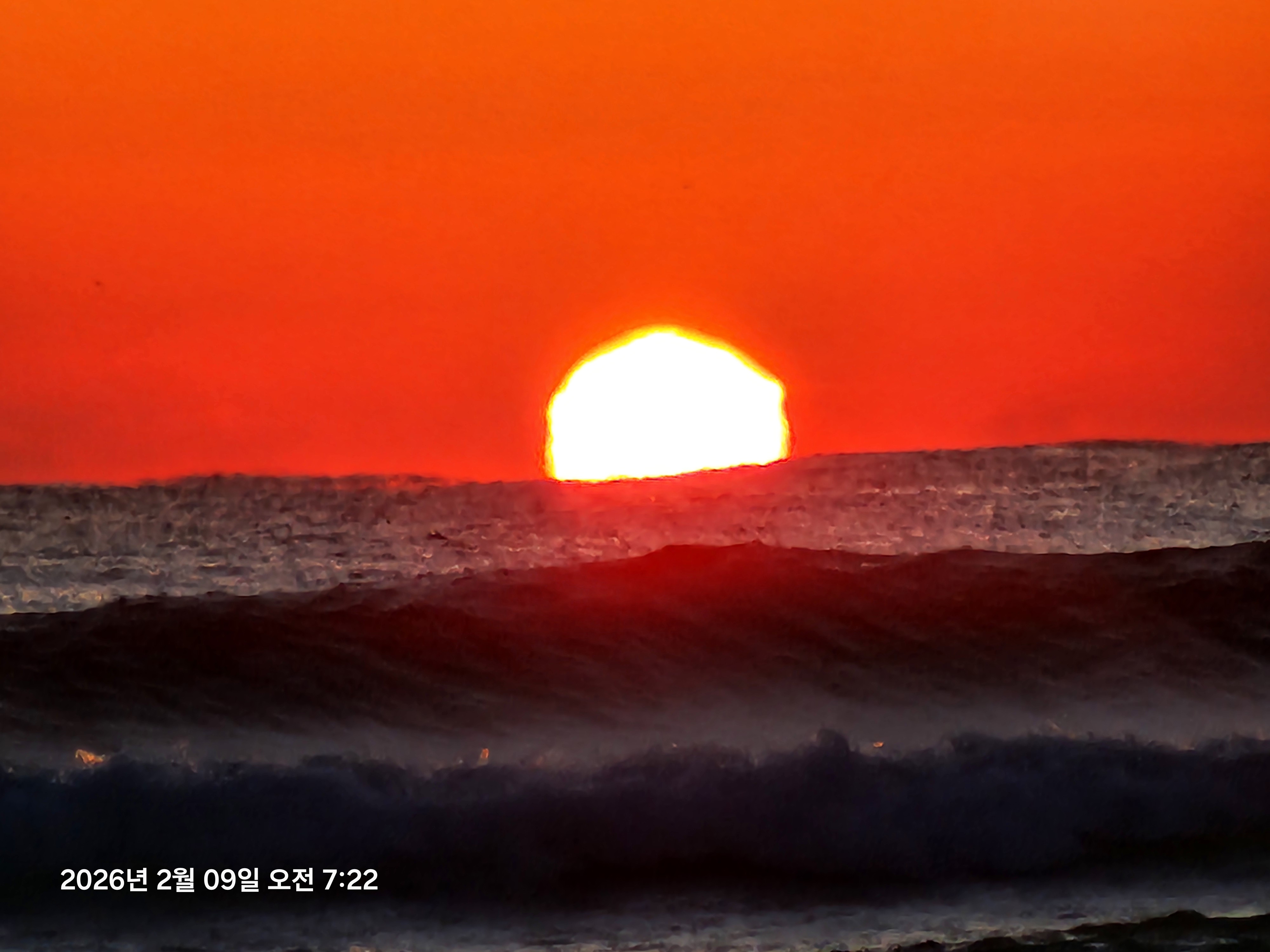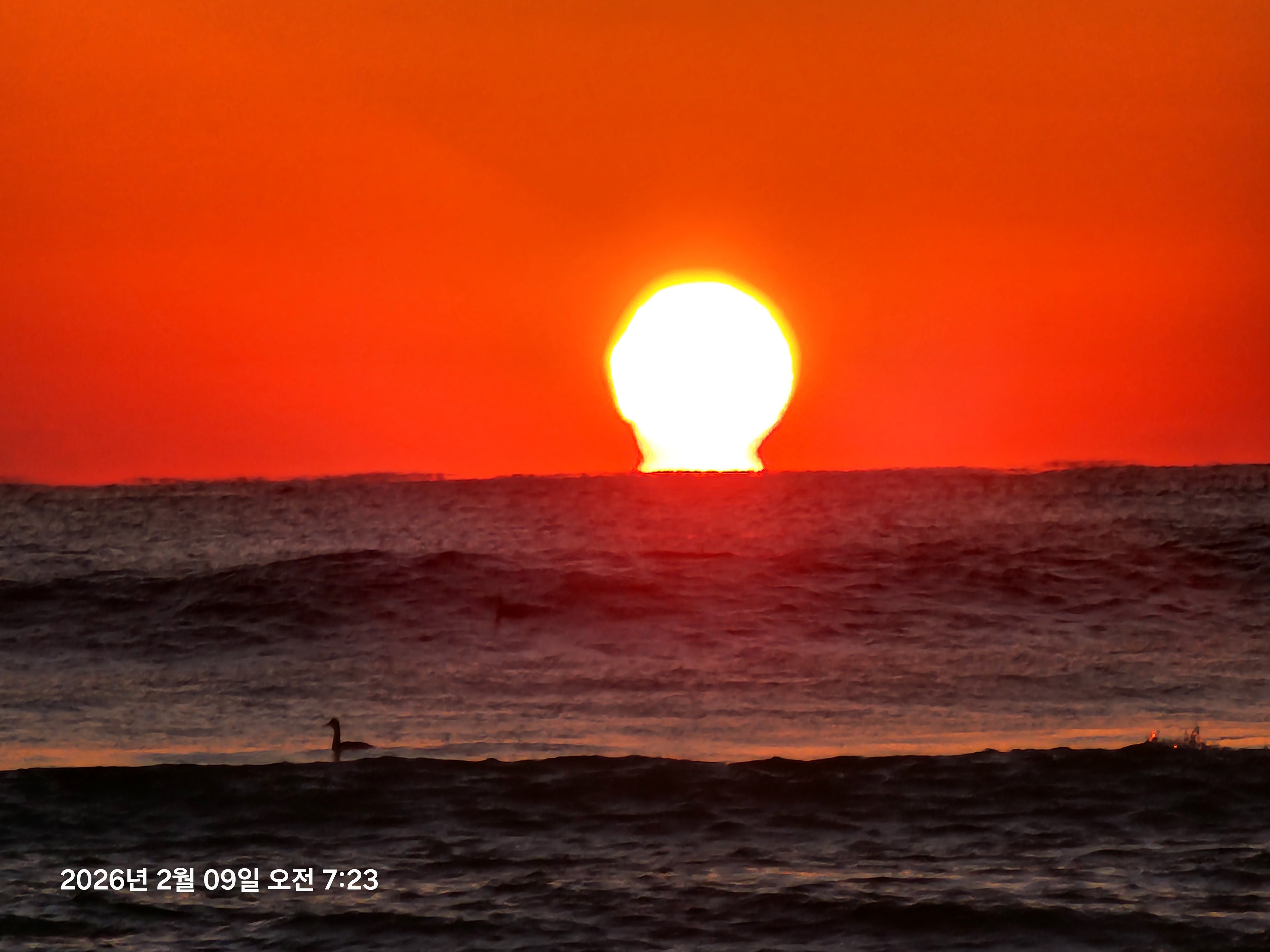 수평선 일출을 보여준다. 이달들어 3번째, 금년 통산 7번째 수평선 일출인데 모두 오메가일출이다.