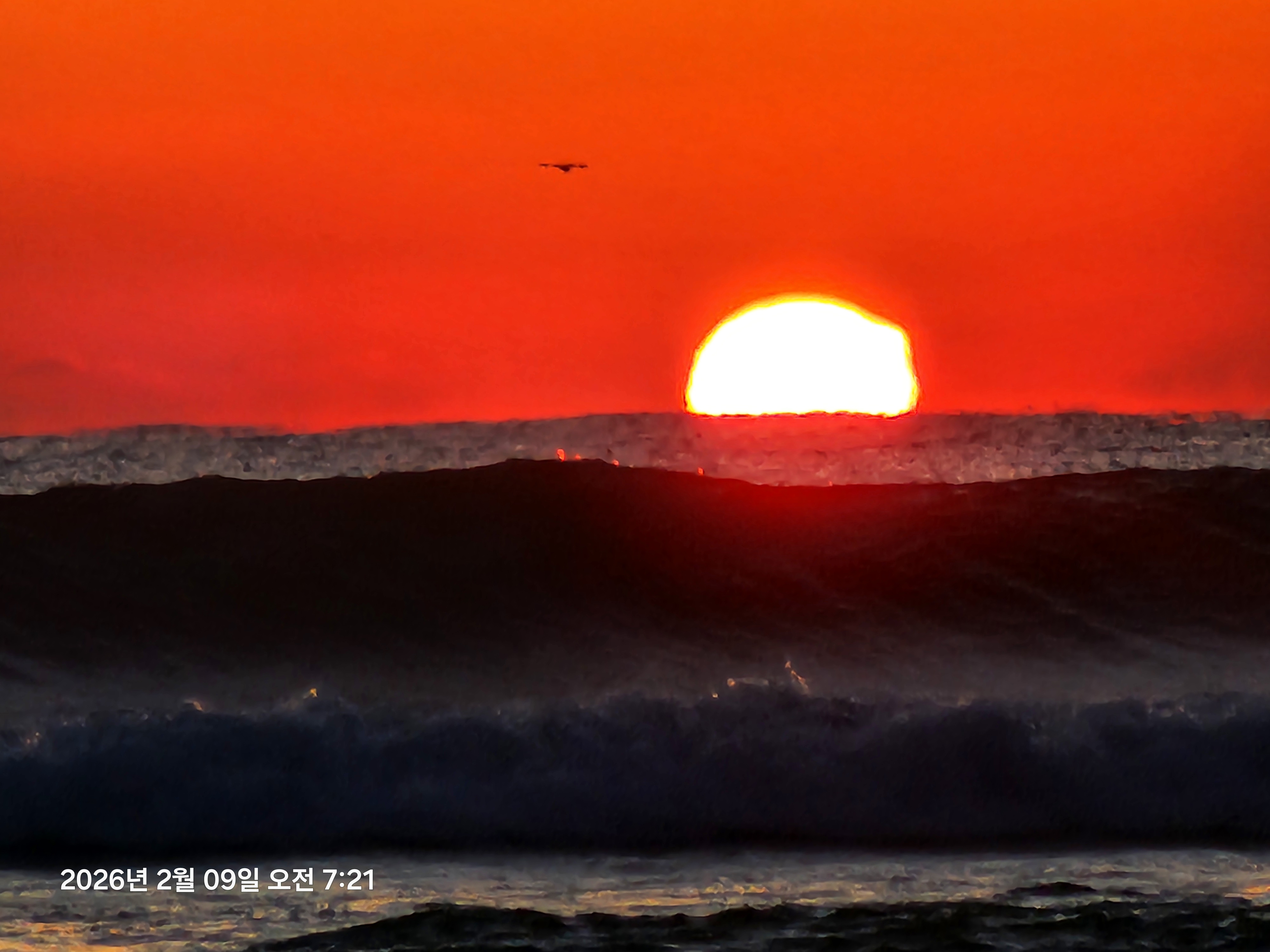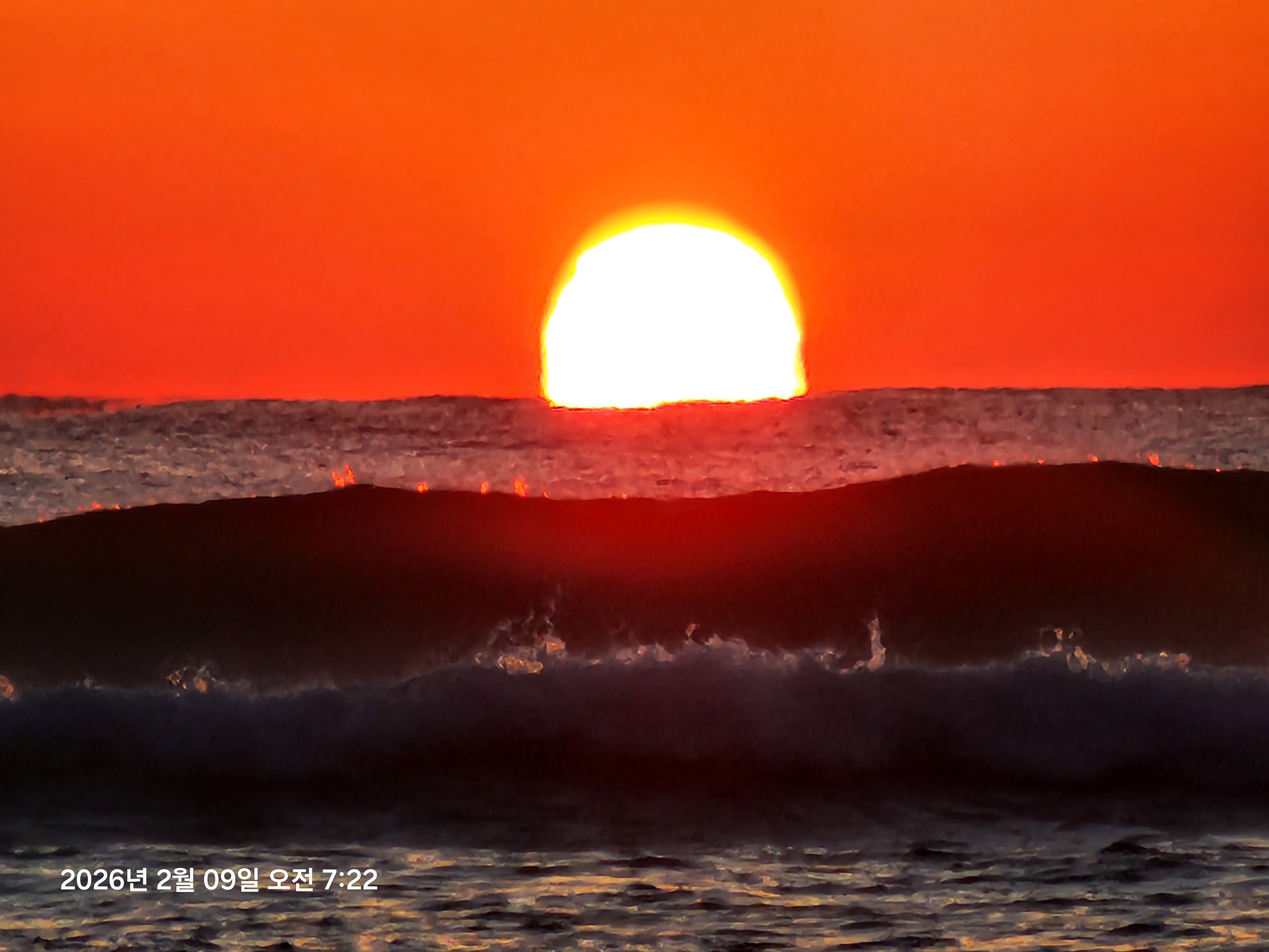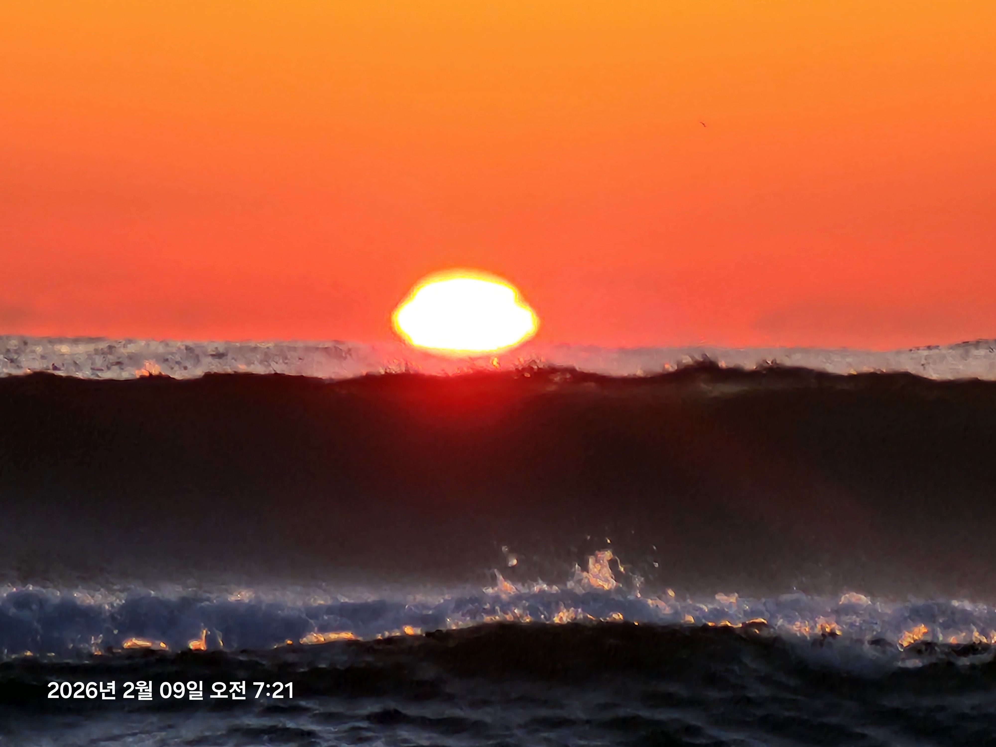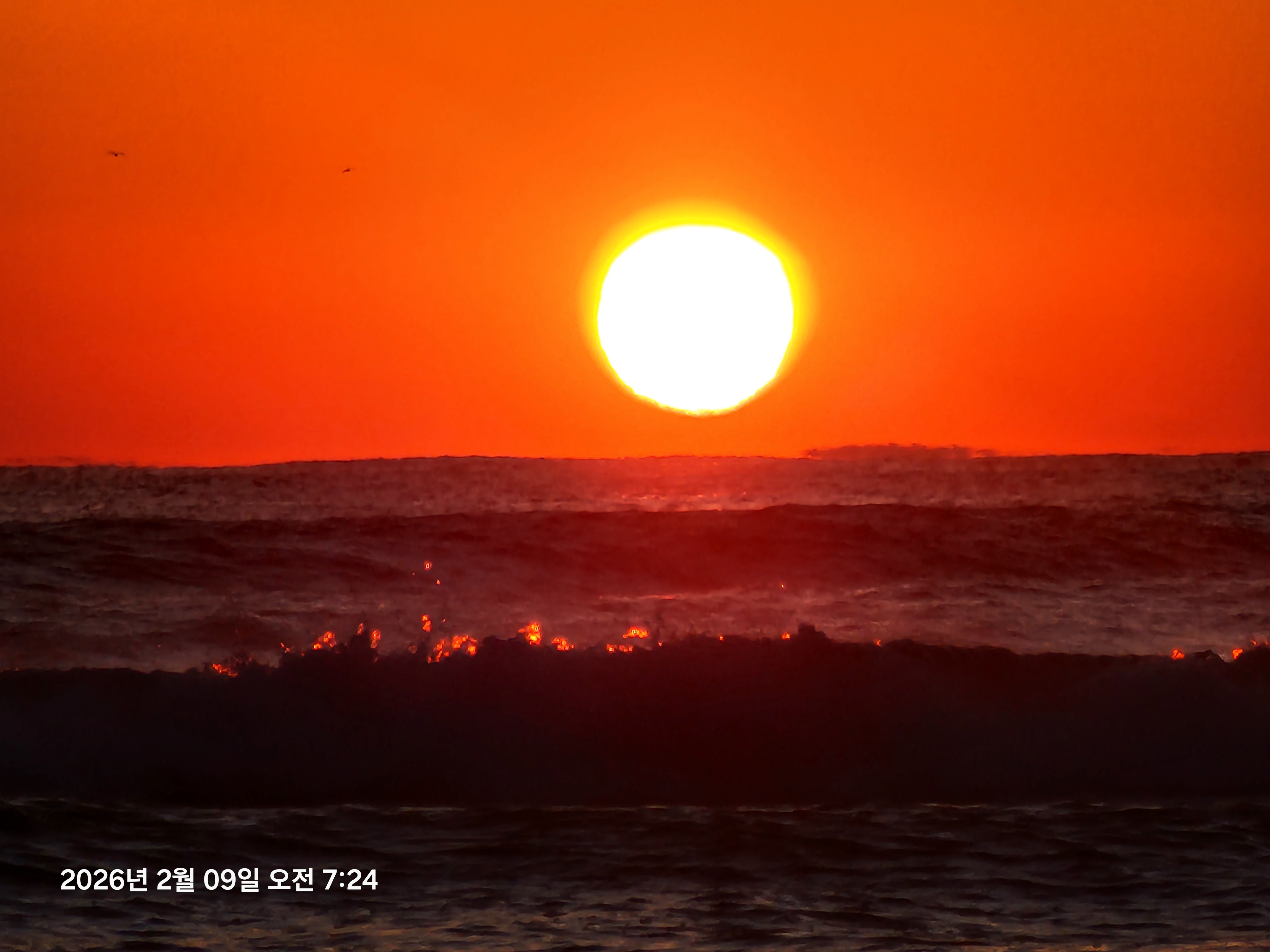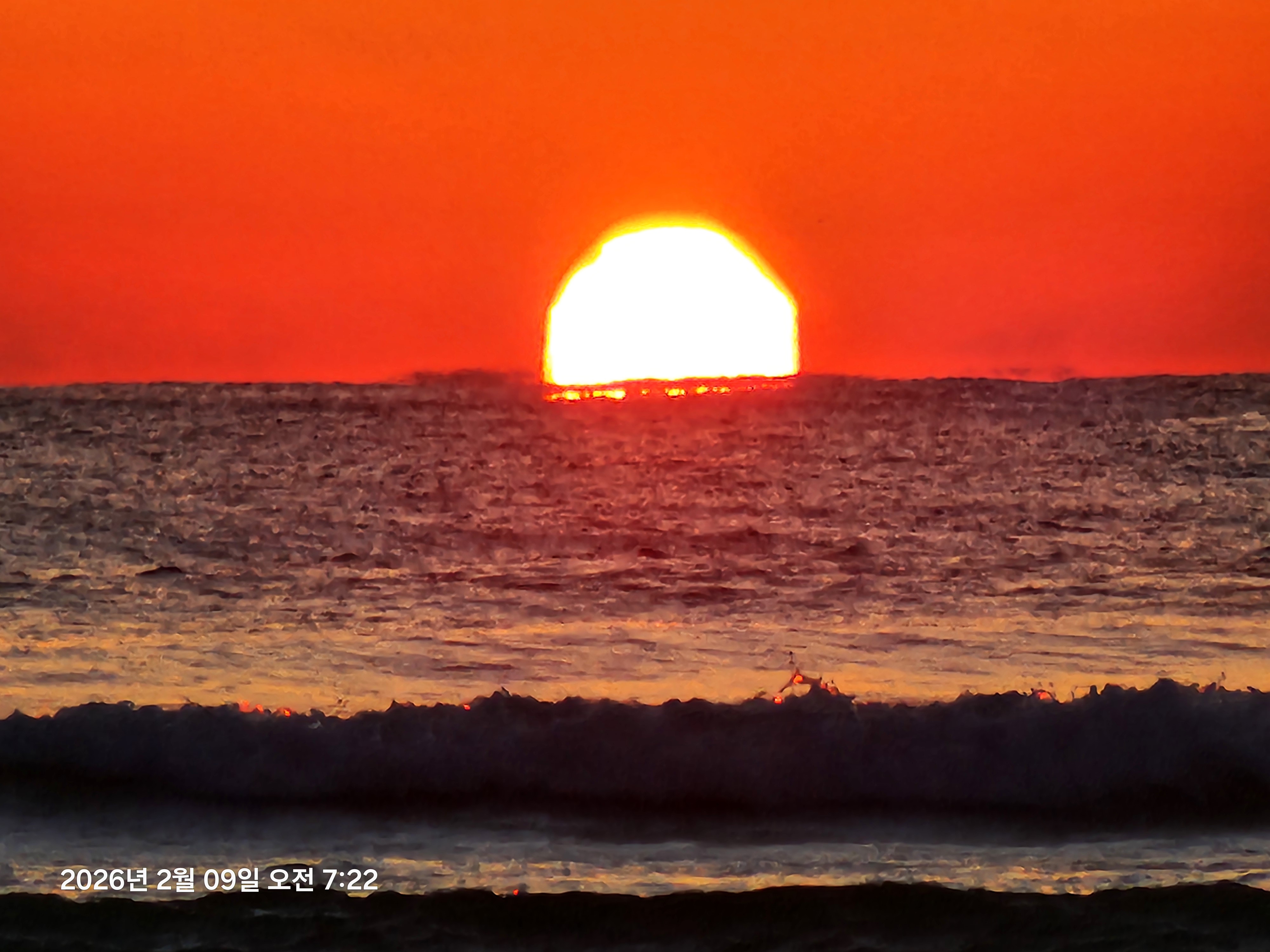 수평선 일출을 보여준다. 이달들어 3번째, 금년 통산 7번째 수평선 일출인데 모두 오메가일출이다.