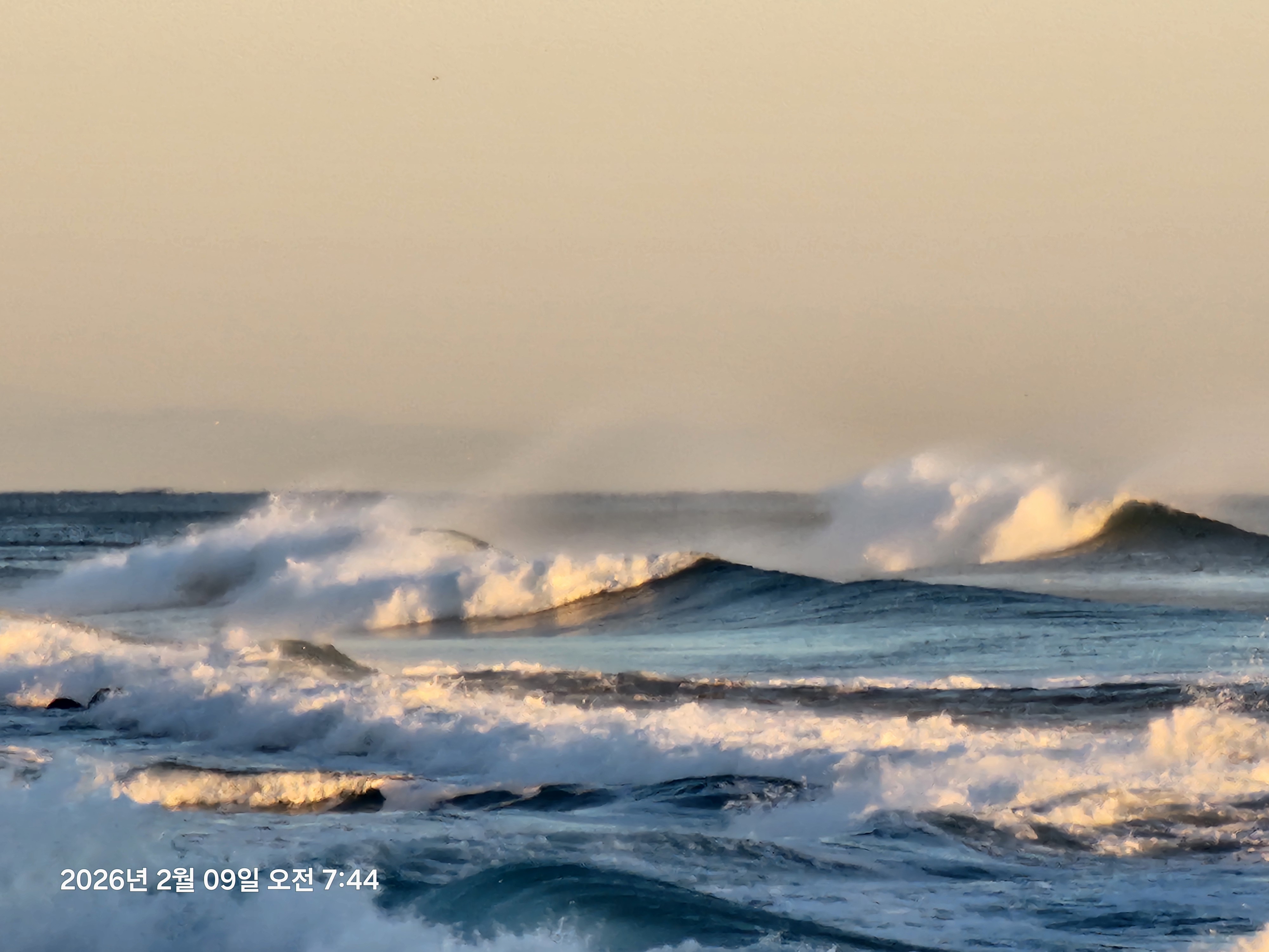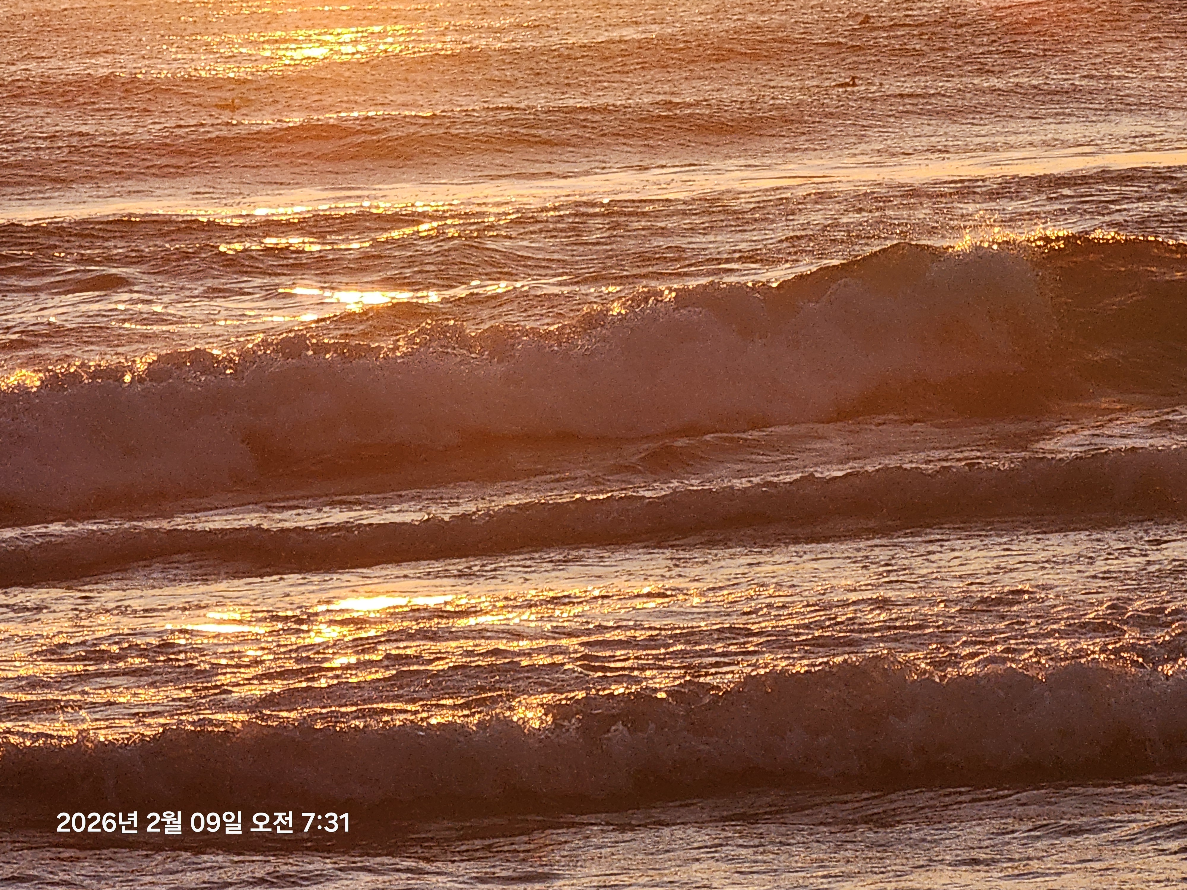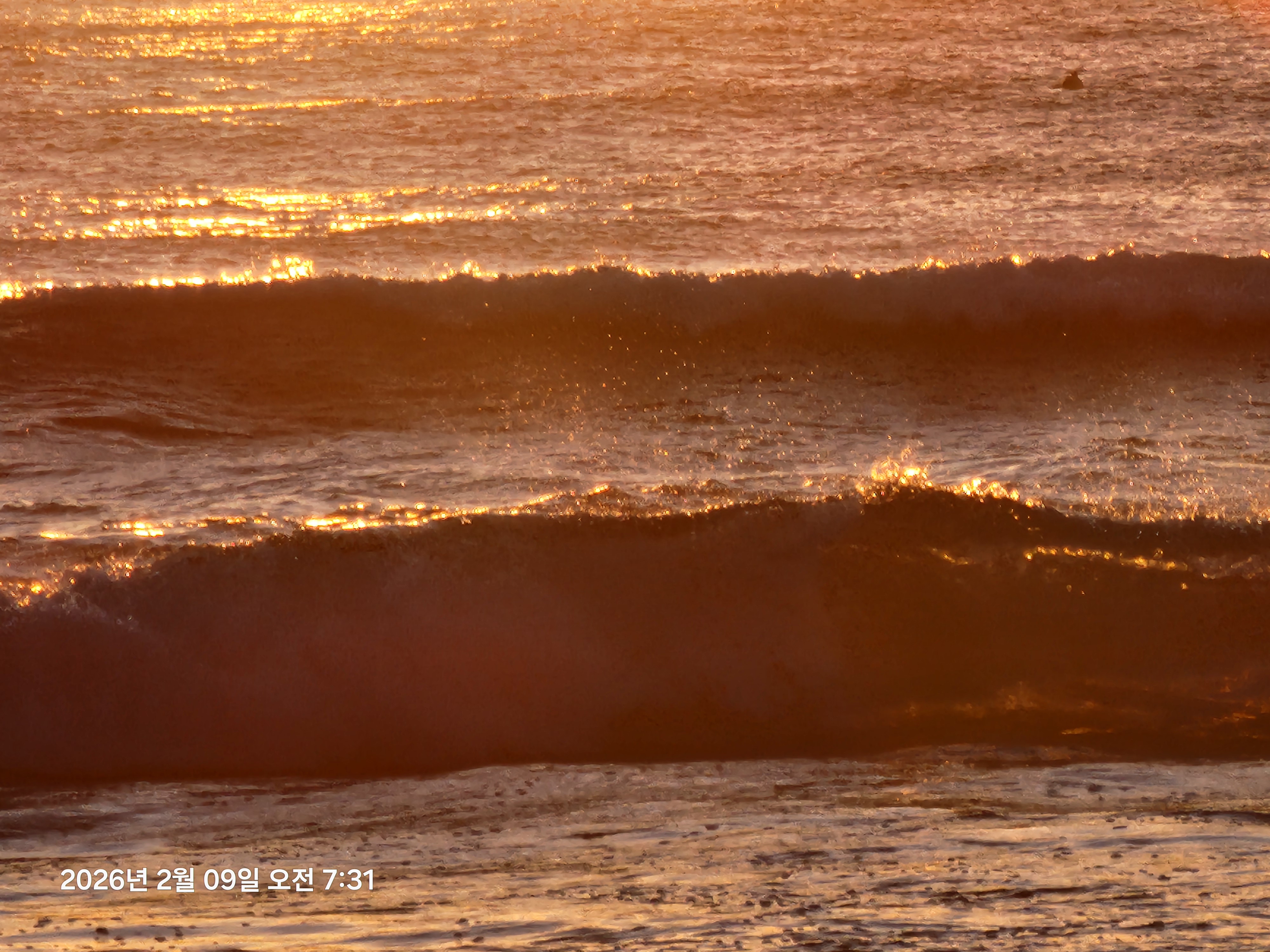 파도가 잔잔하면 윤슬이 볼 만 하지만, 파도를 앞세운 일출을 담아본다.
