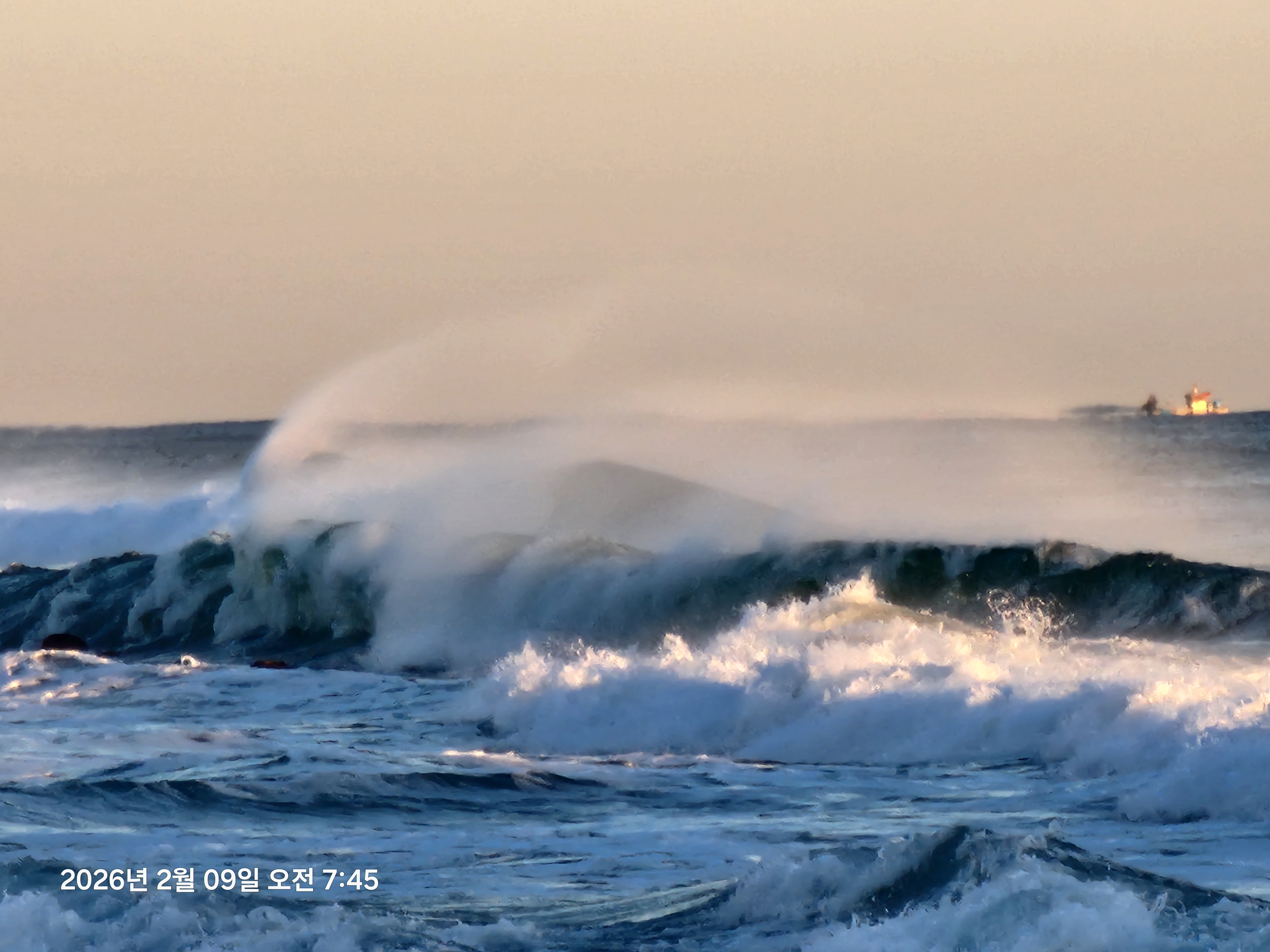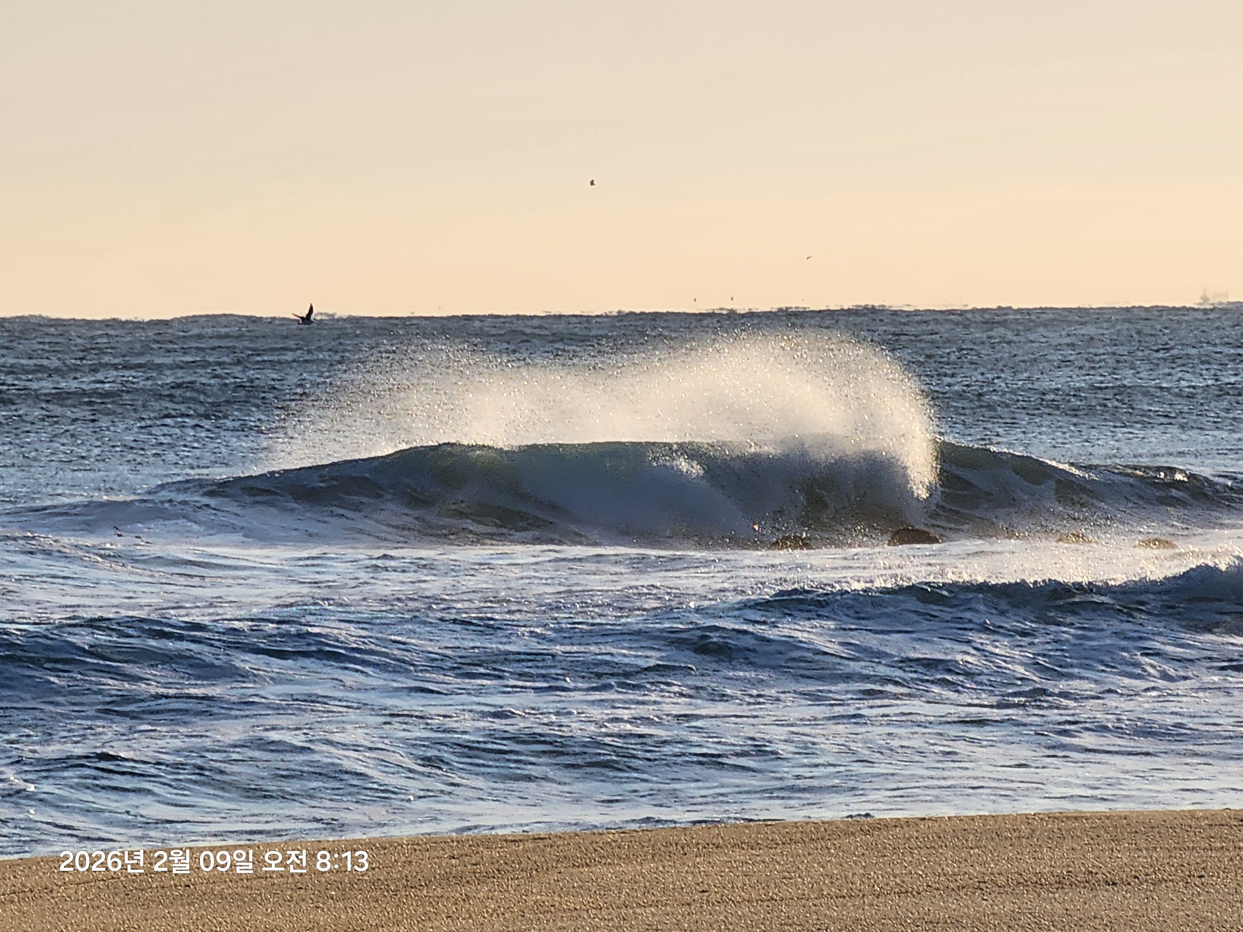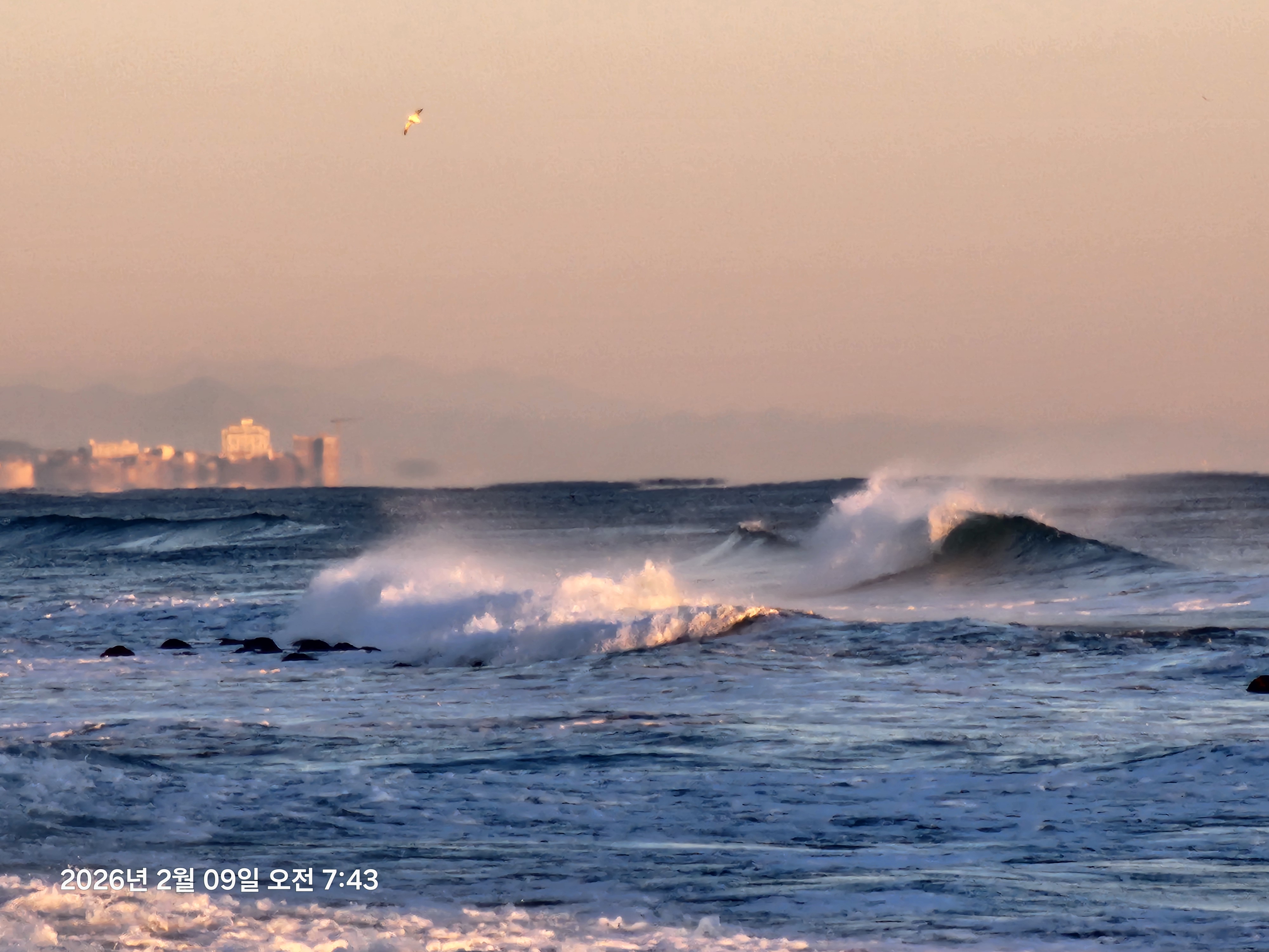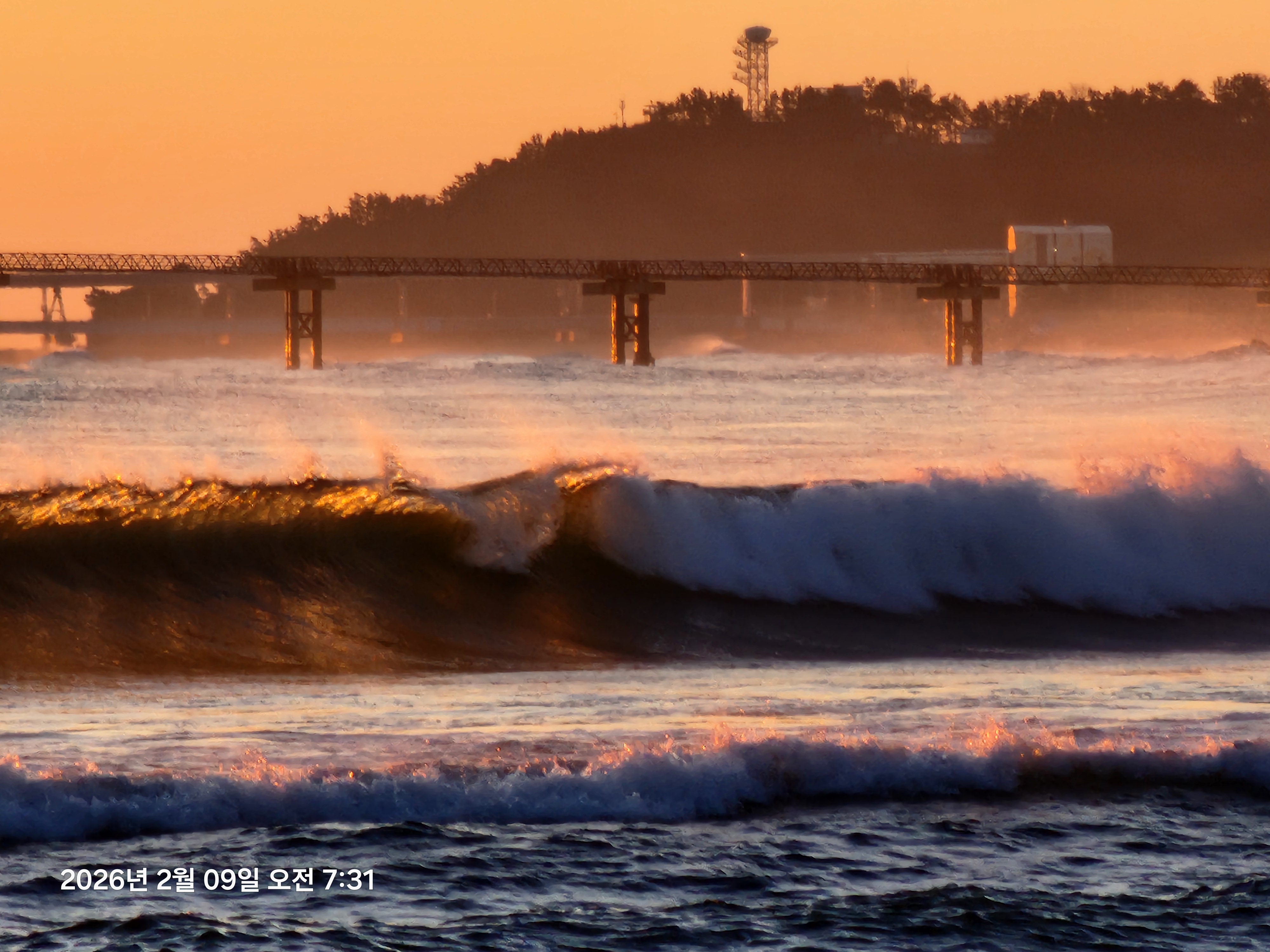 파도가 잔잔하면 윤슬이 볼 만 하지만, 파도를 앞세운 일출을 담아본다.