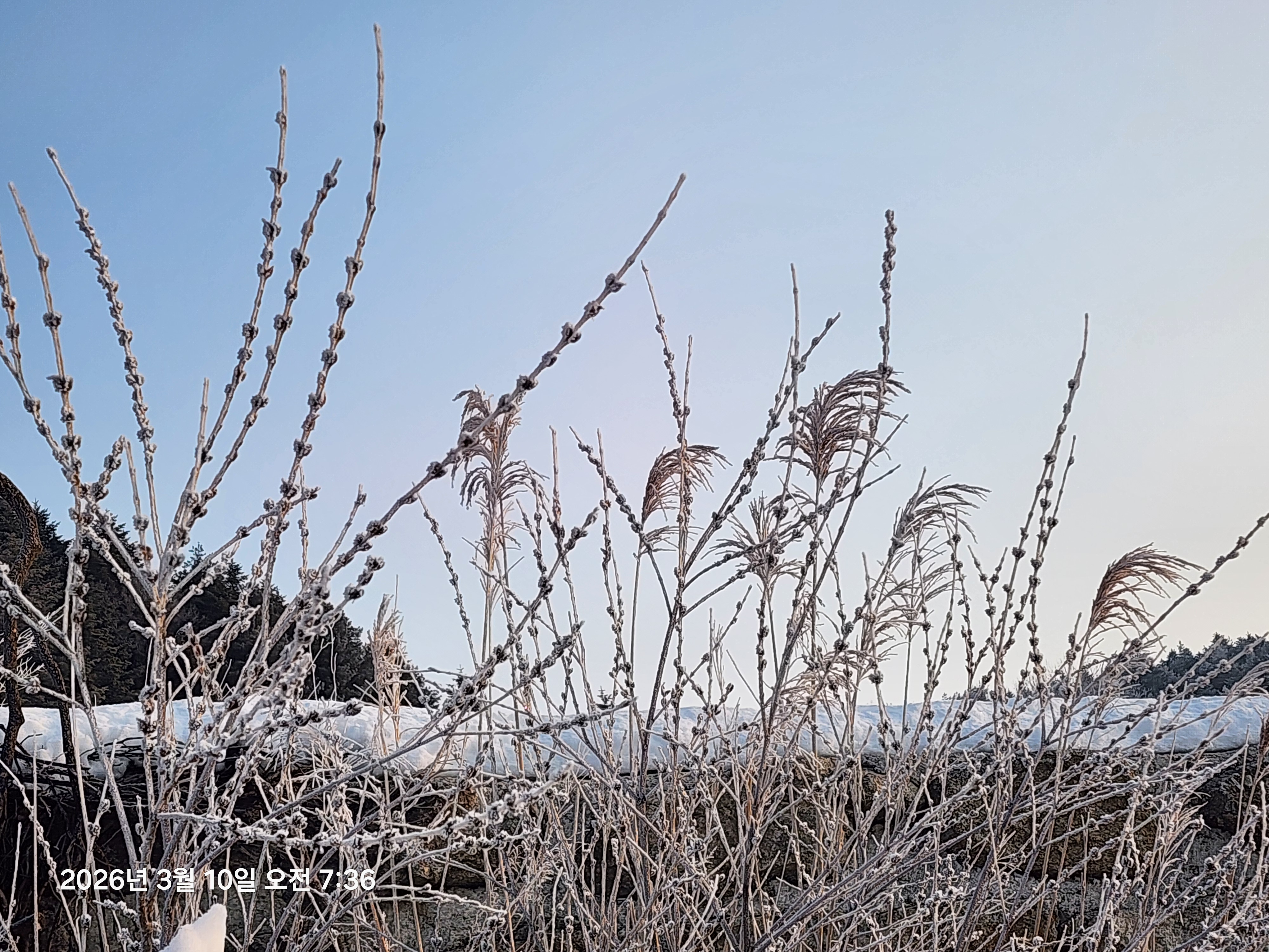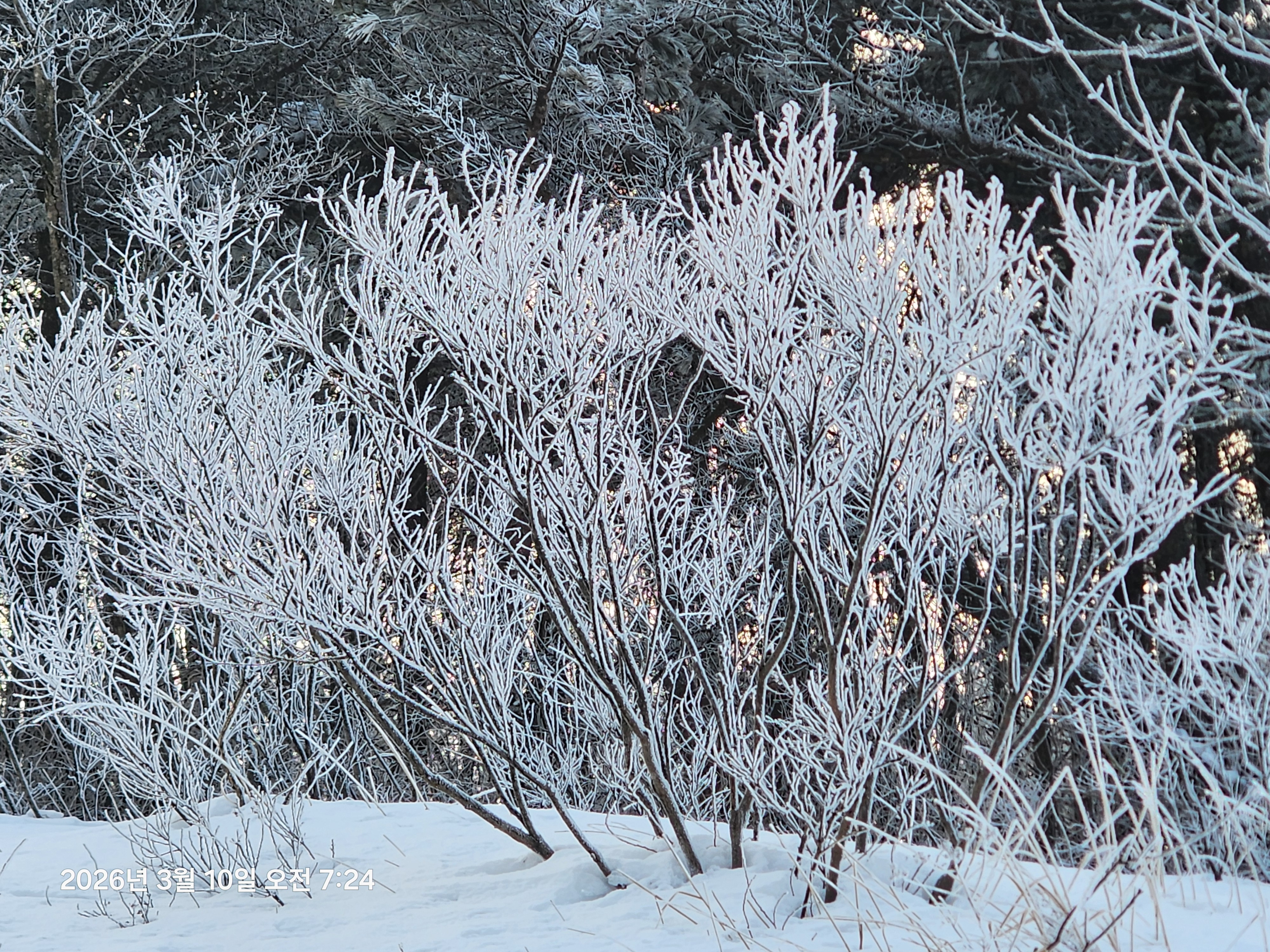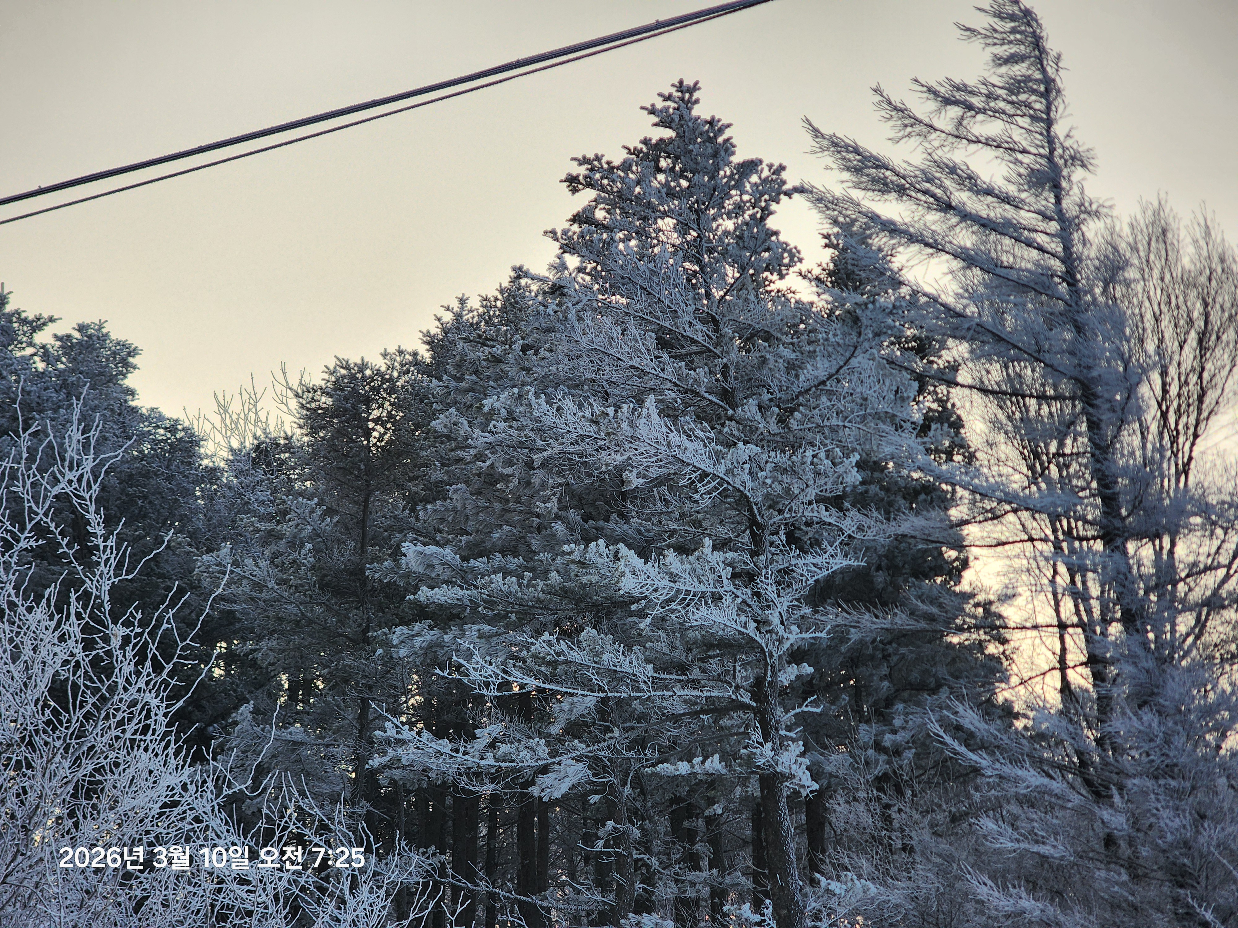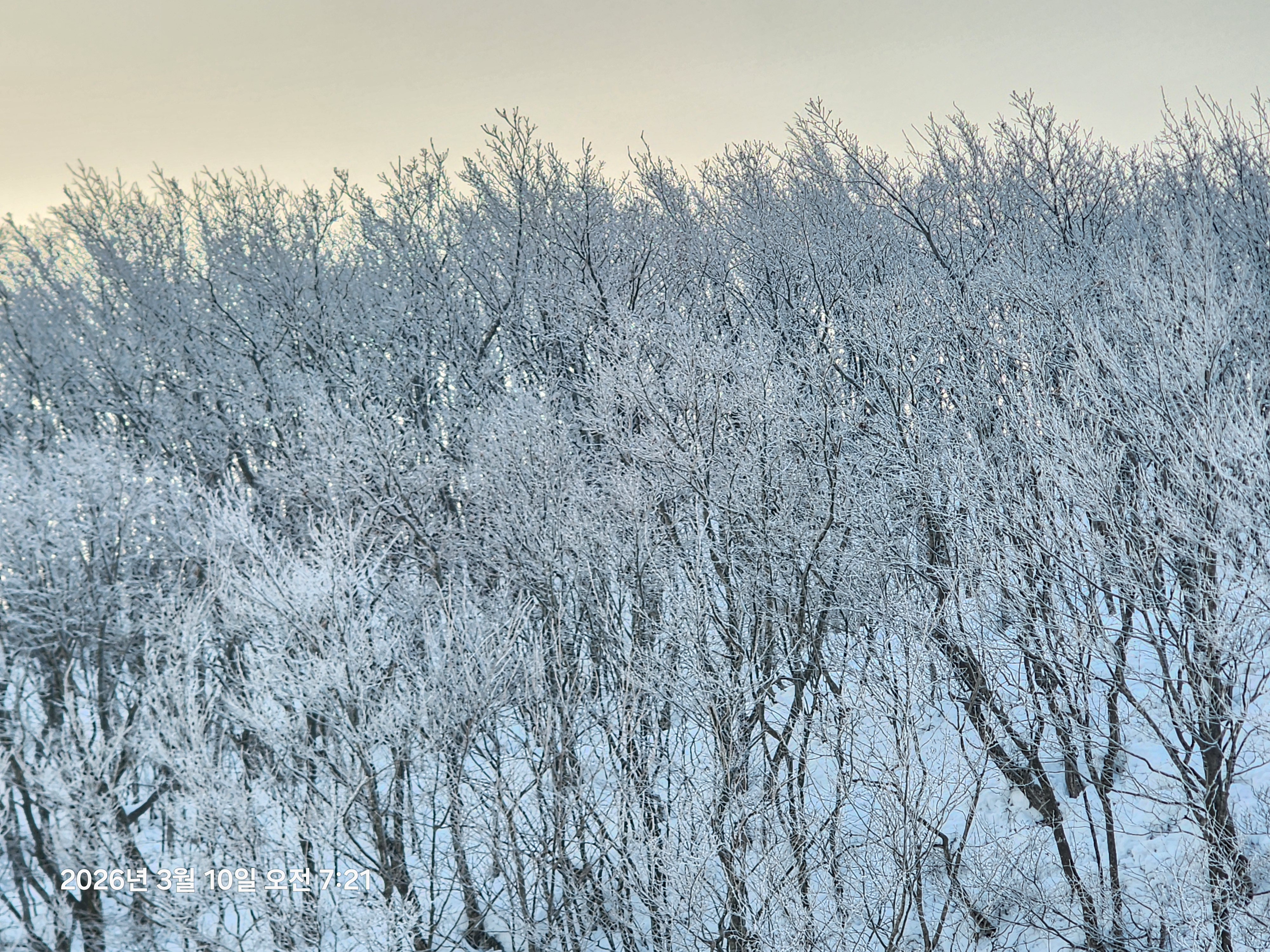 다만 대관령 도로변 곳곳에서 상고대릂 볼수 있었고, 선자령 등산 코스에서는 나무에 눈은 없었지만