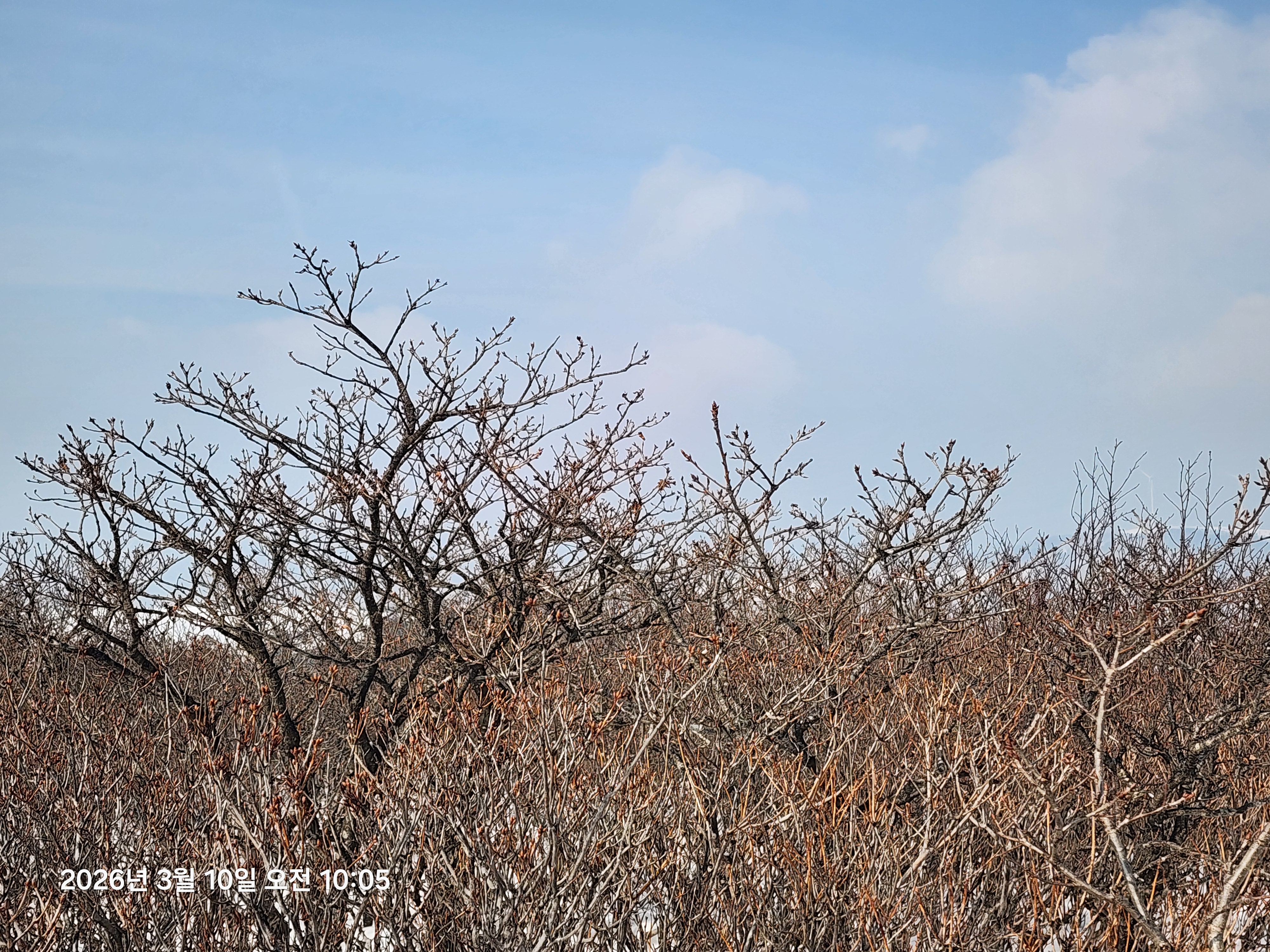 어제 눈이 내리지 않아 나무엔 눈이 없었다.
