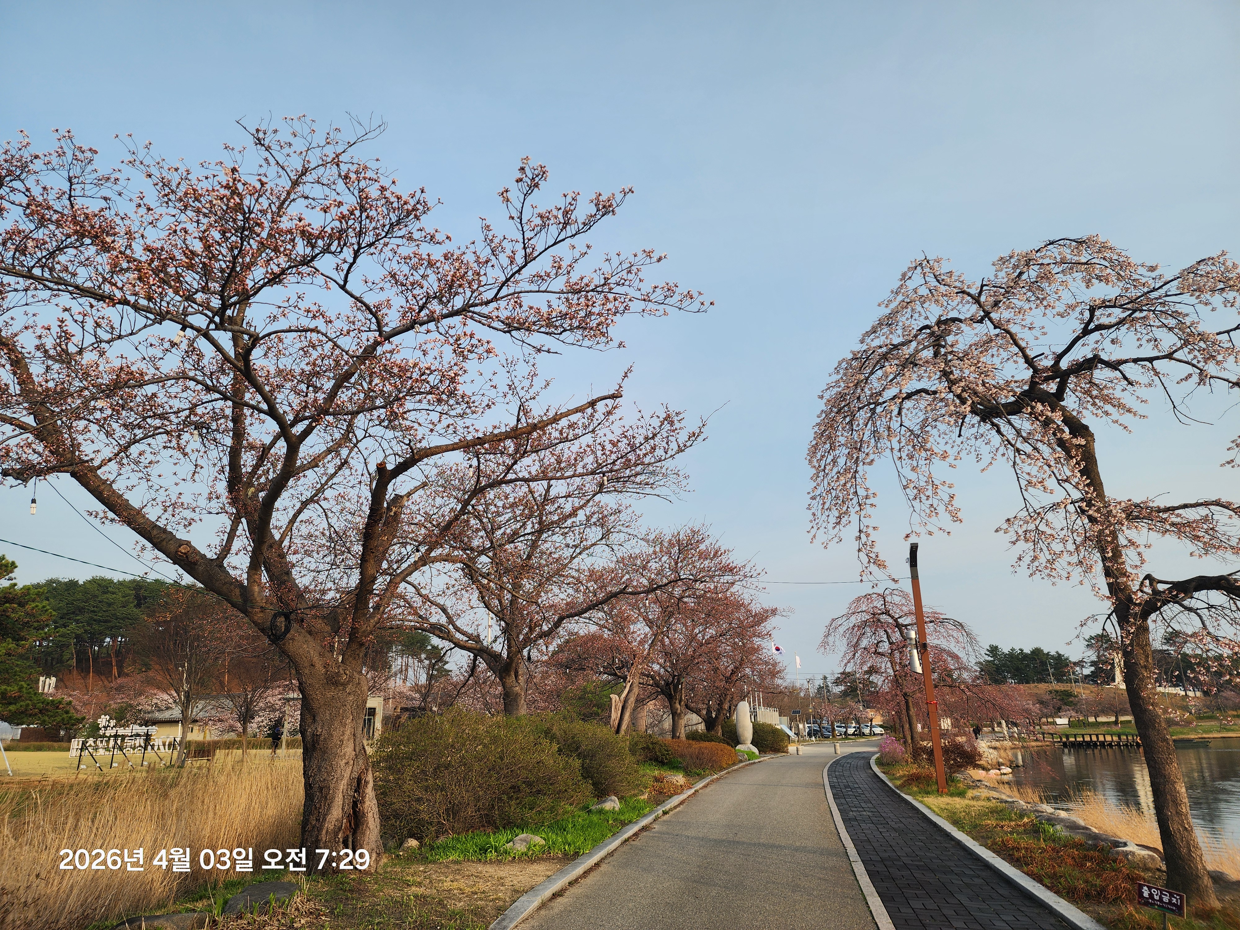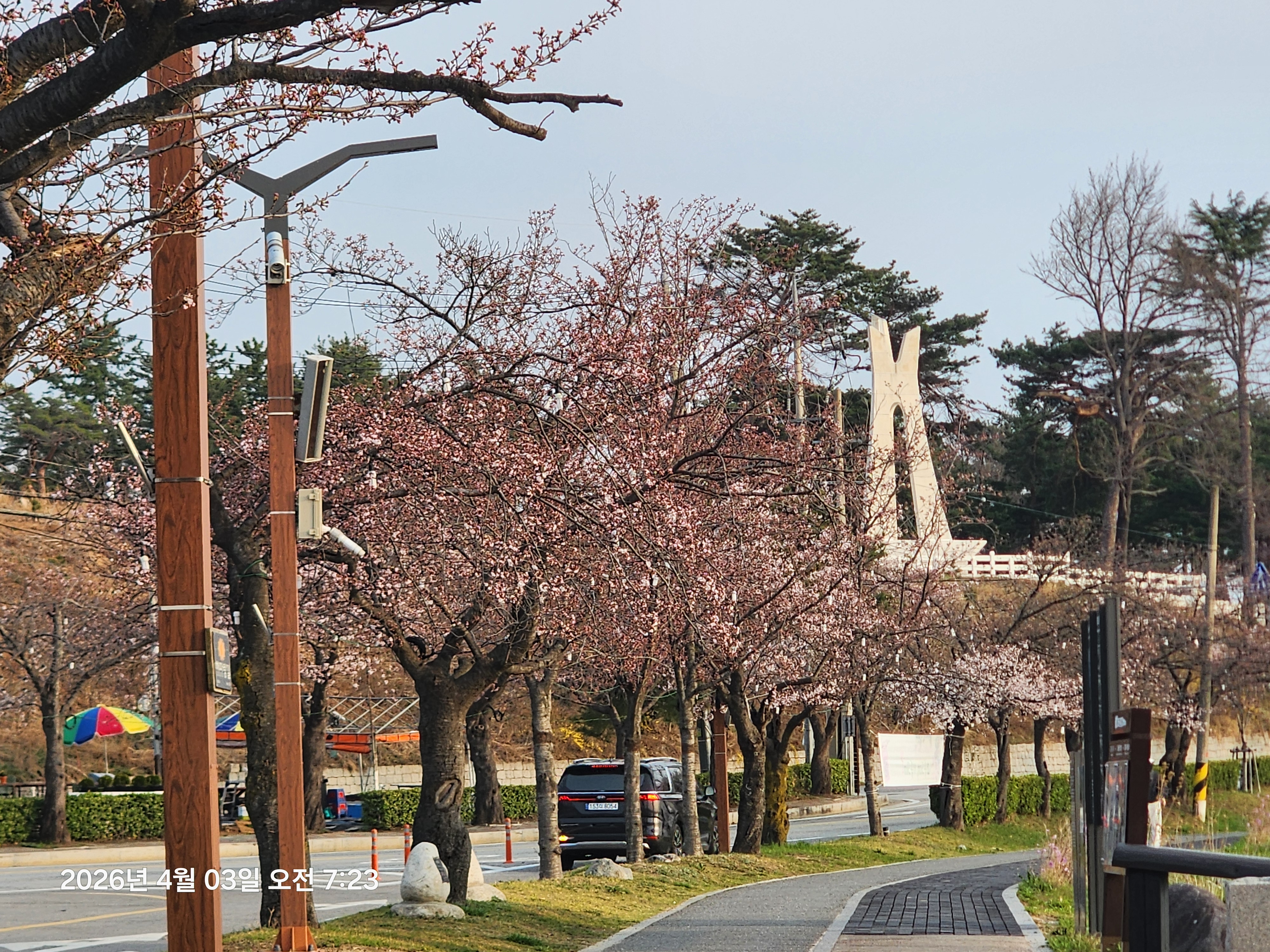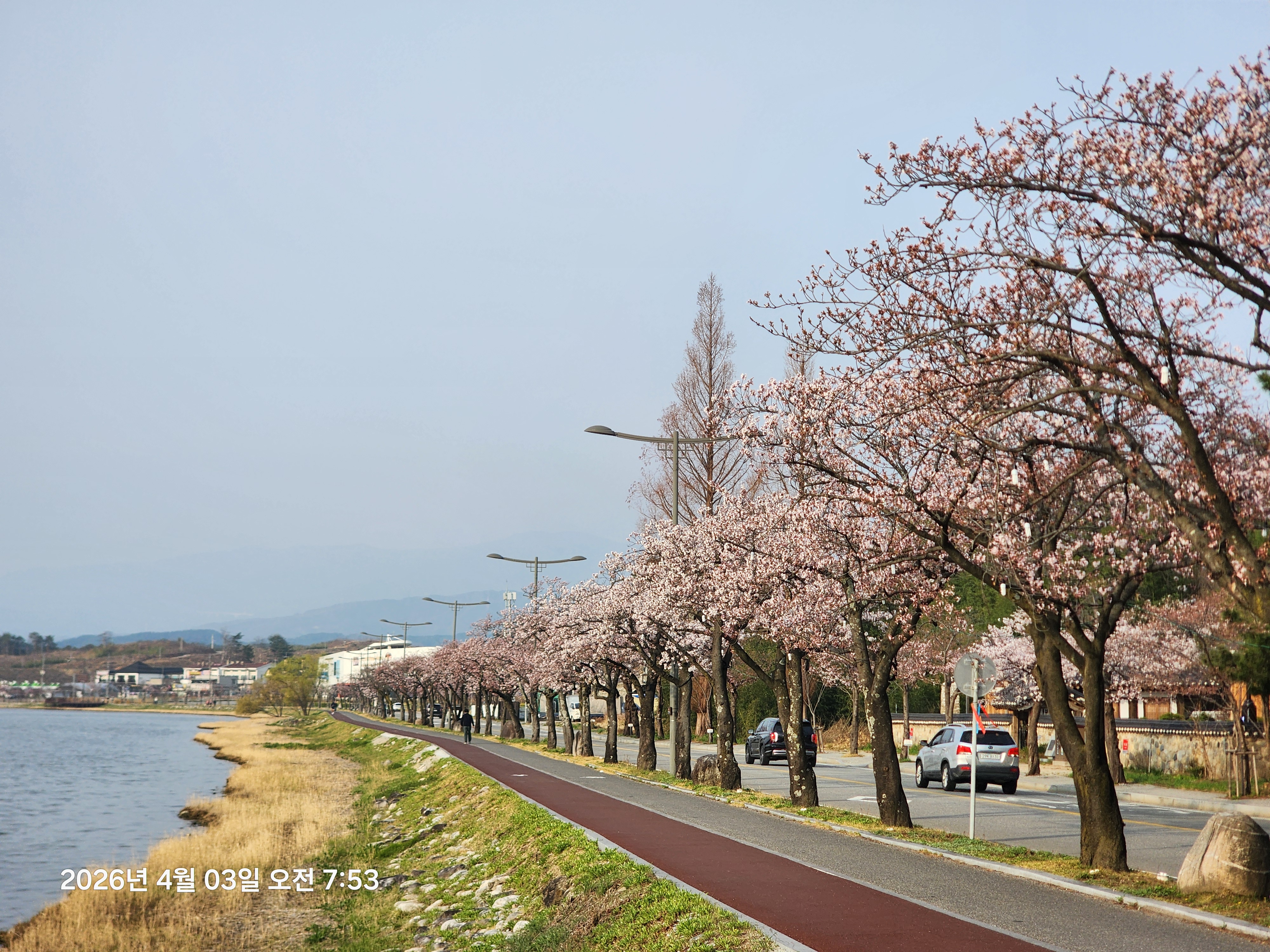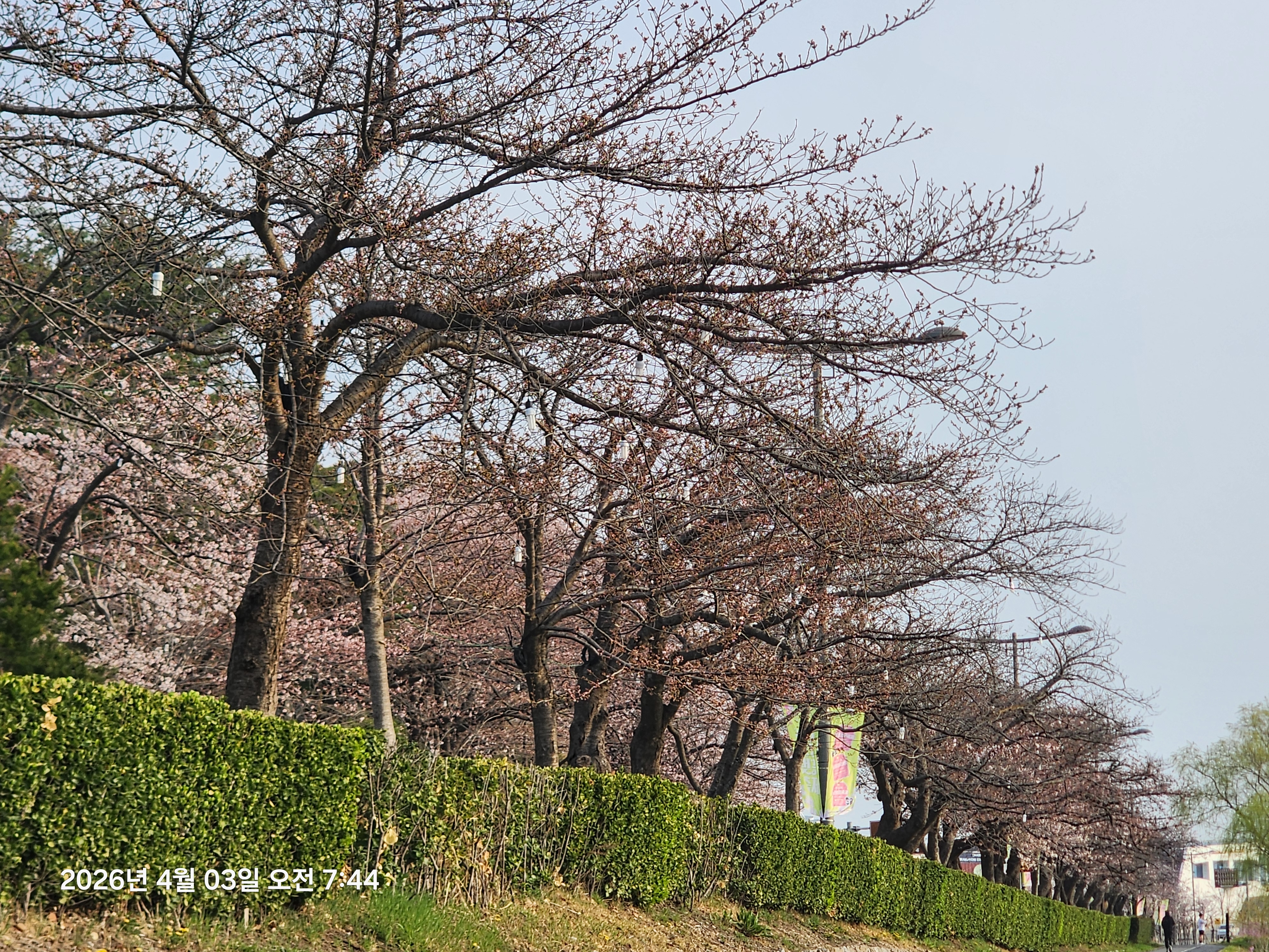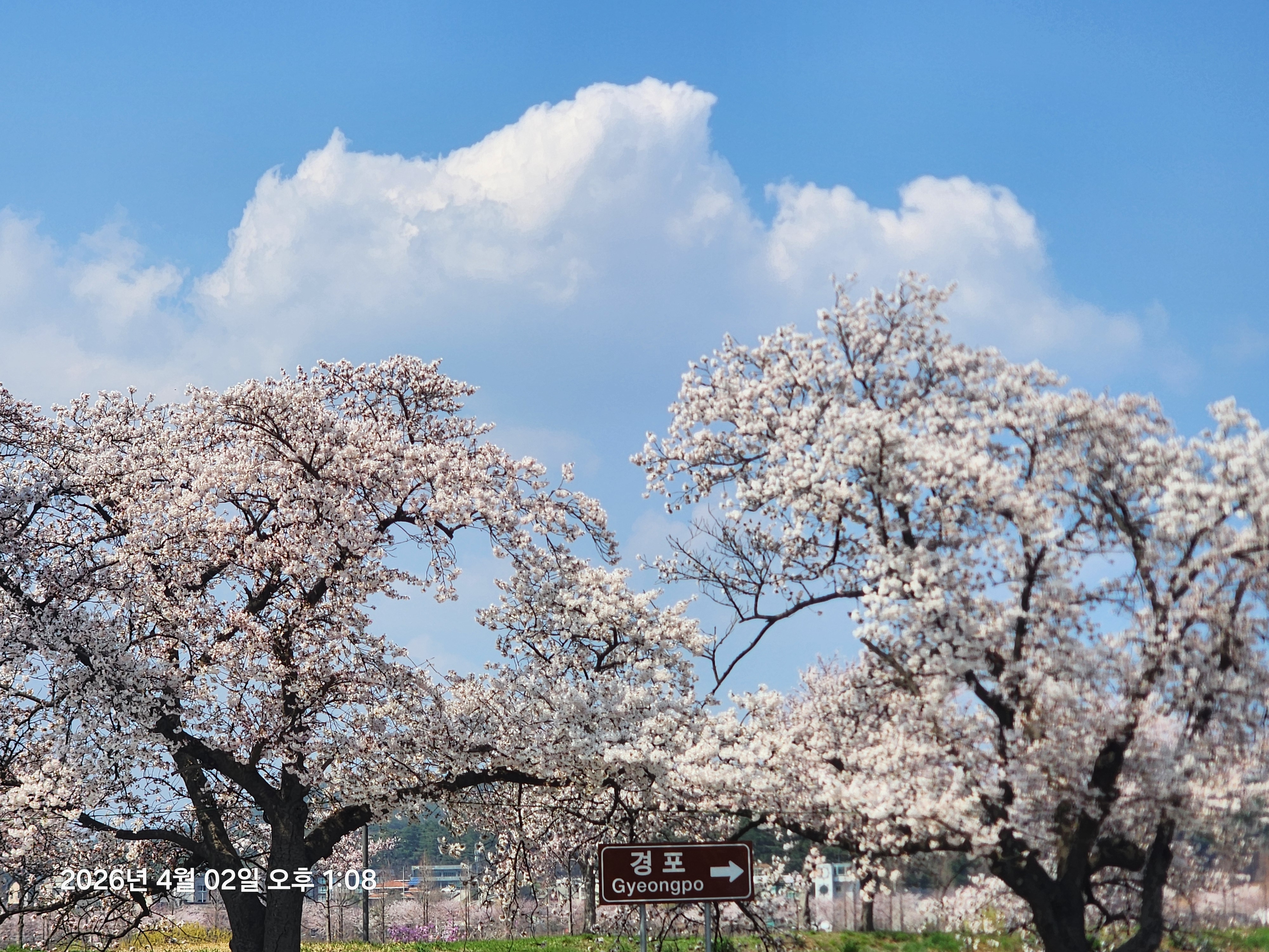 근간에 봄비도 내리고 기온도 따뜻하여 곳곳에 벚꽃이 꽃망울을 터뜨리기 시작했는데 축제가 열릴 예정인 경포일원에도 꽃이 많이 피었지만 만개한 곳도, 아직 덜 핀곳도 있는데, 7번국도에서의 경포진입로(경포사거리)엔 만개율이 대략 60~ 70% 정도이지만, 경포호수 주변엔 30~40 %가 채 안되는것 같다. (나의 주먹구구)..경포호수주변은 26.4.3 아침에 추가로 둘러봤다