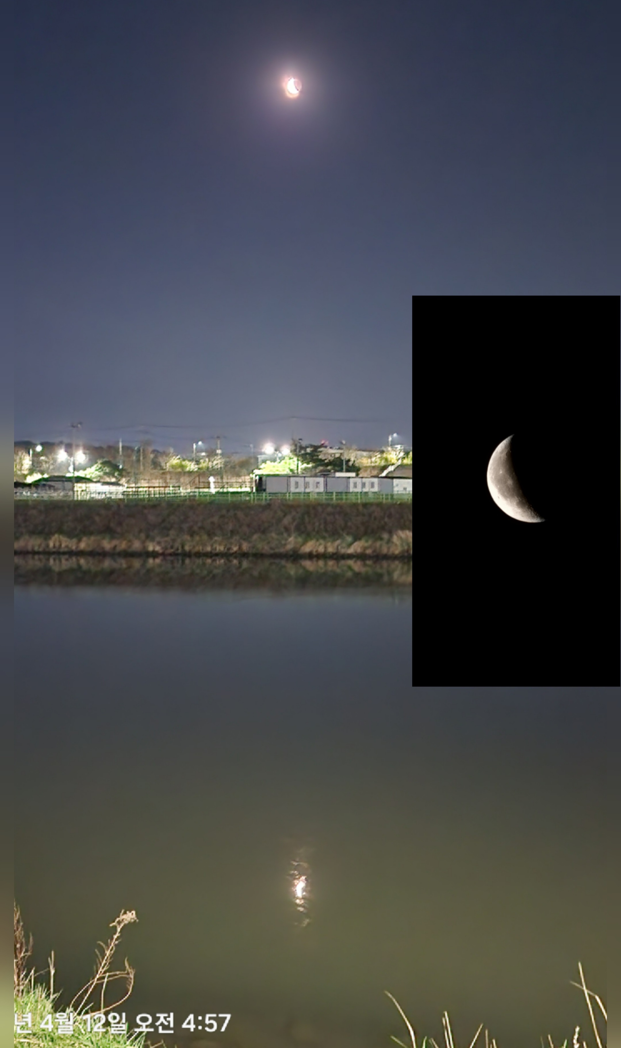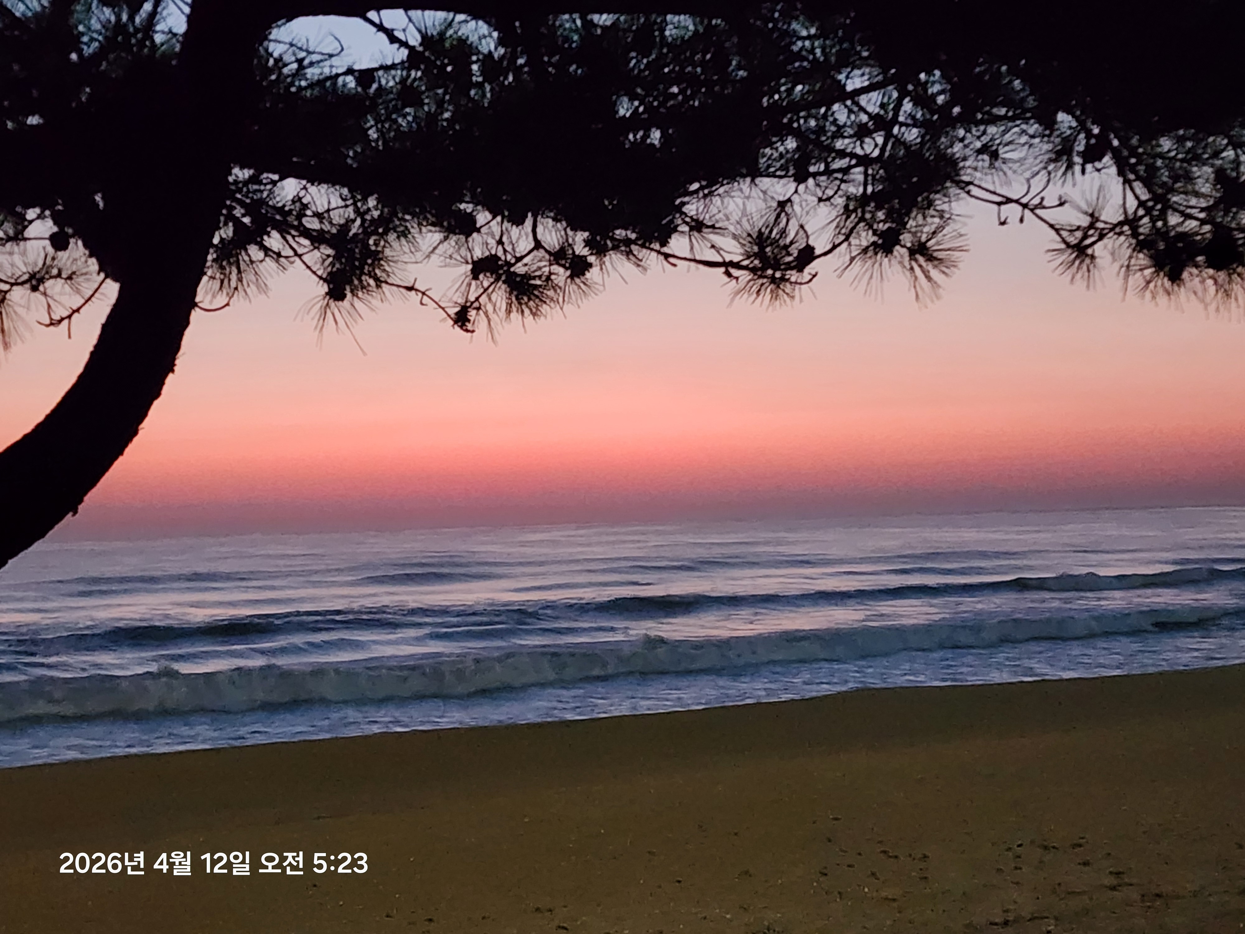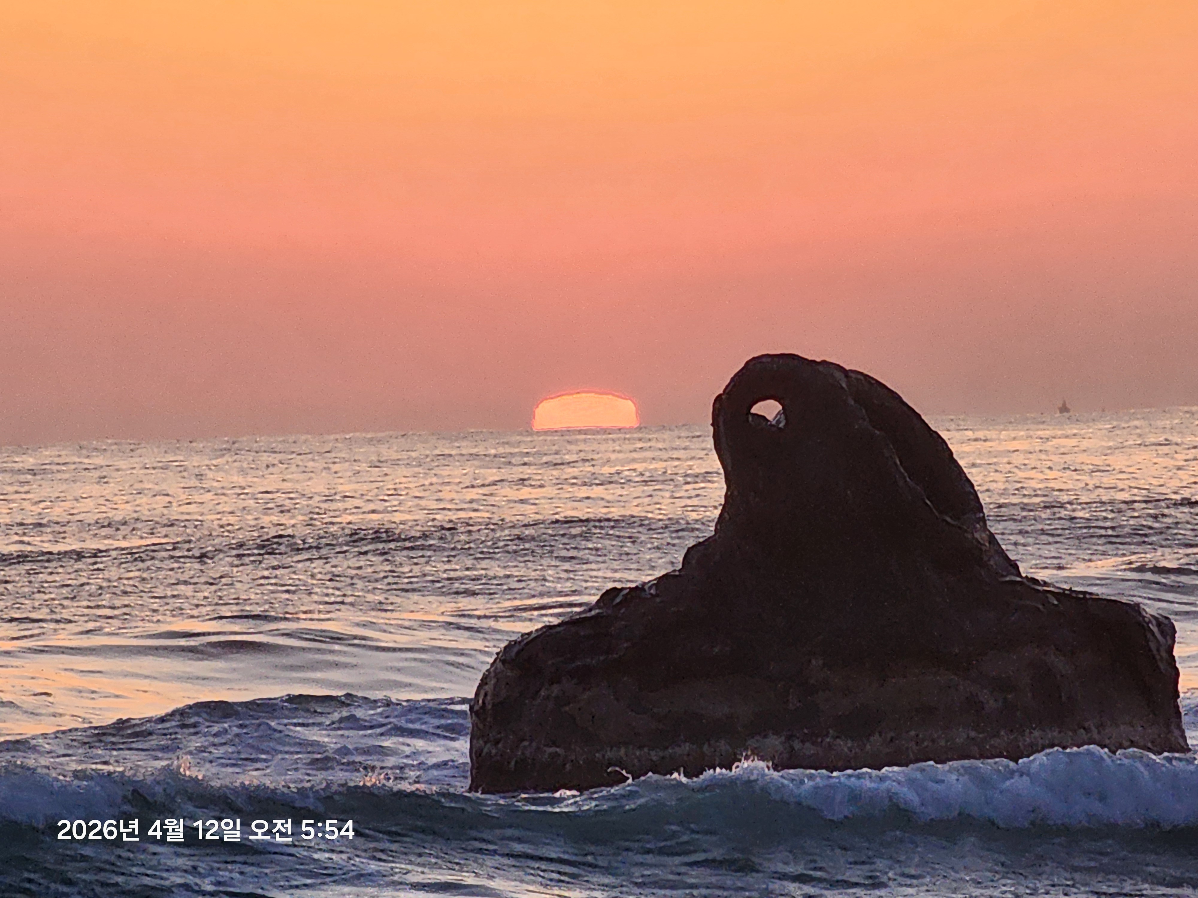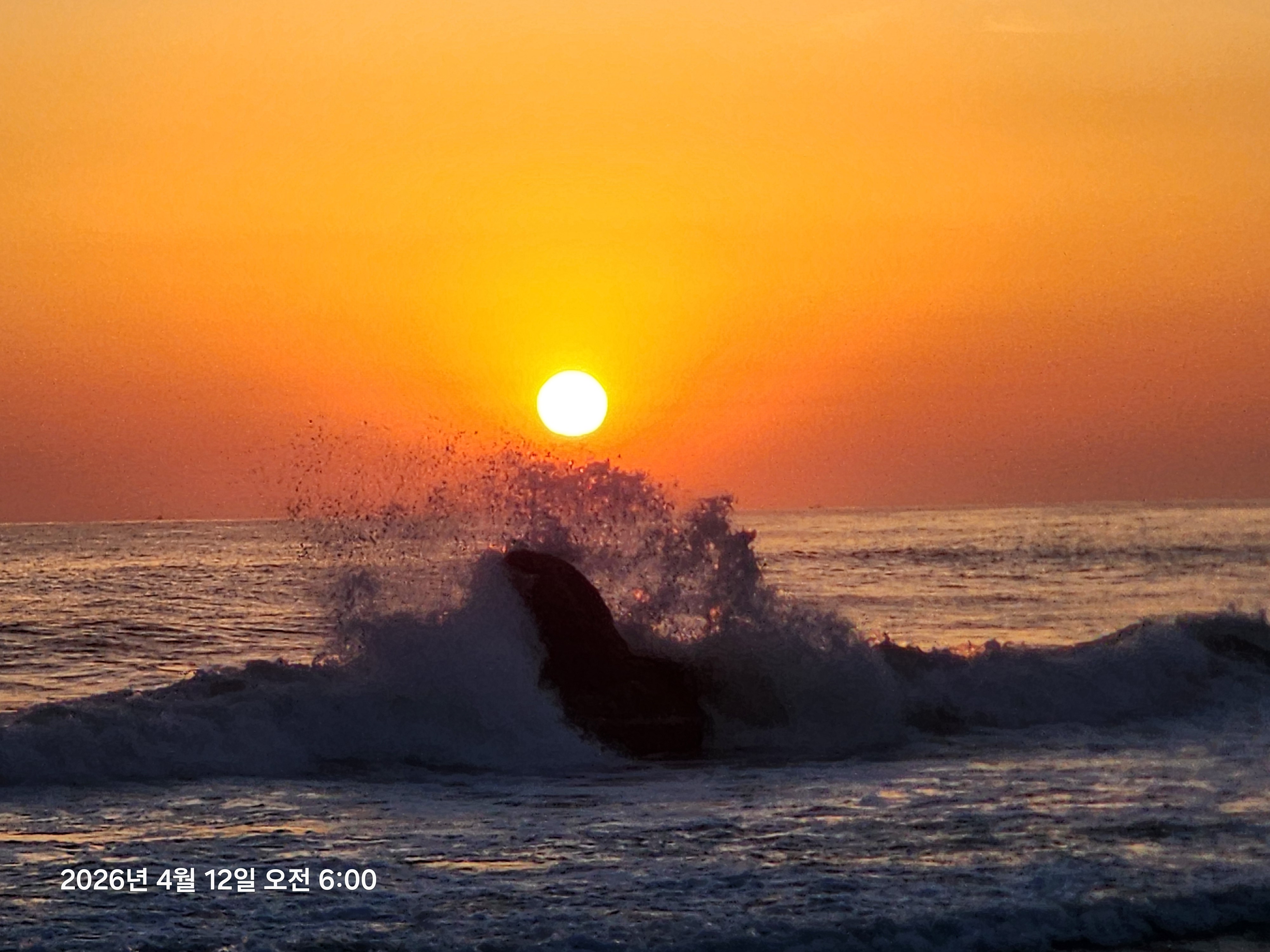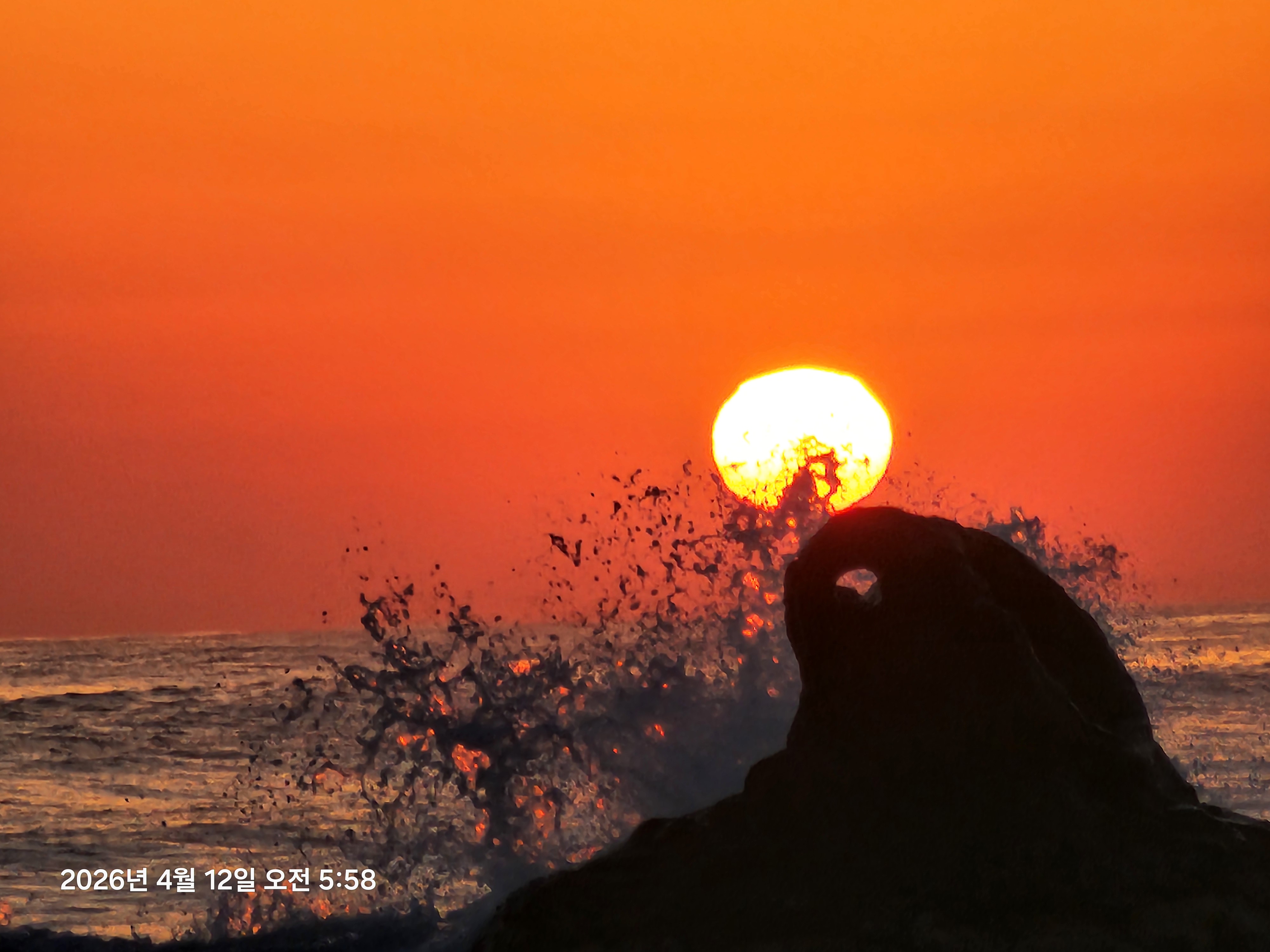 밤새 세상을 비추다 야위고 야윈 얼굴로 일출을 기다리는 달의 응원에 보답이라도 하듯 수평선 일출이다.