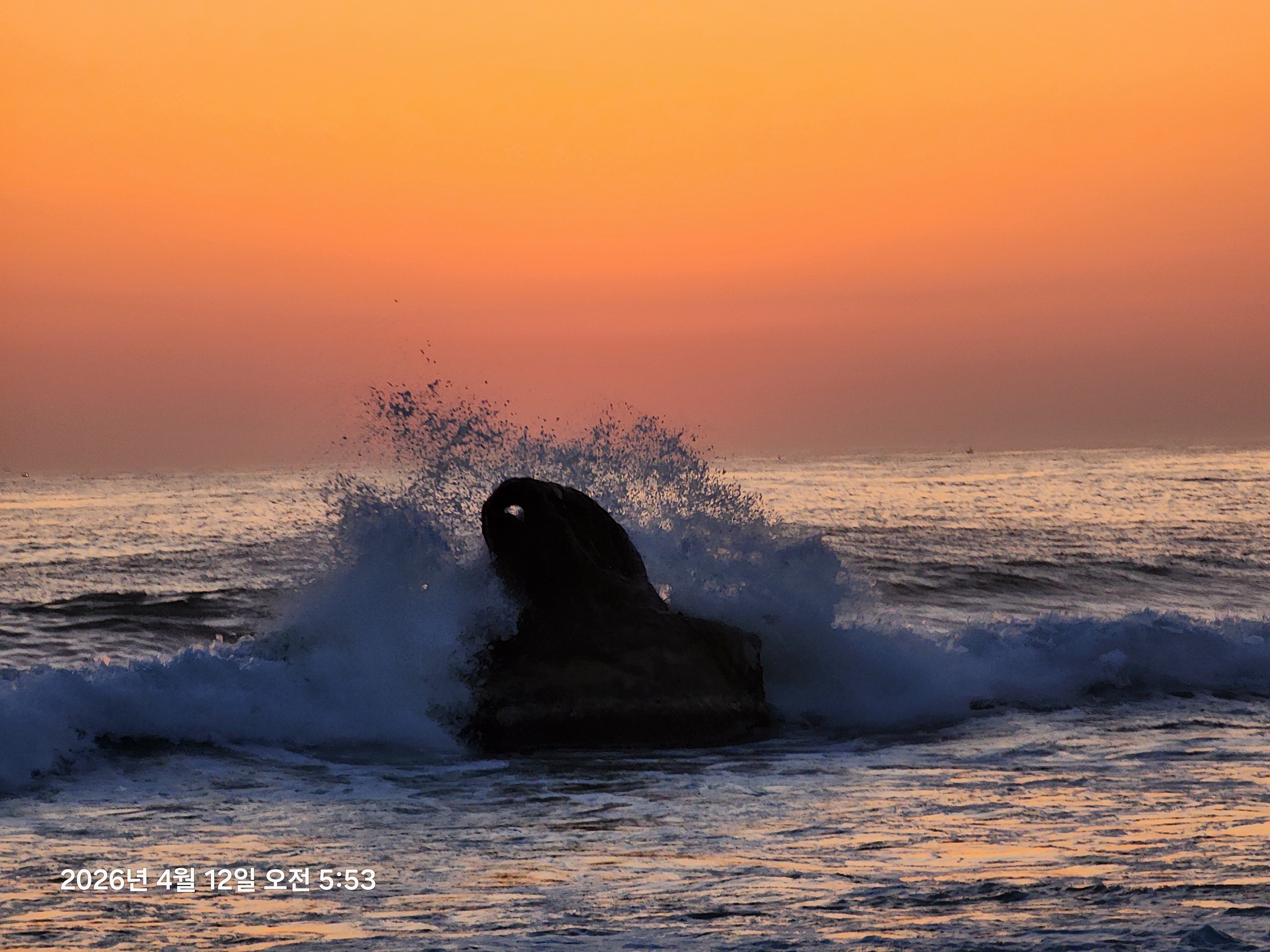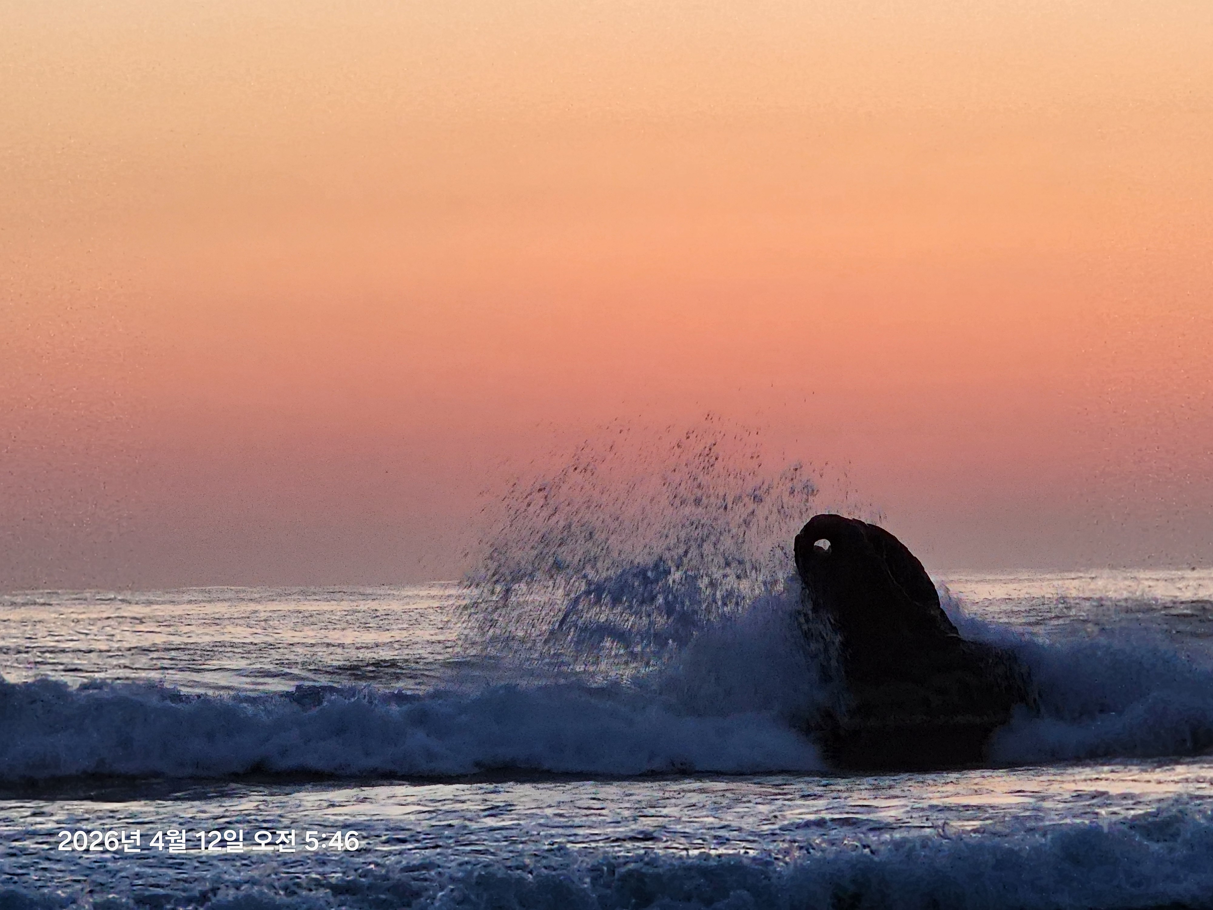 어제보다 파도가 세게일고 새 한마리 보이지 않는다. 물론 모델 갈매기도...